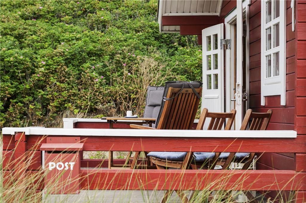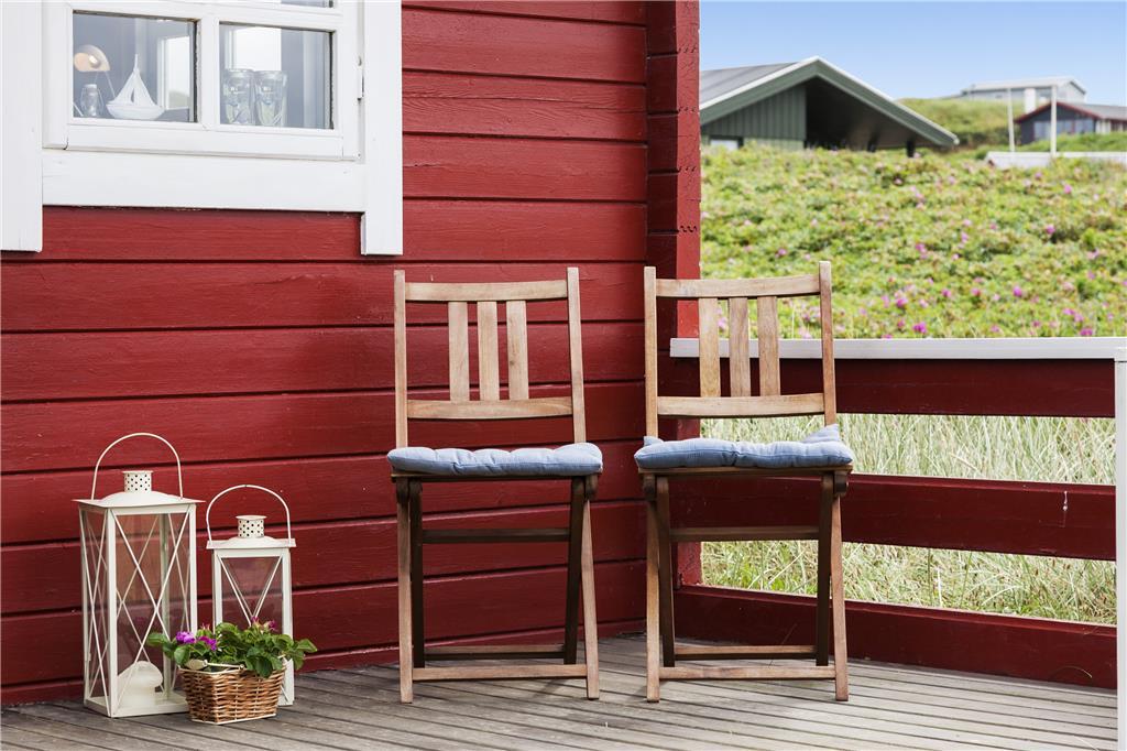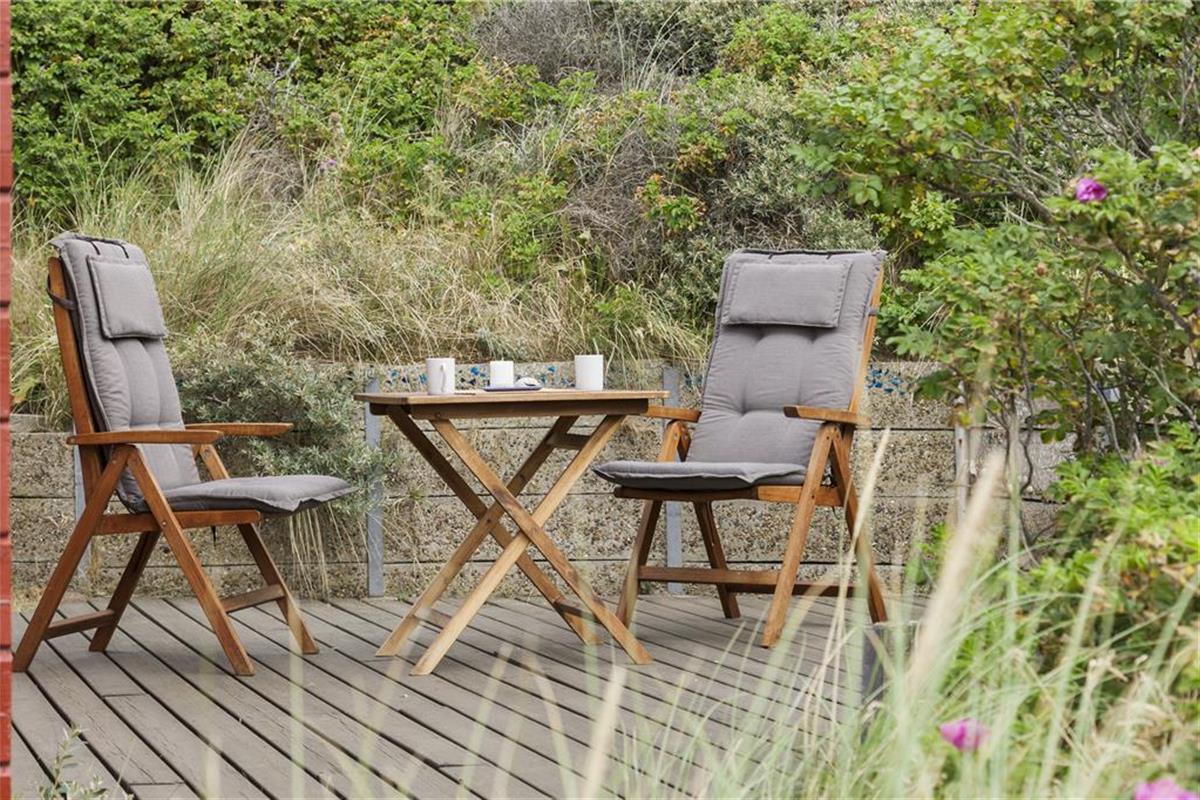 Vor dem Haus wurde eine schöne Terrasse angelegt, auf der Sie das Haus, die Nordsee und die reizvolle Dünenlandschaft genießen können. Außerdem kann vor dem Haus Fußball gespielt werden. Die Lage direkt hinter den Dünen bietet guten Windschutz vor dem manchmal etwas wilden Westwind.