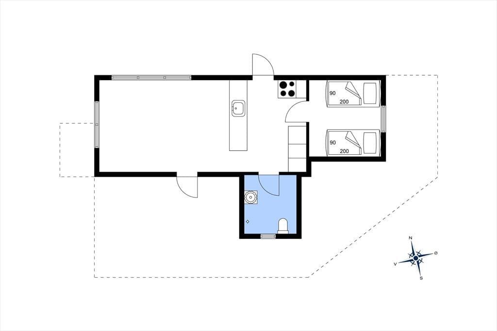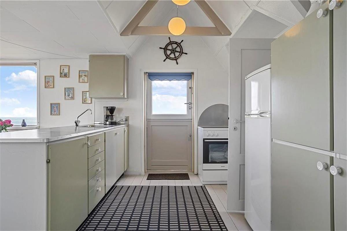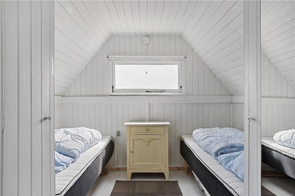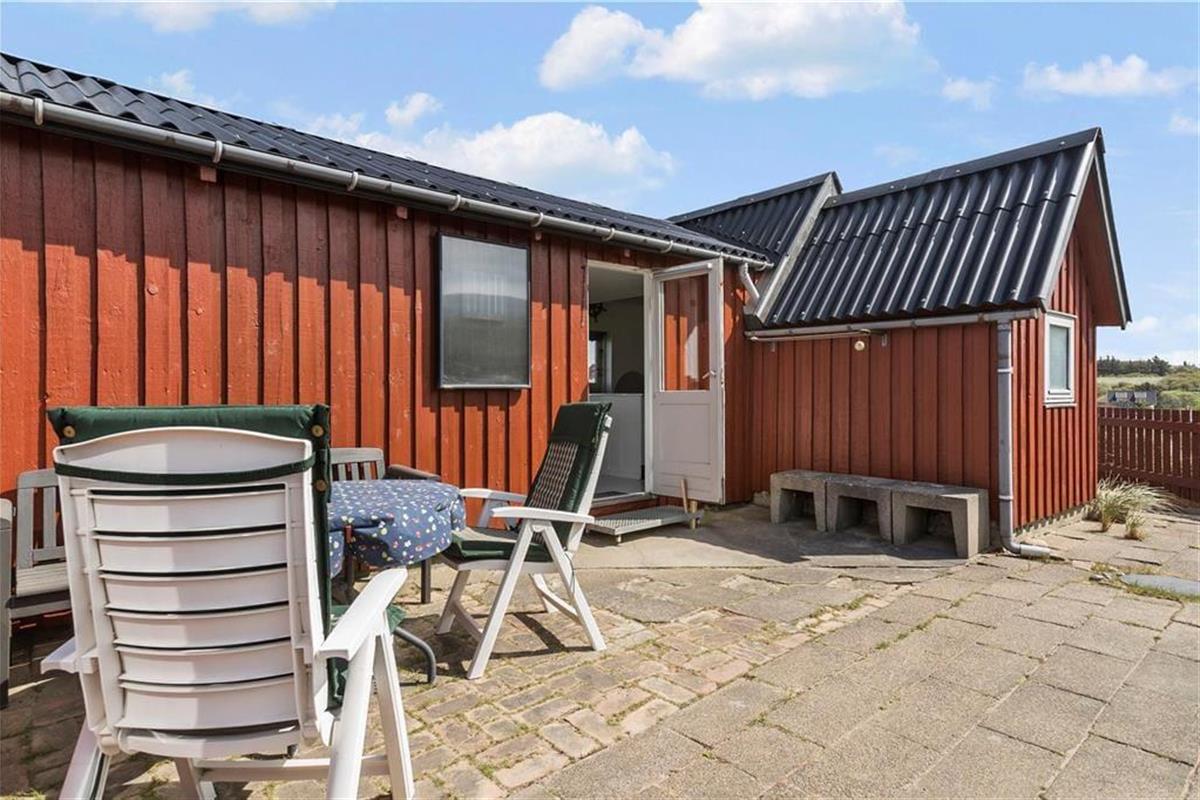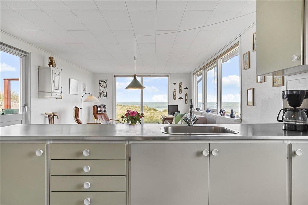 Die Küche liegt in direkter Verbindung zum Wohnraum, der Sie mit guten Sitzmöbeln und einem einmalig schönen Blick über das Meer und die herrliche Dünenlandschaft empfängt. Von der Küche gelangen Sie hinaus auf einem mit Steinen befestigten Bereich. Die Terrasse ist vom Wohnraum aus zugänglich. Die Schlafplätze verteilen sich auf einem Schlafraum mit zwei Einzelbetten und auf das doppelte Schlafsofa im Wohnraum. Das Badezimmer ist mit einer Duschnische ausgestattet.