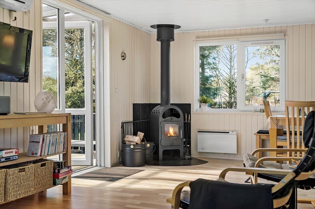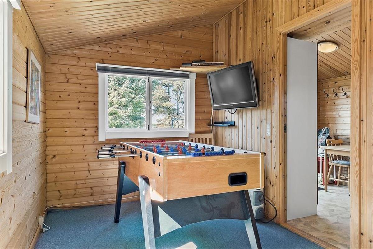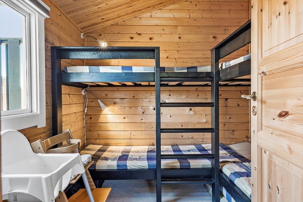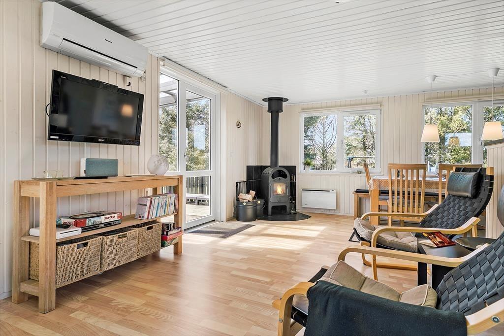 Die 69 m² umfassende Wohnfläche dieses reizvollen Ferienhauses wird durch die 24 m² des guten Nebengebäudes ergänzt. Somit bietet sich insgesamt ausreichend Platz für bis zu sechs übernachtende Personen. Die beiden Gebäude sind über die teilweise überdachte Terrasse verbunden, wodurch es für Sie ein Leichtes ist, zwischen den beiden Gebäuden zu wechseln, wenn Sie beispielswiese eine Runde Tischkicker spielen oder sich schlafen legen möchten. Das Nebengebäude beinhaltet zwei Schlafräume. Da Gleiches auch für das Haupthaus gilt, bieten sich Ihnen des Nachts gute Verteilungsmöglichkeiten. Im Tagesverlauf werden Sie sich alle gern im Wohnbereich versammeln, der aus einer offenen und harmonischen Kombination von Wohn-, Ess- und Küchenbereich besteht. Hier können Sie wunderbar gemütliche Stunden verleben, gemeinsam die Mahlzeiten genießen, unterhaltsame Gesellschaftsspiele spielen, in aller Ruhe lesen und noch vieles mehr. Für behagliche Temperaturen sorgen dabei der Kaminofen und die Wärmepumpe. Da das Haus mit Sonnenenergie versorgt wird, ist es übrigens klima- und energiefreundlich. Die Wohnfläche wird durch ein Badezimmer komplementiert, das sich ebenso wie der Rest des Hauses richtig schön und gepflegt präsentiert.