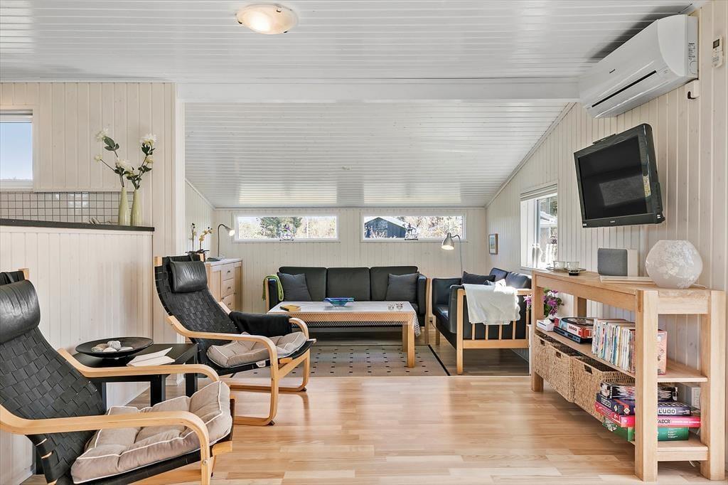 Freuen Sie sich bereits jetzt auf richtig schöne Urlaubstage in diesem Ferienhaus, das Sie in einem kleinen, geschlossenen Weg nah am Ortskern Lønstrups erwartet. Das Ferienhaus und das zugehörige Nebengebäude weisen all die Qualitäten auf, die ein typisch dänisches Ferienhaus ausmachen. Hinzu gesellen sich ansprechende Terrassen und gute Spielmöglichkeiten, sodass sich Groß und Klein auch unter freiem Himmel so richtig wohlfühlen werden.