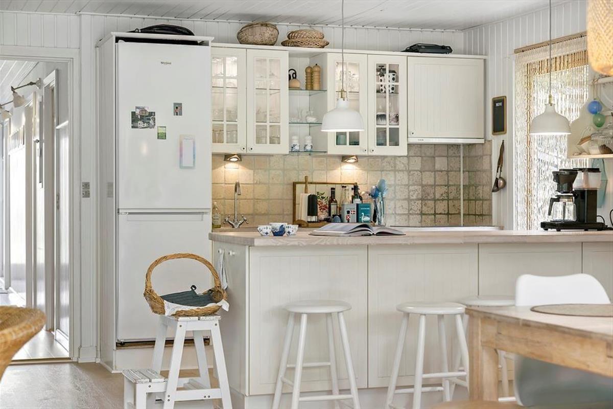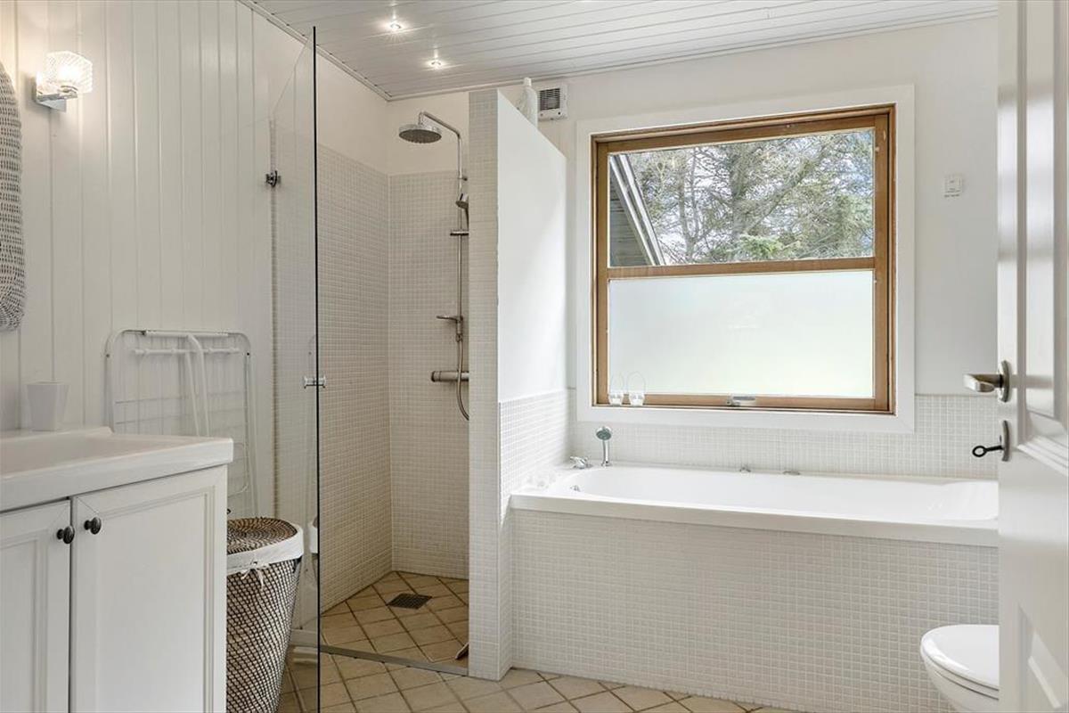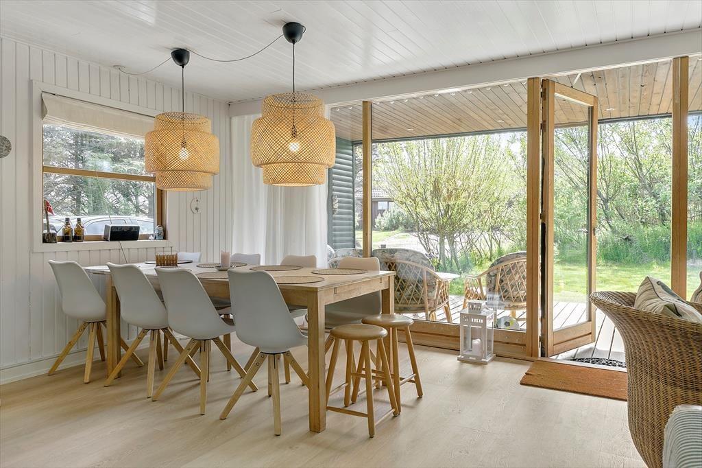 Die helle und moderne Küche ist offen mit dem Wohnzimmer verbunden, von dem die überdachte Terrasse betreten wird. Vier Schlafzimmer mit jeweils komfortablen Betten vorhanden. Das Ferienhaus verfügt über zwei geräumige Badezimmer, eins sogar mit Whirlpool. Genügend Platz für eine große Familie oder zwei Familien. Die Einrichtung ist hell und modern in einem herrlichen und skandinavischen Stil.