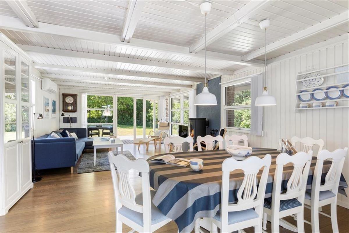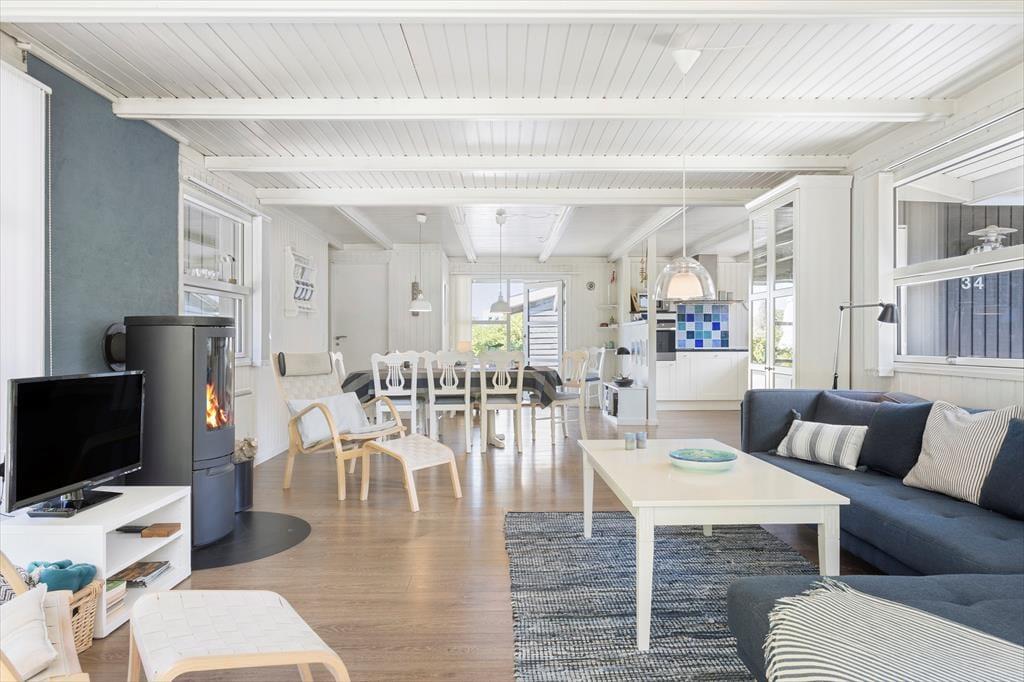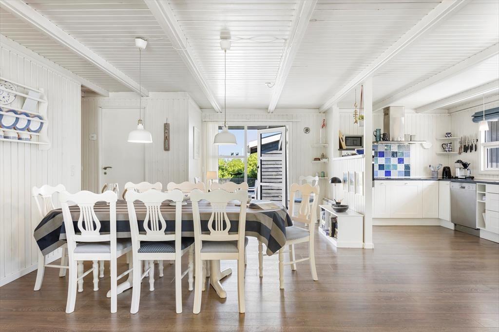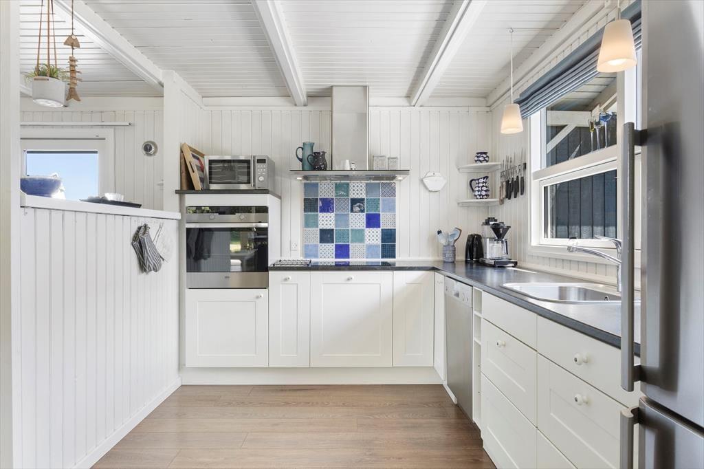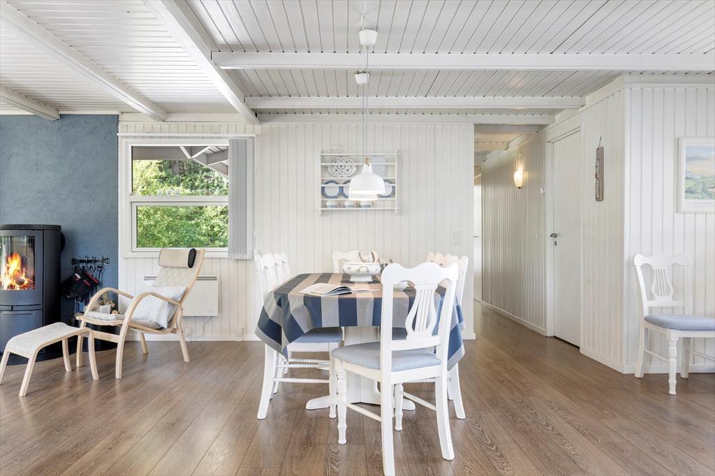 Dieses Ferienhaus bietet den idealen Rahmen für einen gelungenen Familienurlaub in Nordjütland. Hier wird Ihnen eine gute Kombination aus traditionellem Ferienhausstil mit weißer Wand- und Deckenvertäfelung, moderner Einrichtung und Ausstattung sowie einfachen und älteren Möbeln geboten. Drei Schlafzimmer und ein Schlafzimmer in dem angrenzenden Nebenhaus bieten Platz für eine große Familie oder zwei kleine Familien, die das Gebiet gemeinsam erkunden möchten. Die Küche ist offen mit dem Essbereich und Wohnzimmer mit Kamin und TV kombiniert, damit alle zusammen sein können, auch wenn jeder etwas anderes macht. Das Haus ist außerdem allergiker- und kinderfreundlich mit Etagenbett, Kinderbett und Kinderstuhl sowie Waschmaschine und Trockner ausgestattet. Bitte beachten Sie, dass es nur drei bis vier deutsche Sender gibt, aber mit WLAN können weitere Kanäle je nach Wunsch und Laune gestreamt werden. Ein Ferienhaus, in dem alle Bedürfnisse nach Gemütlichkeit und Funktionalität erfüllt werden.