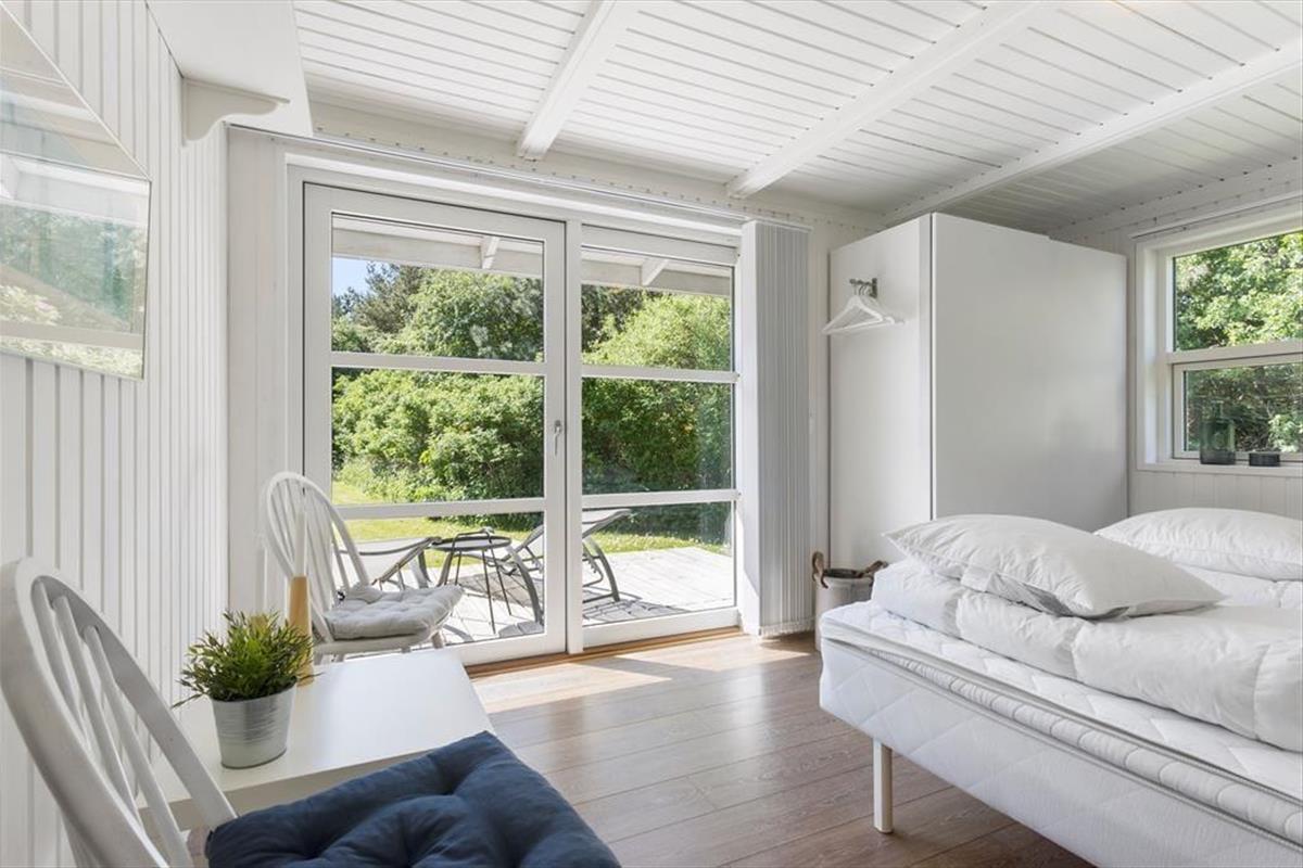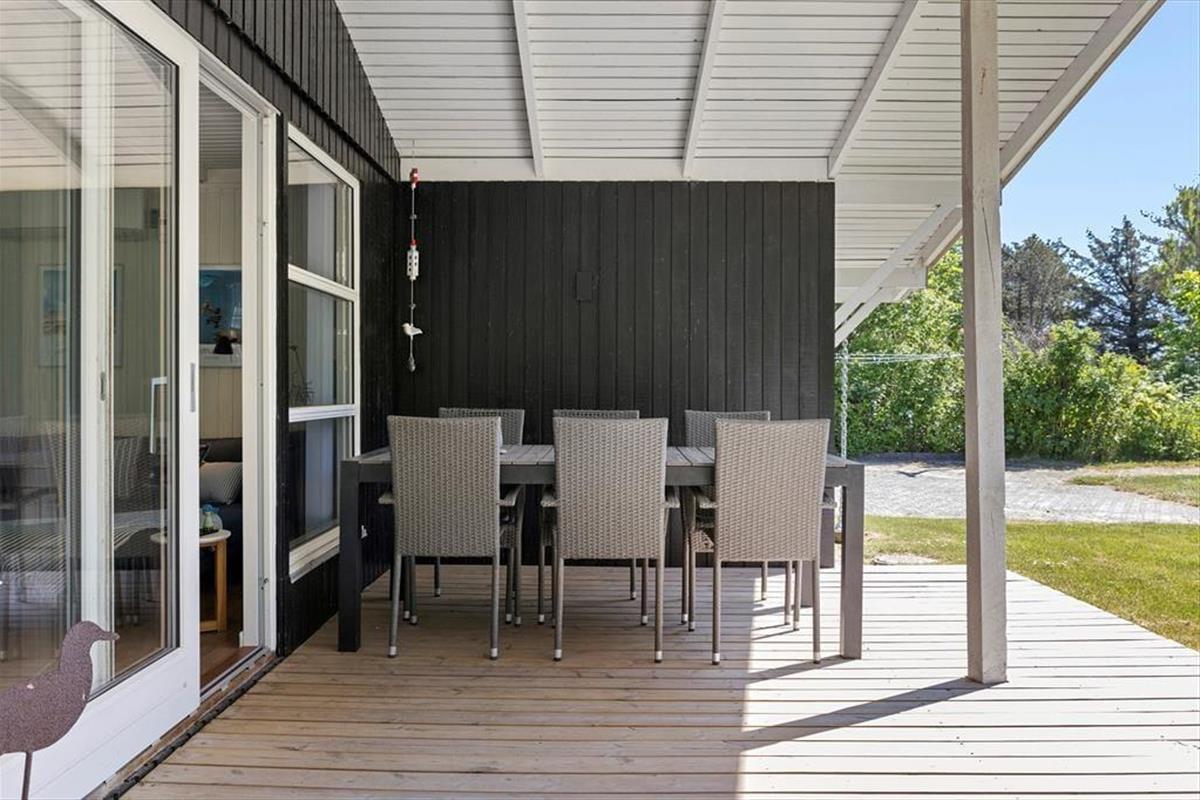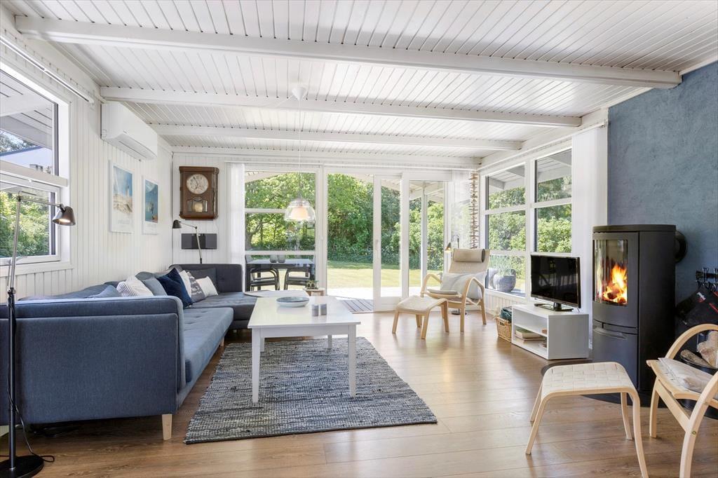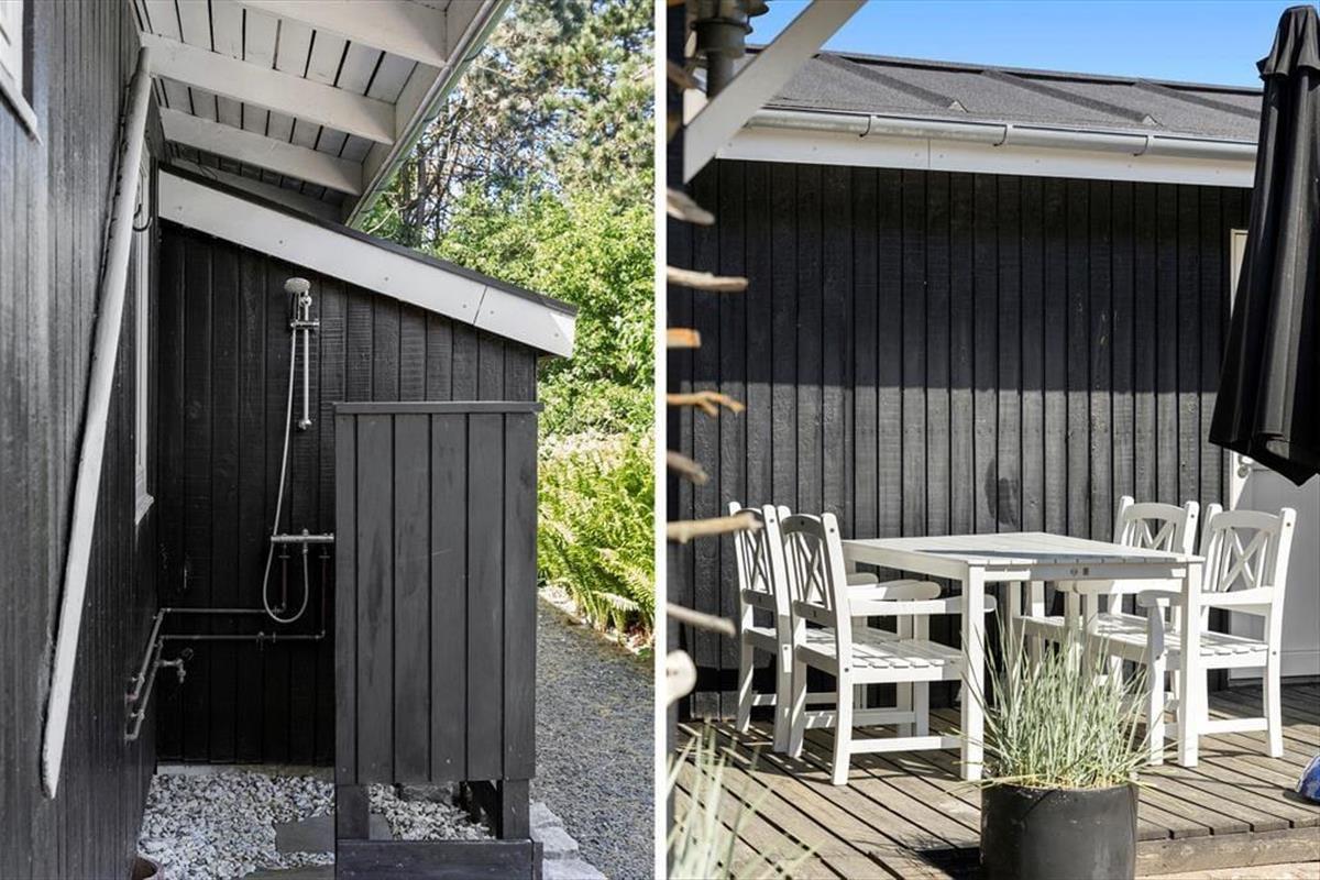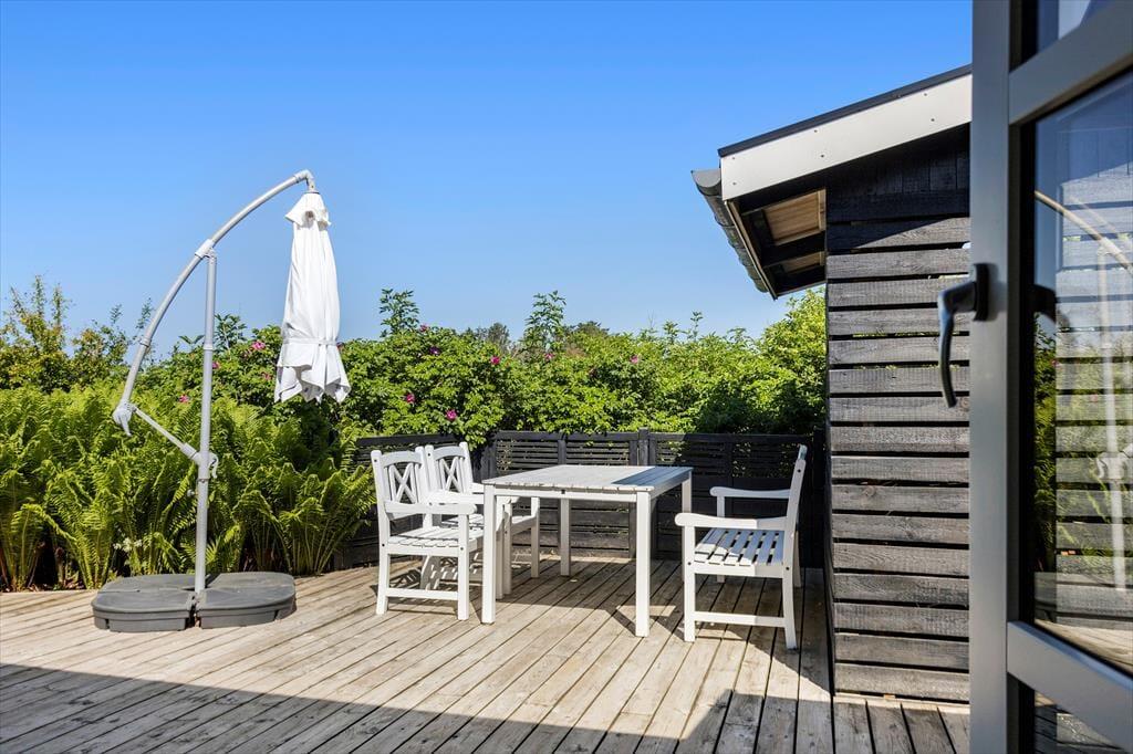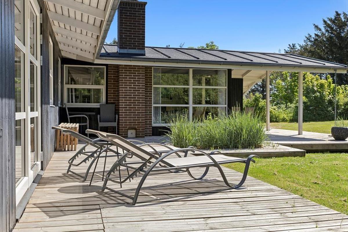 Auf dem großen Gartengrundstück können Sie sich ungestört aufhalten, Bäume und Büsche bilden einen natürlichen Sichtschutz. Auf den Terrassen können Sie den dänischen Sommer in vollen Zügen genießen und finden immer ein sonniges Plätzchen oder eine windgeschützte Ecke je nach Bedarf. Vom Wohnzimmer betreten Sie eine teils überdachte Terrasse, auf der Sie in den Abendstunden sitzen und die Wiese überblicken können, auf der Ihre Kinder unbesorgt spielen und toben können.