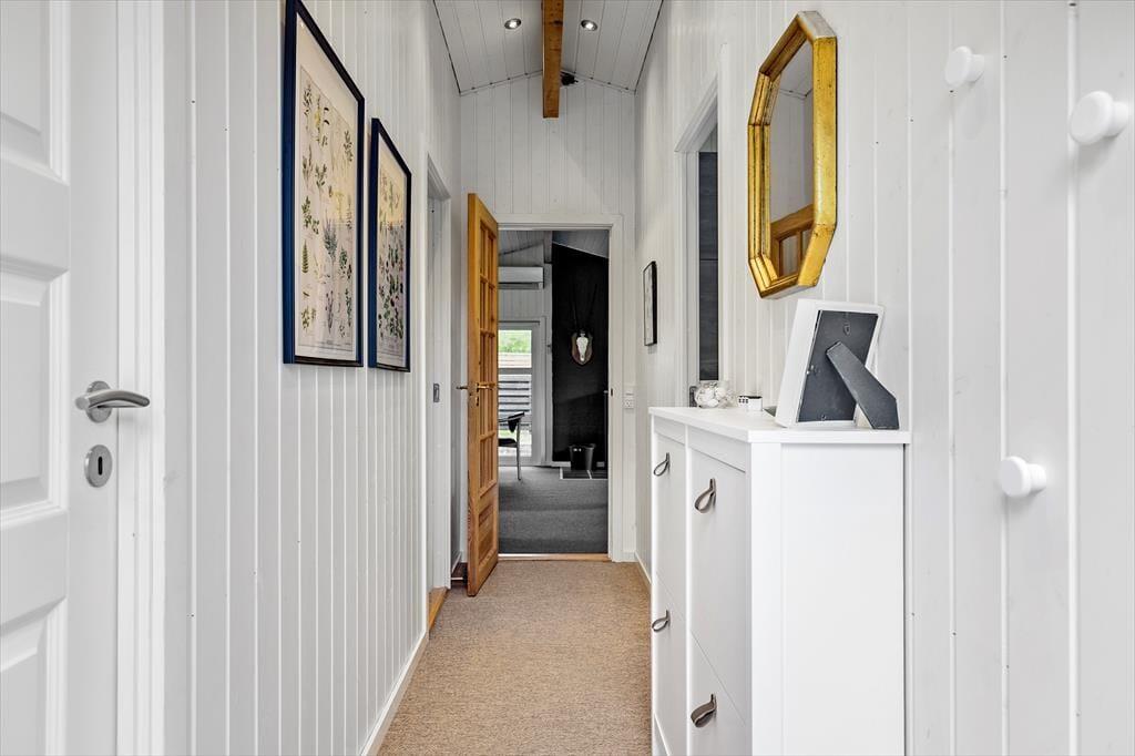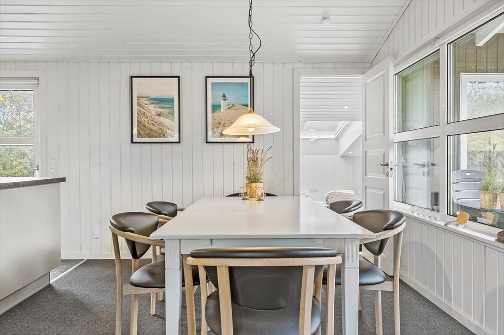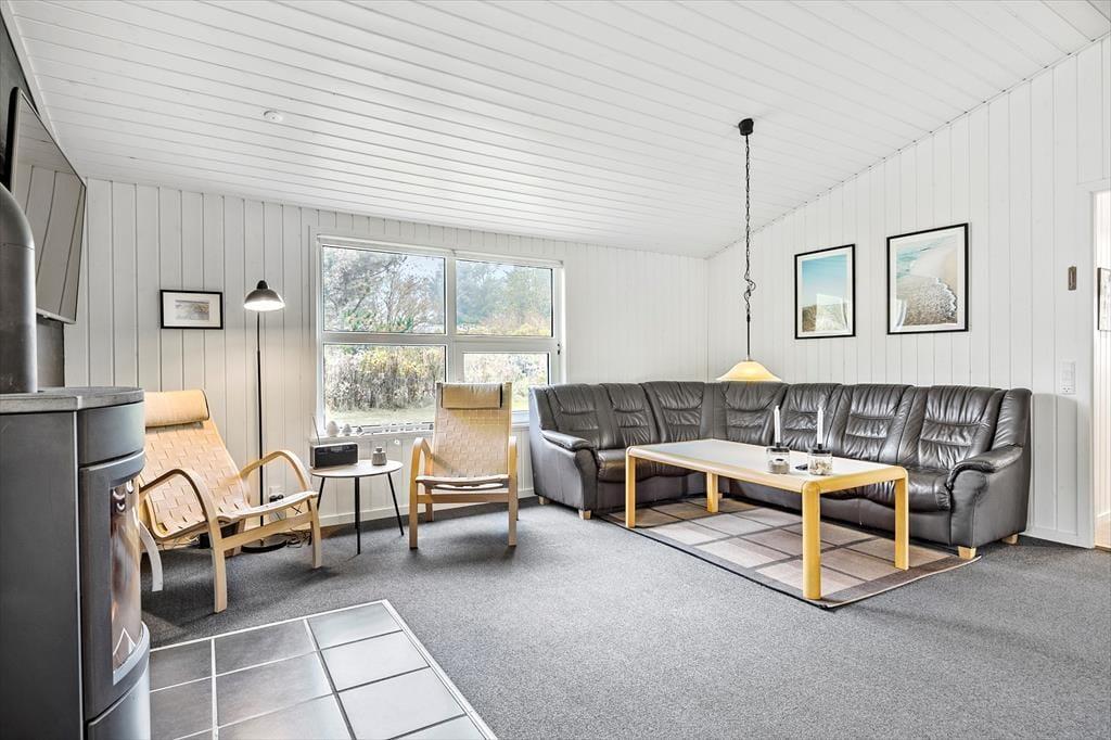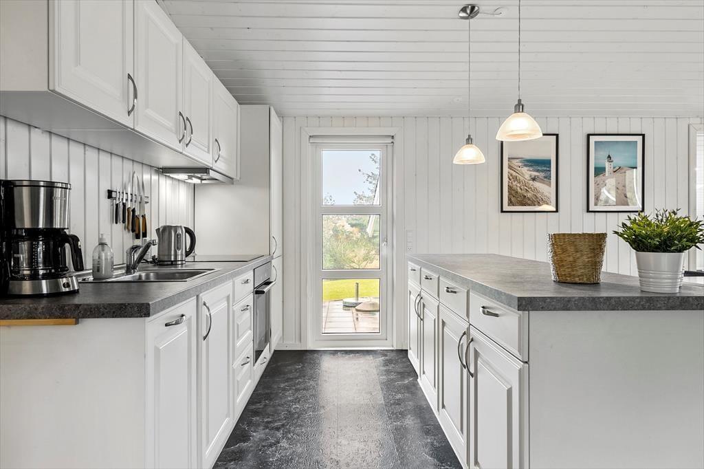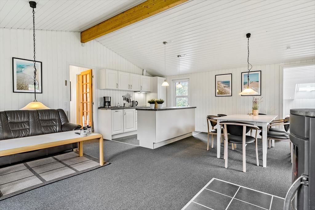 Dieses Ferienhaus wurde umfangreich renoviert und ist heute in einem Tip-Top-Zustand. Die Küche ist zugleich modern und charmant mit Küchenfront im romantischen Landhausstil und dunkler Arbeitsfläche, während das Wohnzimmer geschmackvoll und stilvoll mit einem großen und bequemen Sofa mit Platz für die ganze Familie, einem großen TV-Bildschirm und einem tollen Kamin, der schnell für eine gemütliche und warme Atmosphäre verbreitet, eingerichtet. Außerdem bietet das Ferienhaus über zwei große Schlafzimmer mit insgesamt fünf Schlafplätzen und ein schönes Badezimmer mit Duschkabine und Waschmaschine. Falls Kinder mitreisen, können diese früh ins Bett gebracht werden und die Tür zwischen Küchen- und Schlafzimmerbereich geschlossen werden, damit die Eltern die Abendstunden genießen können. Das Ferienhaus ist auch bestens geeignet für einen Urlaub mit einem oder zwei Paaren, die zusammen diesen herrlichen Teil Nordjütlands erkunden möchten .