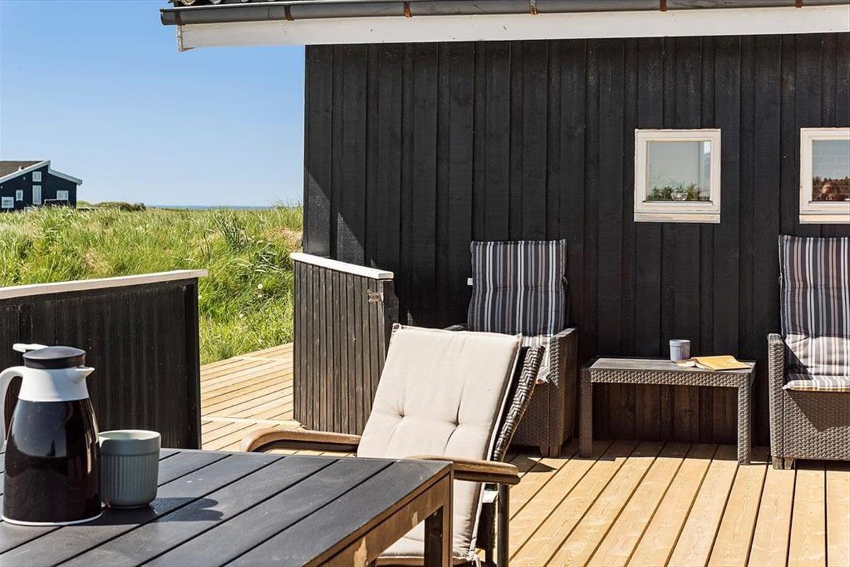 Draußen erwartet Sie eine schöne Terrasse, auf der Sie mit dem Rauschen der Wellen im Hintergrund und frischer Meeresluft wunderbar entspannen können. Nur 100 Meter vom Strand entfernt, ist der Weg zu einem spontanen Bad oder einem langen Spaziergang am Wasser nie weit. Spüren Sie den Sand zwischen den Zehen und erleben Sie den Sonnenuntergang über dem Horizont – vielleicht mit einem Glas Wein an der besten Aussichtsstelle der Terrasse. Mit bequemen Gartenmöbeln und einem Grill haben Sie alle Möglichkeiten, das Leben im Freien in vollen Zügen zu genießen – ob beim Sonnenbaden, bei Mahlzeiten unter freiem Himmel oder einfach bei purer Entspannung im Liegestuhl.