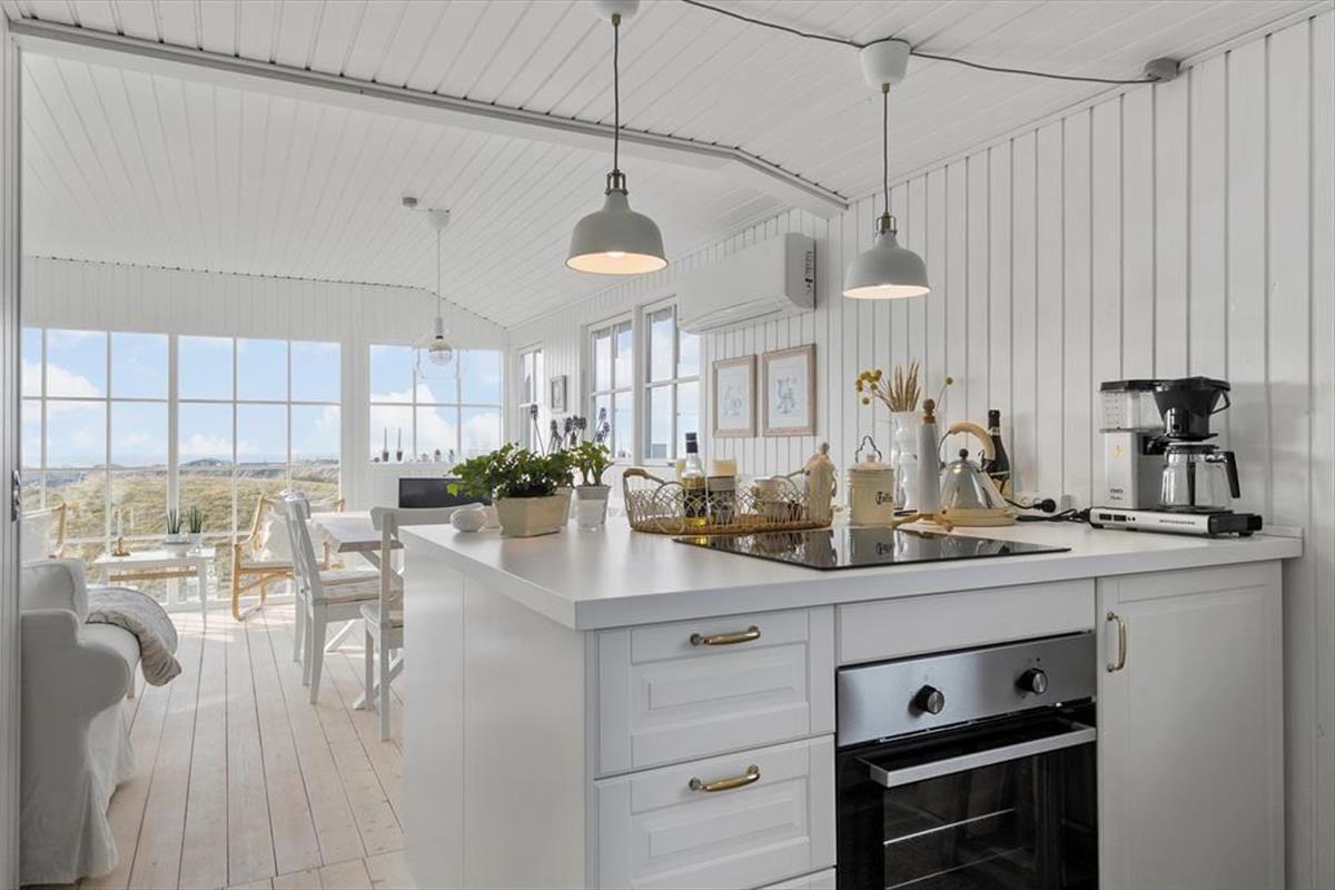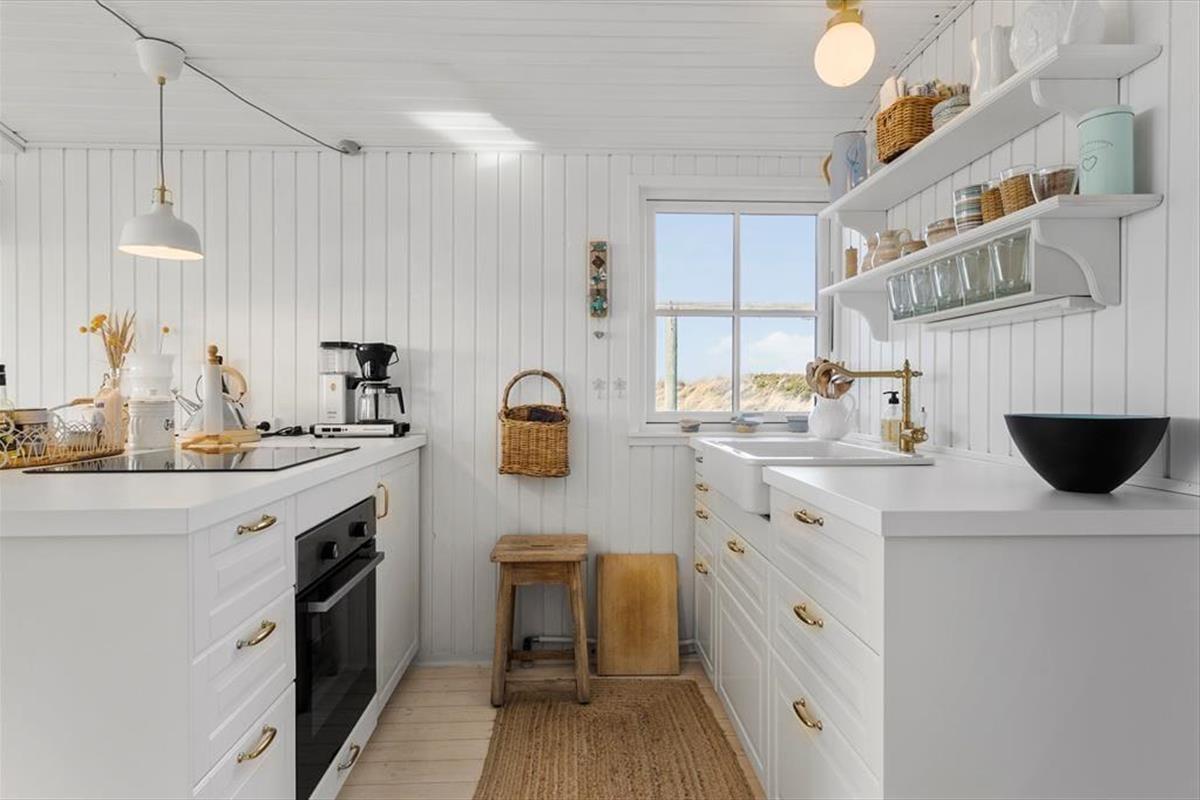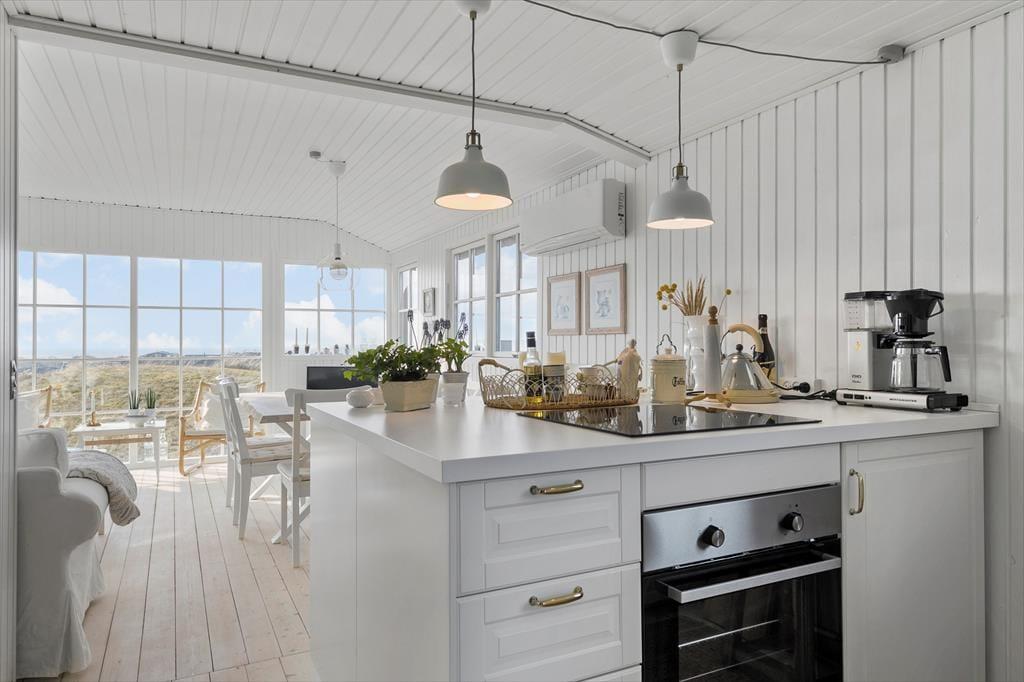Das Ferienhaus ist hell und geschmackvoll mit modernen Möbeln im typisch dänischen und skandinavischen Stil eingerichtet. Die Küche ist mit dem Wohnbereich offen kombiniert. Das Ferienhaus hat zwei Schlafzimmer, ein Schlafzimmer mit Doppelbett und das zweite mit einem guten Schlafsofa.