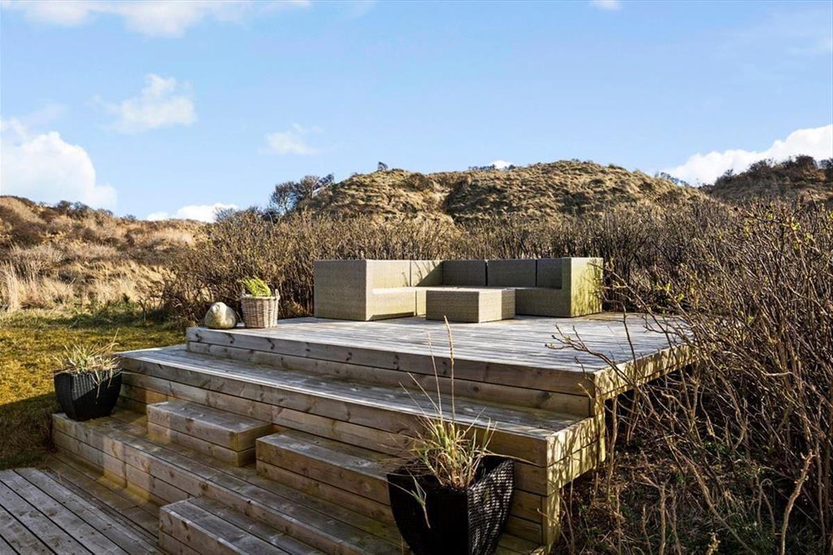 Auf einem leicht hügeligen Naturgrundstück im Windschutz der Binnendünen liegt dieses Ferienhaus im Osten ganz ungestört, und mit einen tollen Meerblick Richtung Süden, Norden und Westen. Es verlaufen um das ganze Haus Terrassen, so dass Sie immer windgeschützt sitzen können.