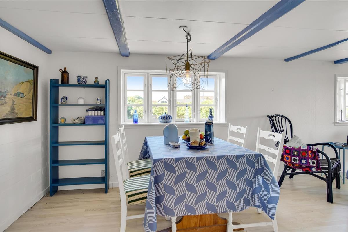 Na ongeveer 600 m bereikt u de zee en het zandstrand, waar u kunt zwemmen of gewoon naar het water kunt kijken. Gezellige restaurants, galeries en winkelmogelijkheden liggen op loopafstand. Mis een bezoek aan de Rubjerg Knude Fyr niet, die u na een korte rit kunt bereiken.