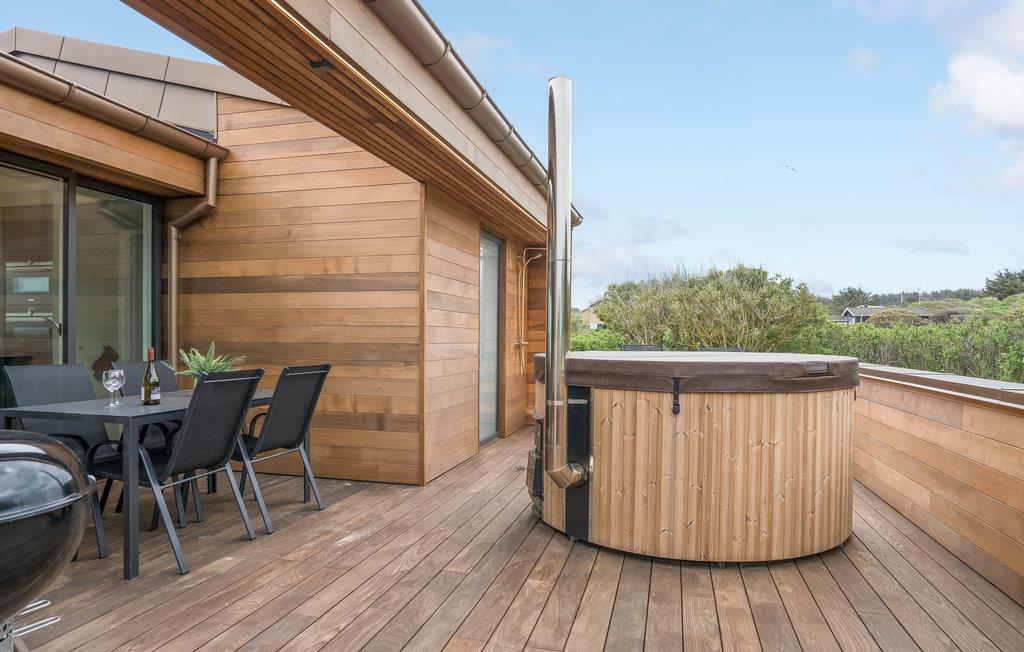 Ontdek dit moderne vakantiehuis in Lønstrup met sauna, hot tub en nabij het strand.