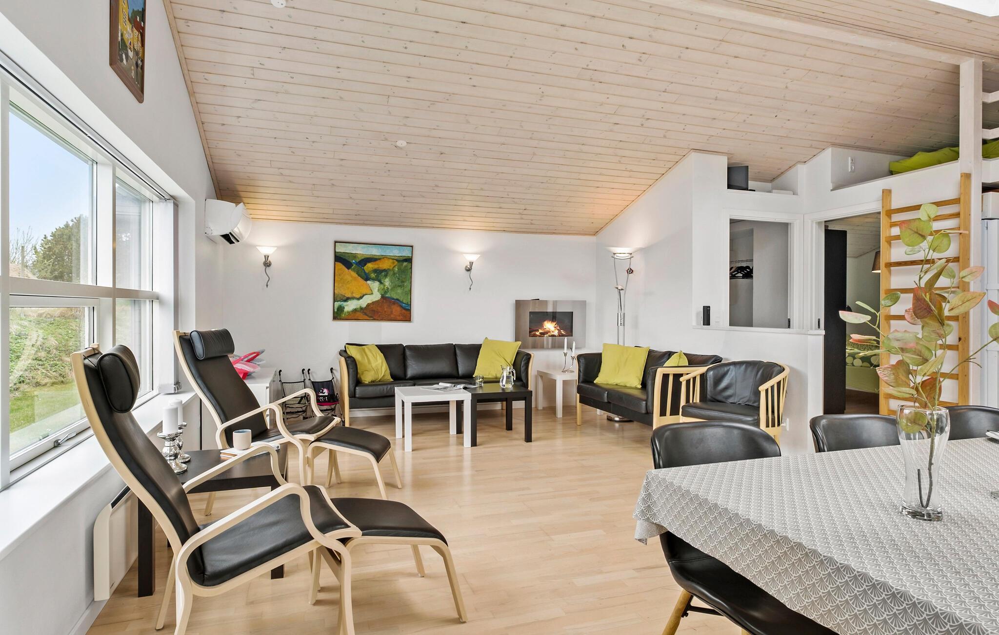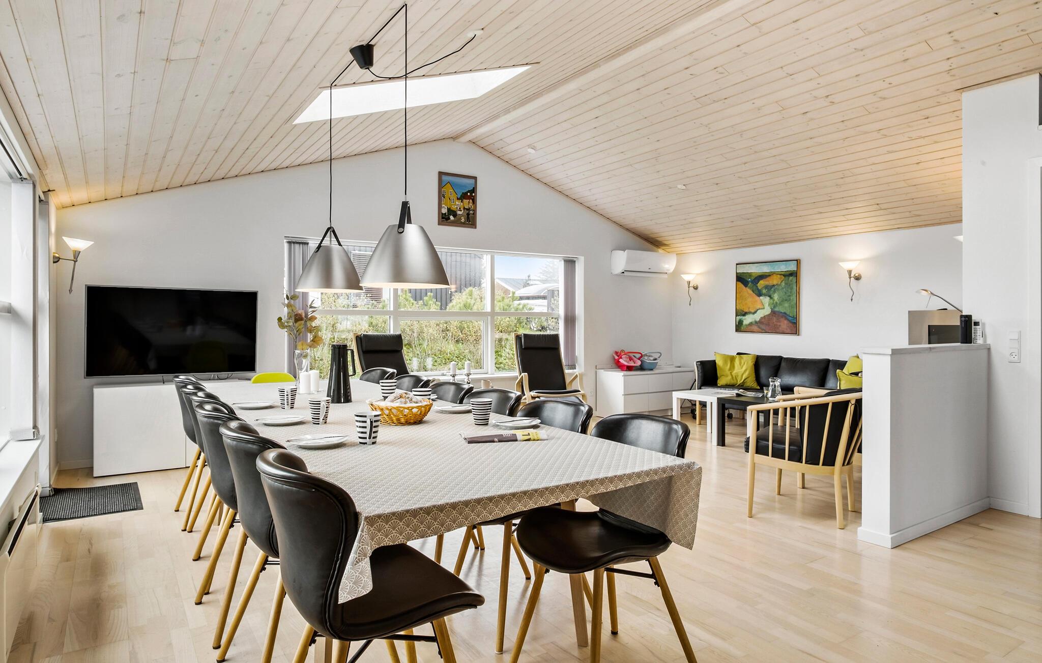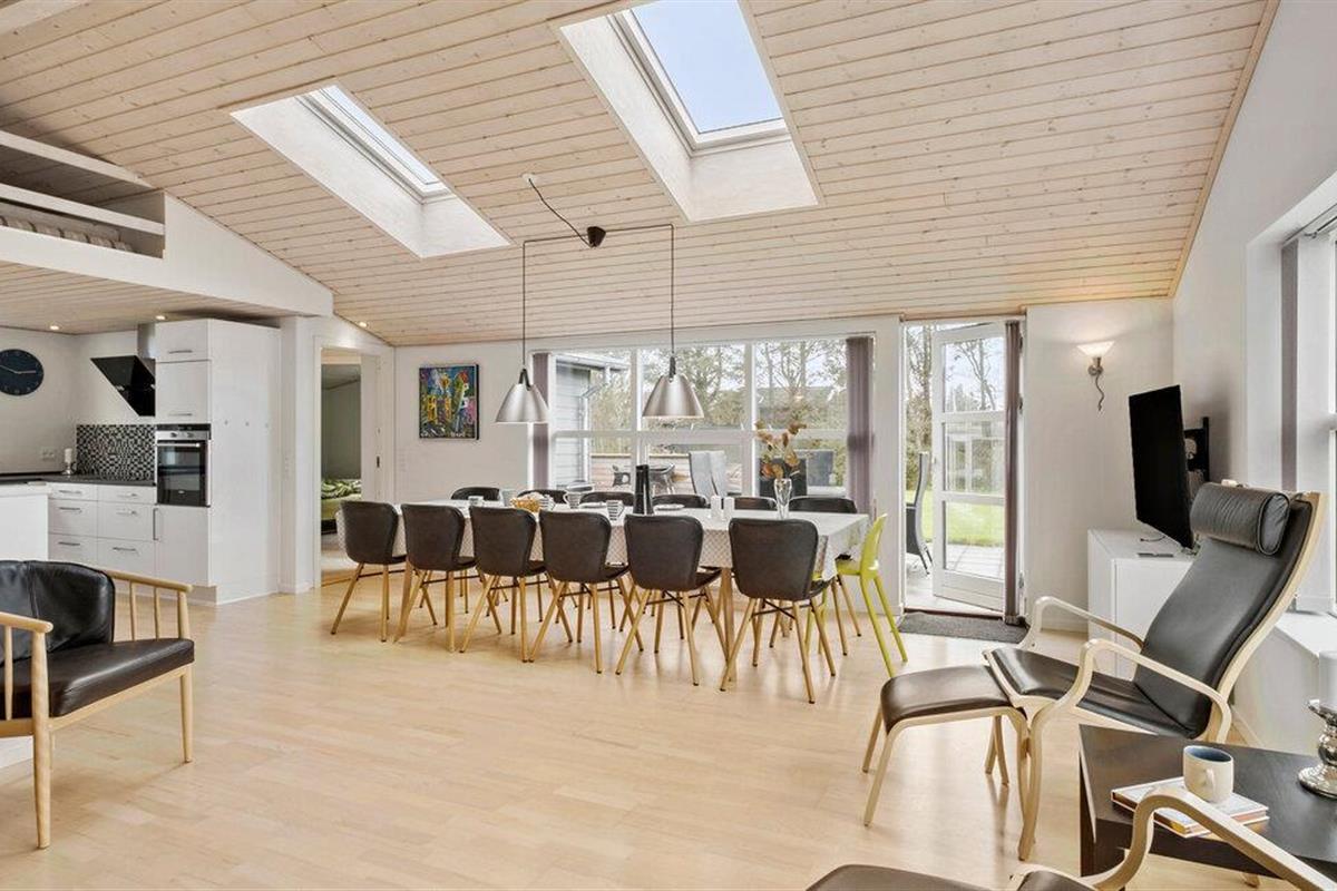 Je ruime vakantiehuis is ideaal voor vakanties met meerdere generaties of vriendenfamilies. Het ligt in Lønstrup aan de Deense Noordzeekust en biedt zowel binnen als buiten veel ruimte om samen tijd door te brengen en om je individueel terug te trekken. Maak het jezelf gemakkelijk in de lichte woonkamer met grote ramen en open plafondconstructie. Gebruik de zithoek voor ontspannende uren bij de houtkachel of verzamel je rond de lange eettafel. Kook samen in de keuken en gebruik het grote werkoppervlak om culinaire meesterwerken te bereiden.
