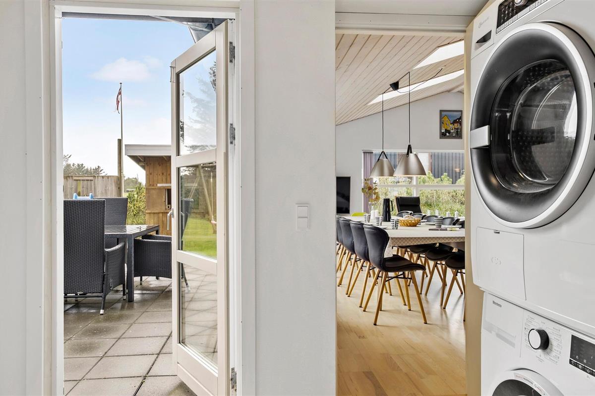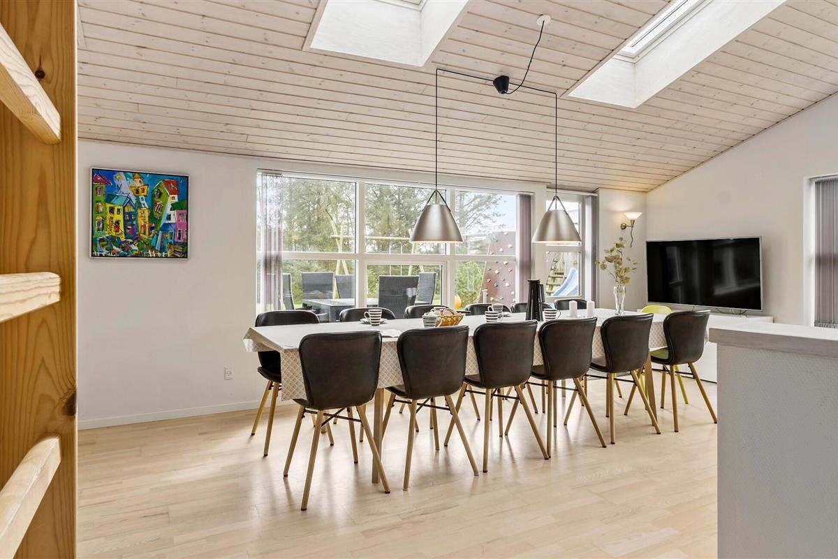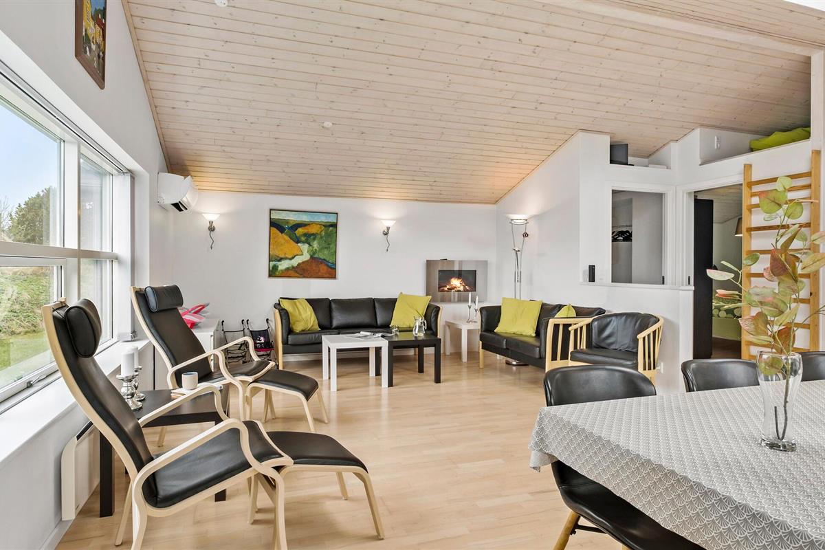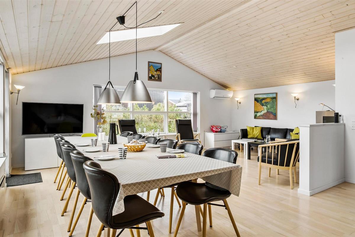 Je ruime vakantiehuis is ideaal voor vakanties met meerdere generaties of vriendenfamilies. Het ligt in Lønstrup aan de Deense Noordzeekust en biedt zowel binnen als buiten veel ruimte om samen tijd door te brengen en om je individueel terug te trekken. Maak het jezelf gemakkelijk in de lichte woonkamer met grote ramen en open plafondconstructie. Gebruik de zithoek voor ontspannende uren bij de houtkachel of verzamel je rond de lange eettafel. Kook samen in de keuken en gebruik het grote werkoppervlak om culinaire meesterwerken te bereiden.