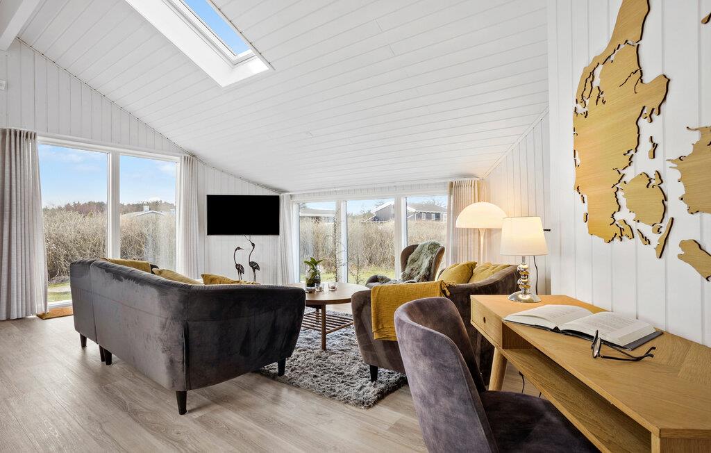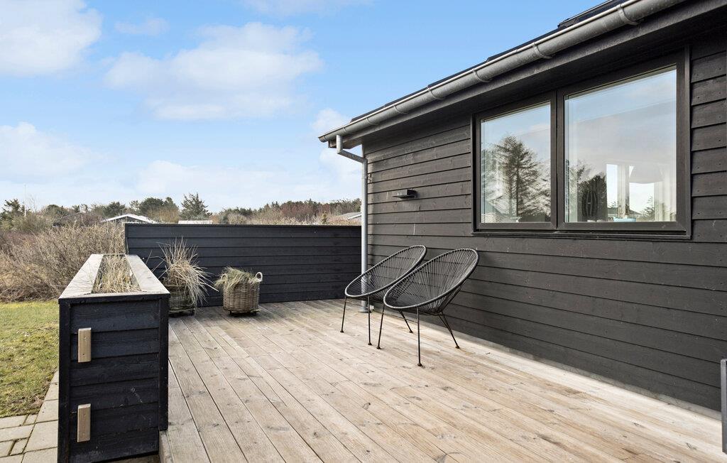 Ontspan in een modern vakantiehuis vlakbij het strand van Lønstrup met prachtig houten terras en veel licht.