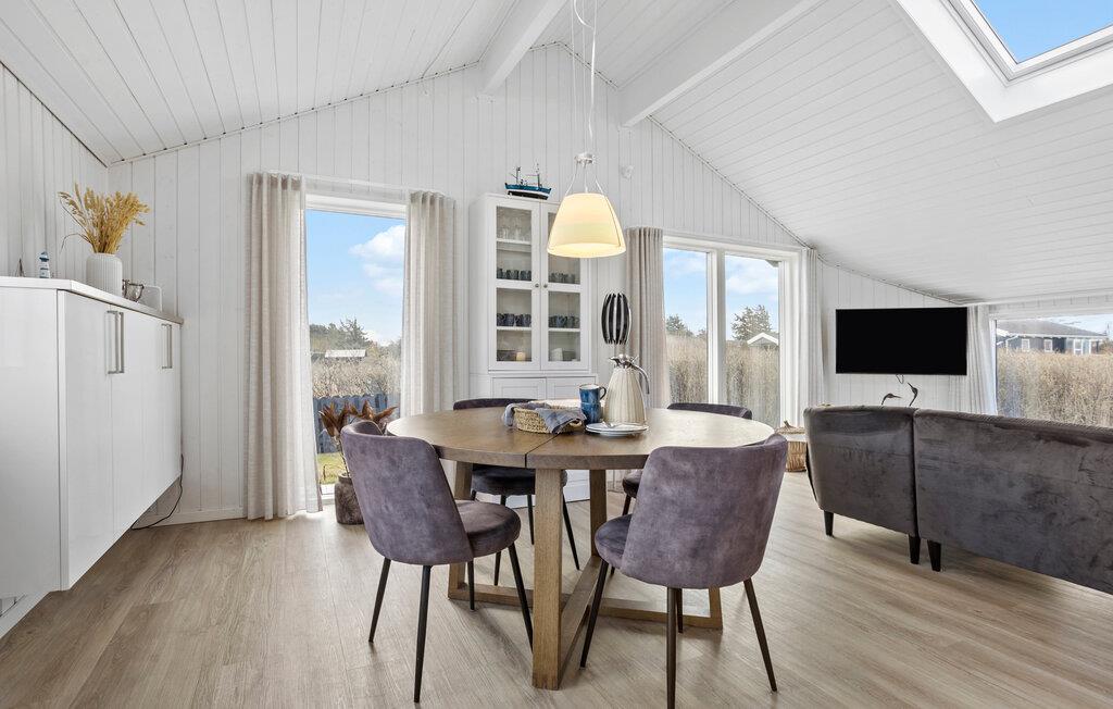 Je vakantiehuis biedt je het ideale uitgangspunt voor een ontspannen en afwisselende vakantie. Hier vind je alles wat je nodig hebt voor een geslaagde vakantie, of je nu liever rustige uurtjes in huis doorbrengt of de omgeving verkent. Begin de dag ontspannen met een vers gezet kopje koffie in de open keuken. Aan de elegante eettafel kun je je plannen voor de dag bespreken. De ruime woonkamer met gezellige zithoek nodigt uit tot het lezen van een boek of het spelen van gezellige spelletjes met het gezin. De grote ramen laten veel natuurlijk licht binnen, wat een vriendelijke en lichte sfeer creëert.