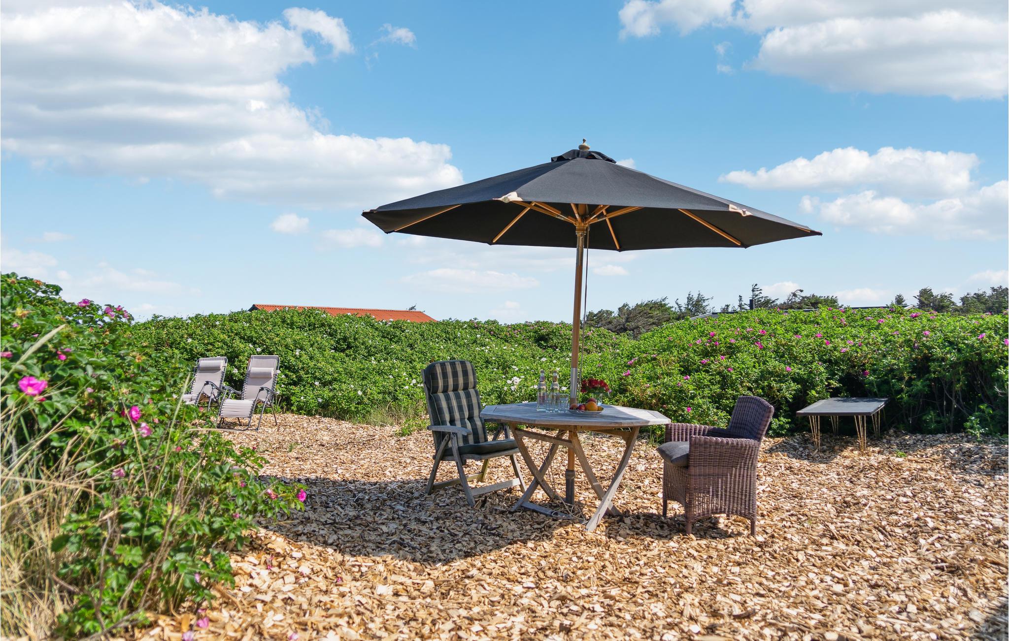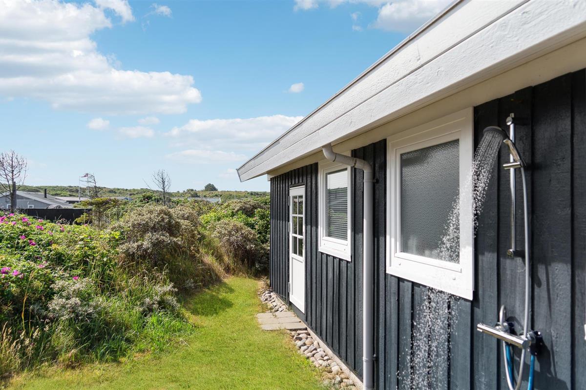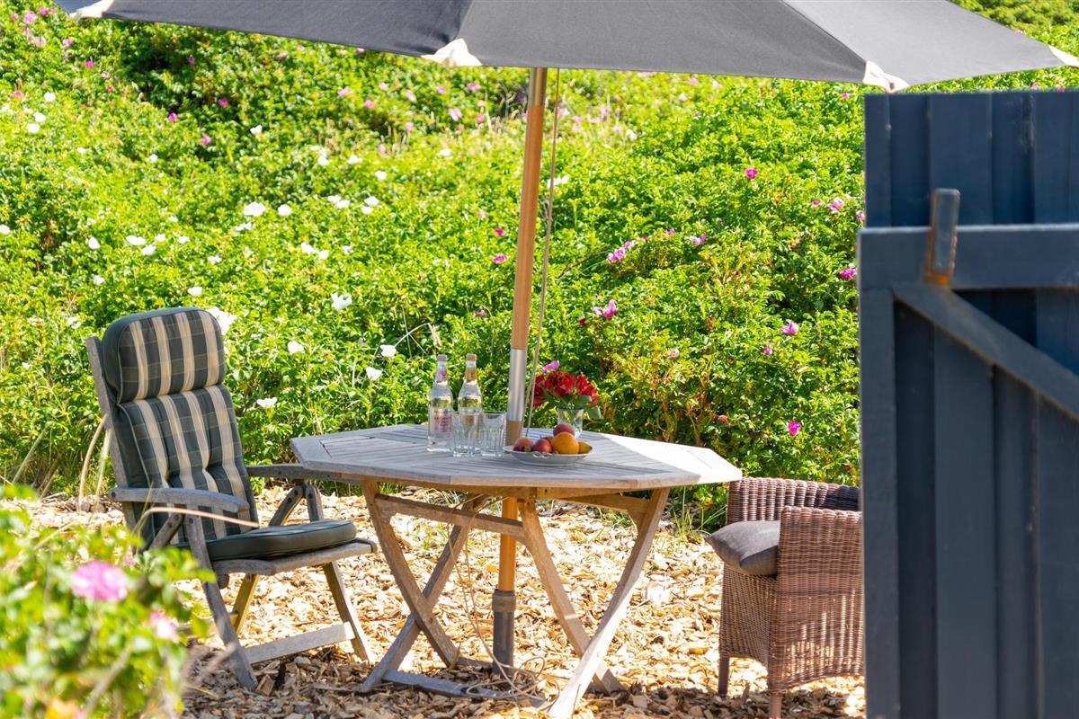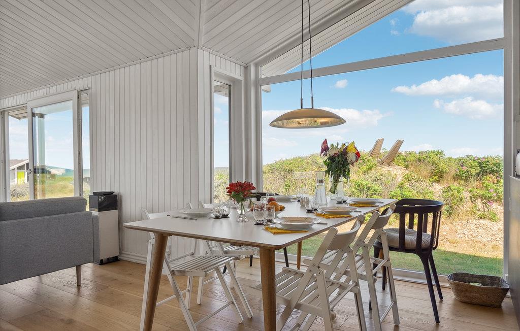 Na slechts enkele stappen door het duinlandschap bereikt u het zandstrand, dat in de zomer uitnodigt tot gezellige zwemtochten. Het hele jaar door kunt u genieten van aangename wandelingen langs het water en de wind door uw haren laten wapperen. Na een dag in de frisse lucht kunt u zich opwarmen in de outdoor whirlpool of voor de open haard. Binnen handbereik vindt u verschillende activiteiten zoals golf, minigolf en paardrijden, evenals goede lokale restaurants die u verleiden met Scandinavische gastronomie.