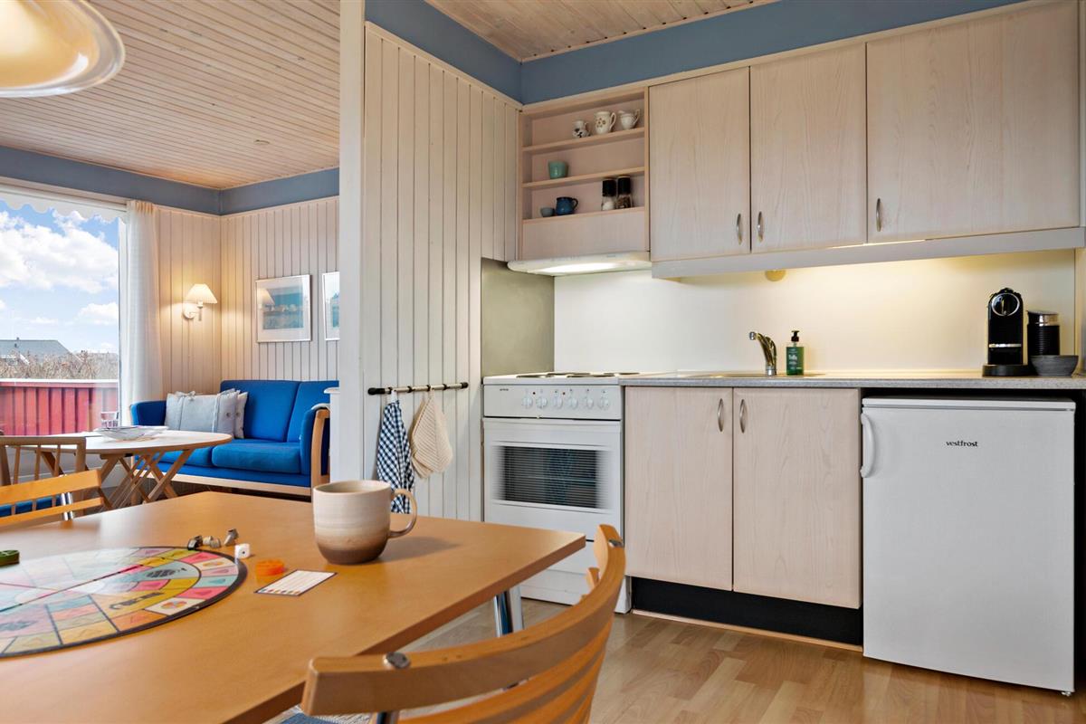 Het typisch Deense huis maakt indruk met zijn houten gevel en het ruime, gedeeltelijk overdekte terras, dat uitnodigt om ontspannende uren buiten door te brengen. De gezellige woonkamer is licht en uitnodigend, met een houtkachel die een gezellige sfeer creëert op kille dagen. Breng ontspannende uren door met bordspellen spelen of gewoon genieten van de rust. In de open keuken kun je samen je maaltijden bereiden. Ontspan aan het eind van de dag in de sauna en denk na over de ervaringen van de dag.