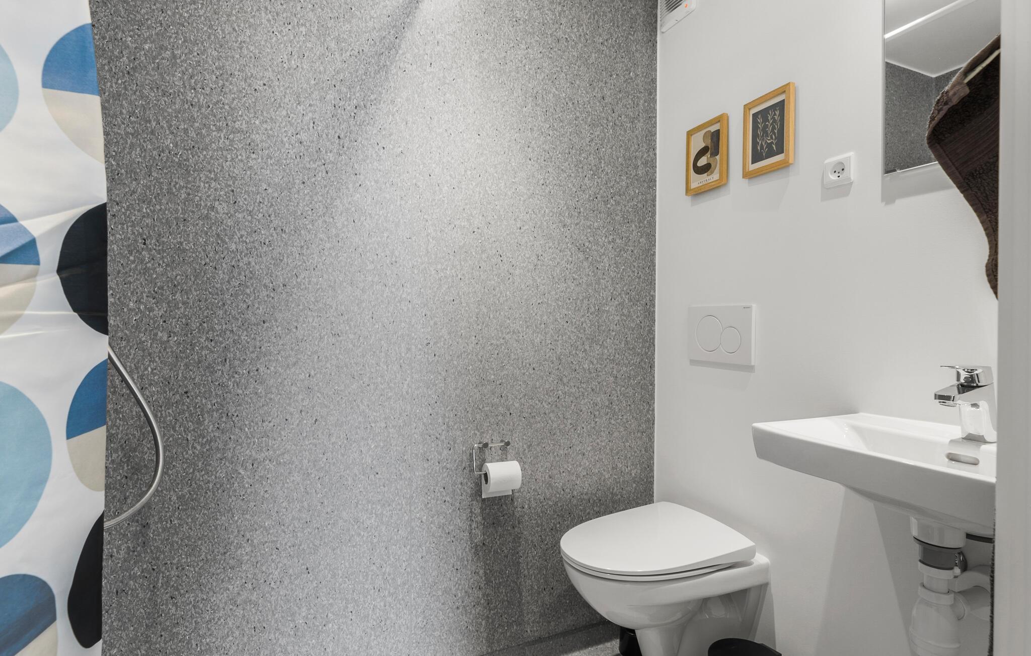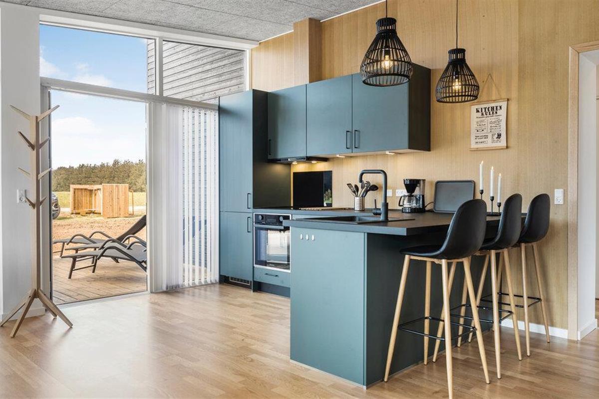 Dit moderne vakantiehuis biedt de perfecte omgeving voor een onvergetelijke vakantie met je gezin. De open keuken nodigt uit om samen te koken. Geniet 's ochtends van je eerste kopje koffie van de dag aan het aanrecht en bereid daarna het familieontbijt. Geniet van je maaltijden in de eethoek met zijn grote ramen, die een lichte en vriendelijke sfeer creëren. Een bijzonder hoogtepunt is de privésauna, die zorgt voor ontspanning na een actieve dag.