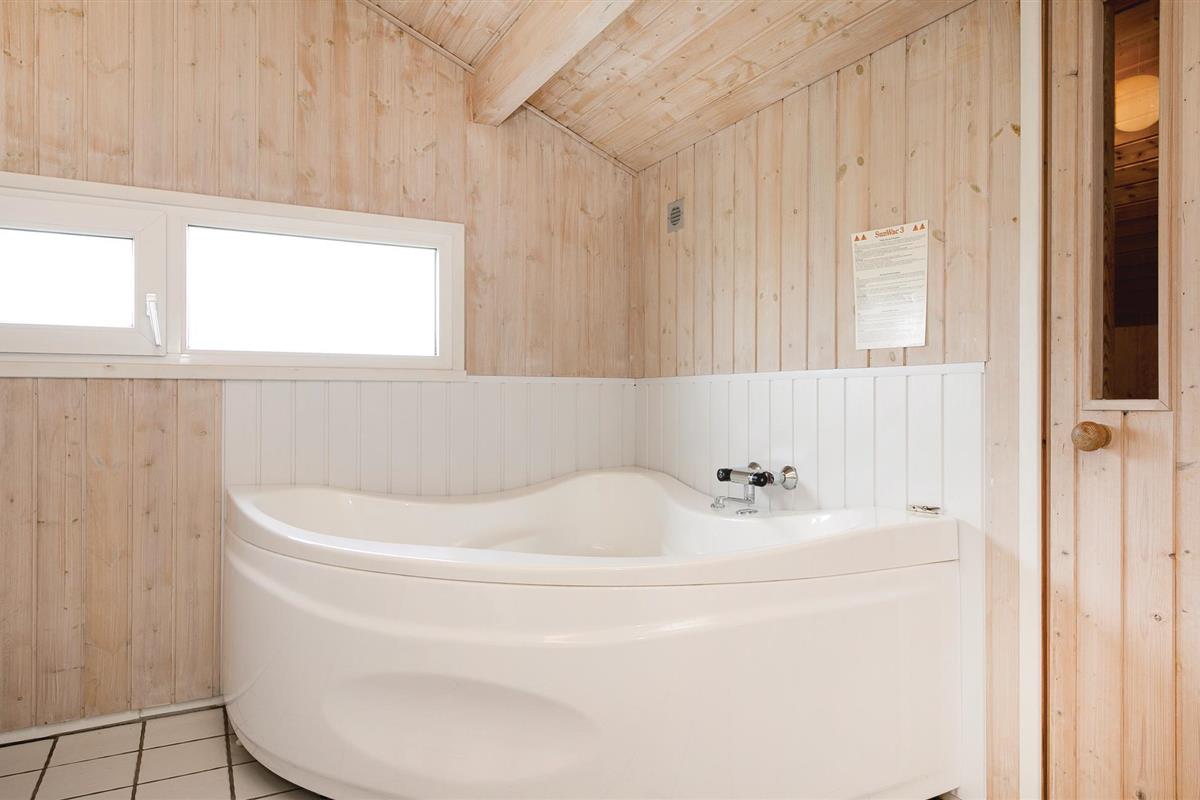 In Lønstrup vindt u dit goed onderhouden houten vakantiehuis op een hoekperceel op een steenworp afstand van de zee. Binnen vind je een gezellig en smaakvol interieur met houten vloeren in de woonkamer en keuken, die bijdragen aan de aangename zomerhuissfeer. Geniet van heerlijke maaltijden aan de eettafel, neem plaats voor de open haard met een goed boek en trakteer jezelf op wat wellness in de whirlpool of sauna na een verfrissende wandeling.