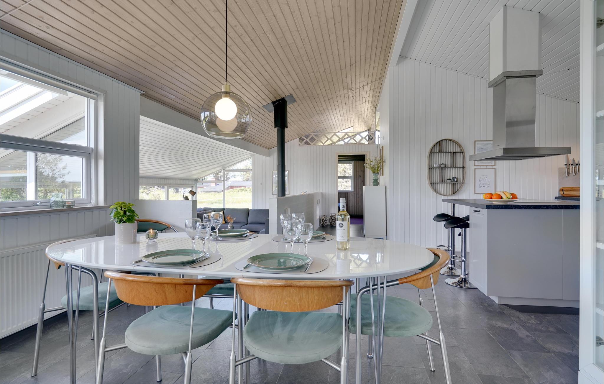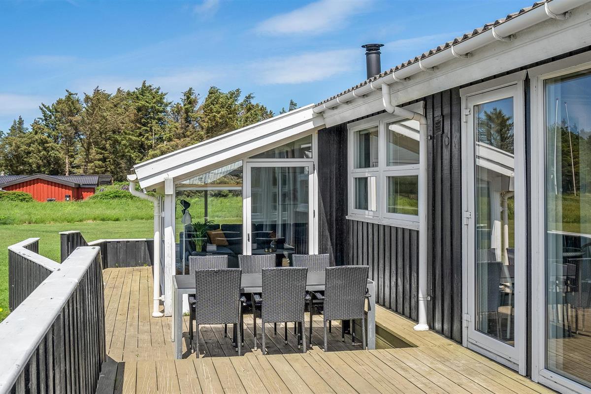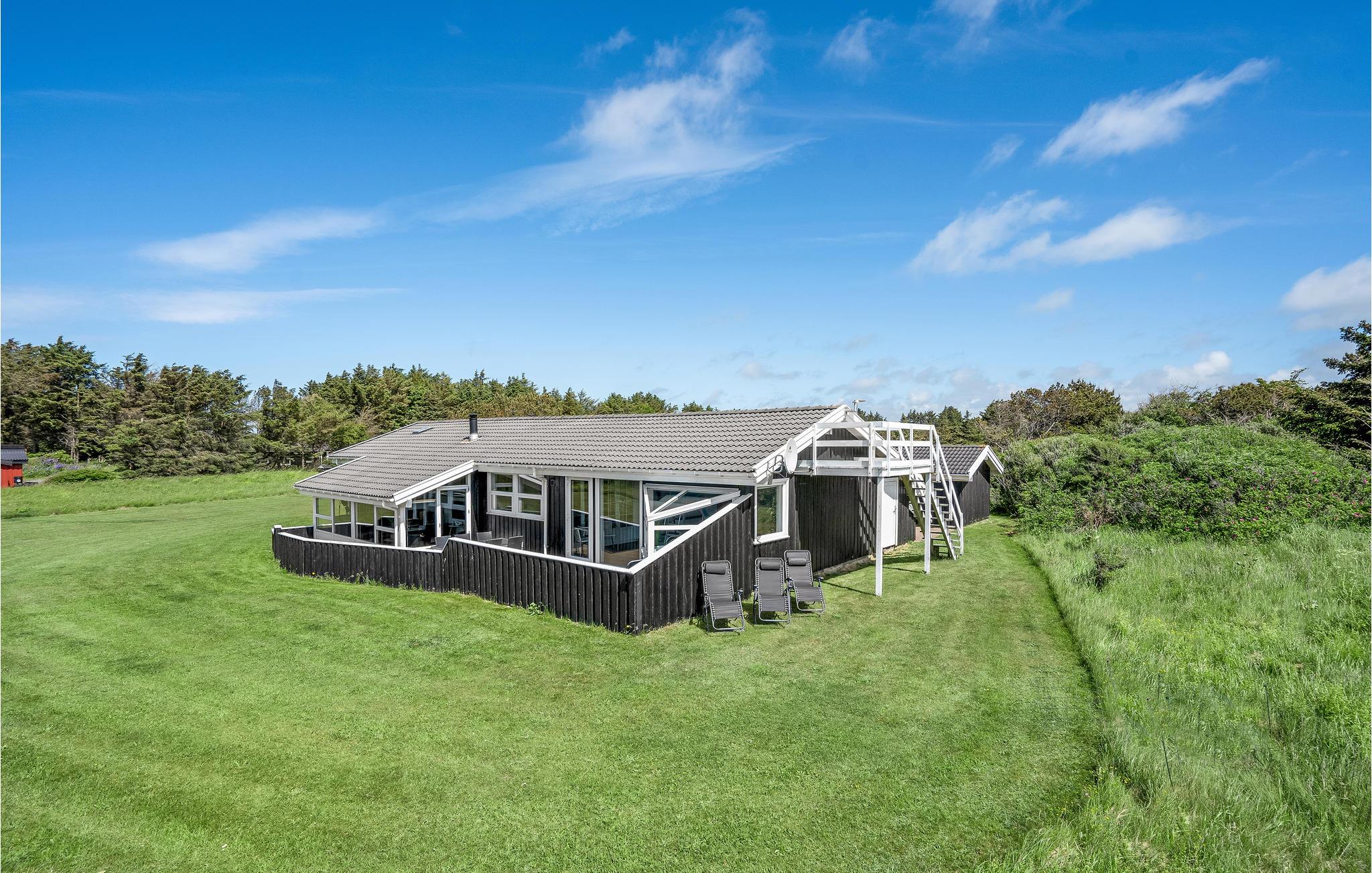 Zeer dicht bij de populaire badplaats Lønstrup aan de Deense Noordzeekust vindt u dit aantrekkelijke vakantiehuis in een beschut vakantiegebied. Het goed uitgeruste huis is modern en licht ingericht en biedt alles wat u nodig heeft voor een comfortabele vakantie. Geniet vanuit de woonkamer met een kopje koffie van het uitzicht op het groen en warm uzelf in het koele seizoen op voor de open haard. Spring in het zwembad voor een verfrissende duik en geniet van gezellige warmte in de whirlpool of de sauna.