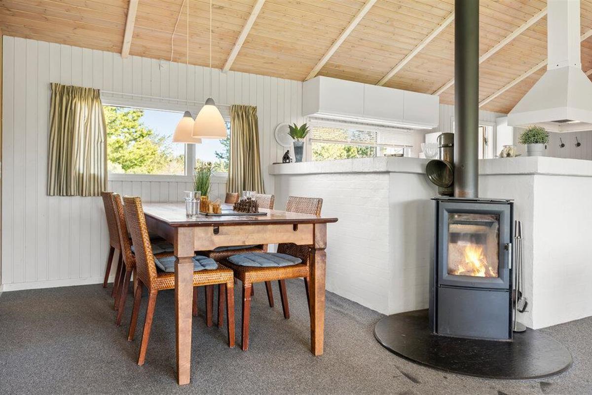 Dit energievriendelijke vakantiehuis ligt op een prachtig natuurgrondstuk en op loopafstand van het vissersdorp Lønstrup en zijn rustige steegjes, winkels, ambachtslieden en cafés. Een huis met Wi-Fi (20/10 MB), een lichte woonkamer en een gezellige open haard. De authentieke cottage sfeer is bewaard gebleven in het huis. Dit huis ligt ook niet ver van de vuurtoren Rudbjerg Knude en een van de beste stranden van de Jammerbay. Naast een lichte woonkamer met een plafond dat open is naar de nok, vindt u ook een lichte badruimte met een zwembad van 18 m². Vanuit de woonkamer ziet u de ruimte door de glazen wand. Vanuit het zwembadgedeelte en de woonkamer bereikt u het gedeeltelijk overdekte terras op het westen, waar gezellig tuinmeubilair op u wacht. De onoverdekte terrassen op het zuiden en oosten zijn eveneens voorzien van kwaliteits tuinmeubilair. Het huis is goed geïsoleerd en wordt verwarmd met warmtepompen, de verbruikskosten zijn daardoor wat lager.