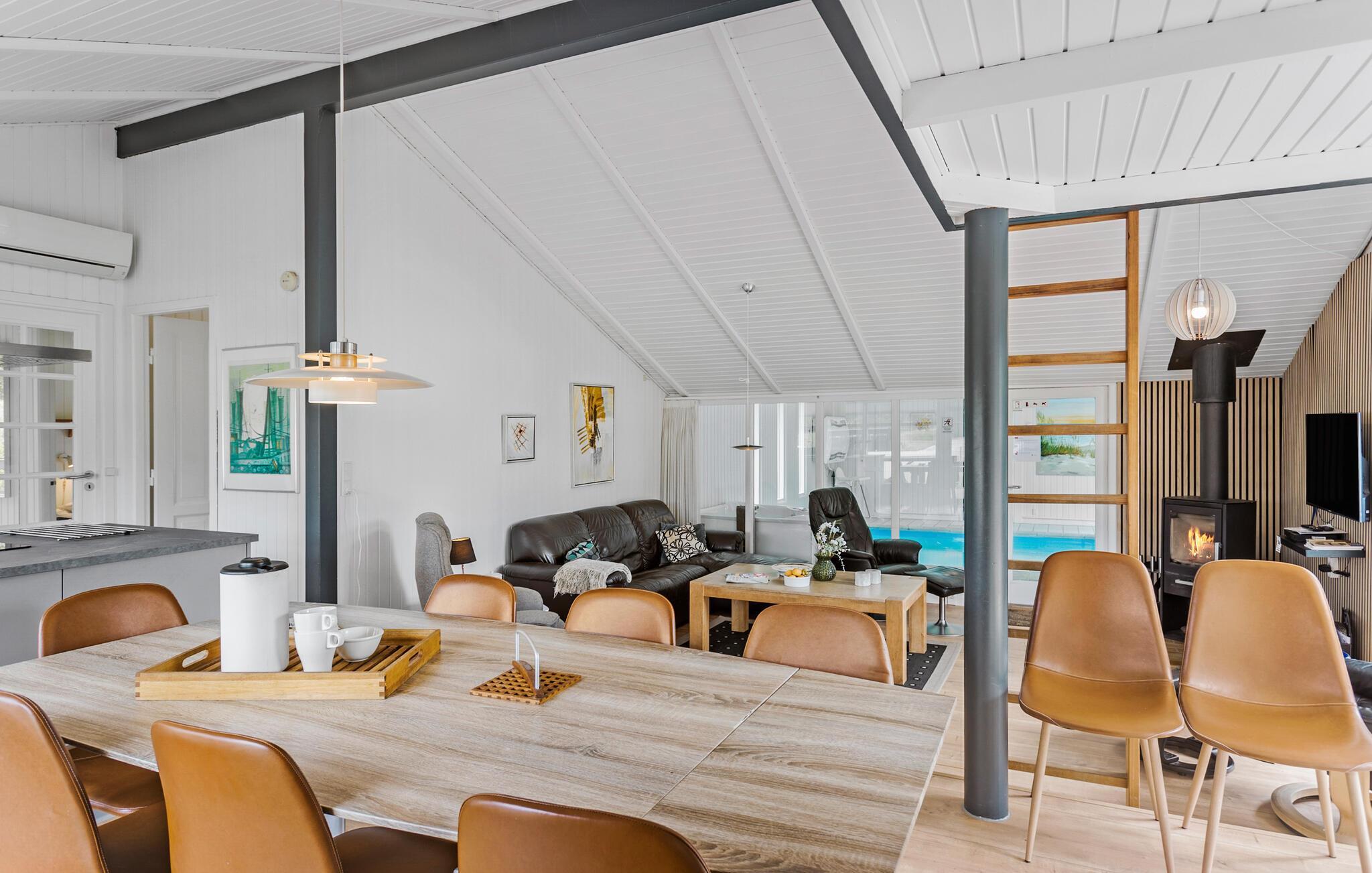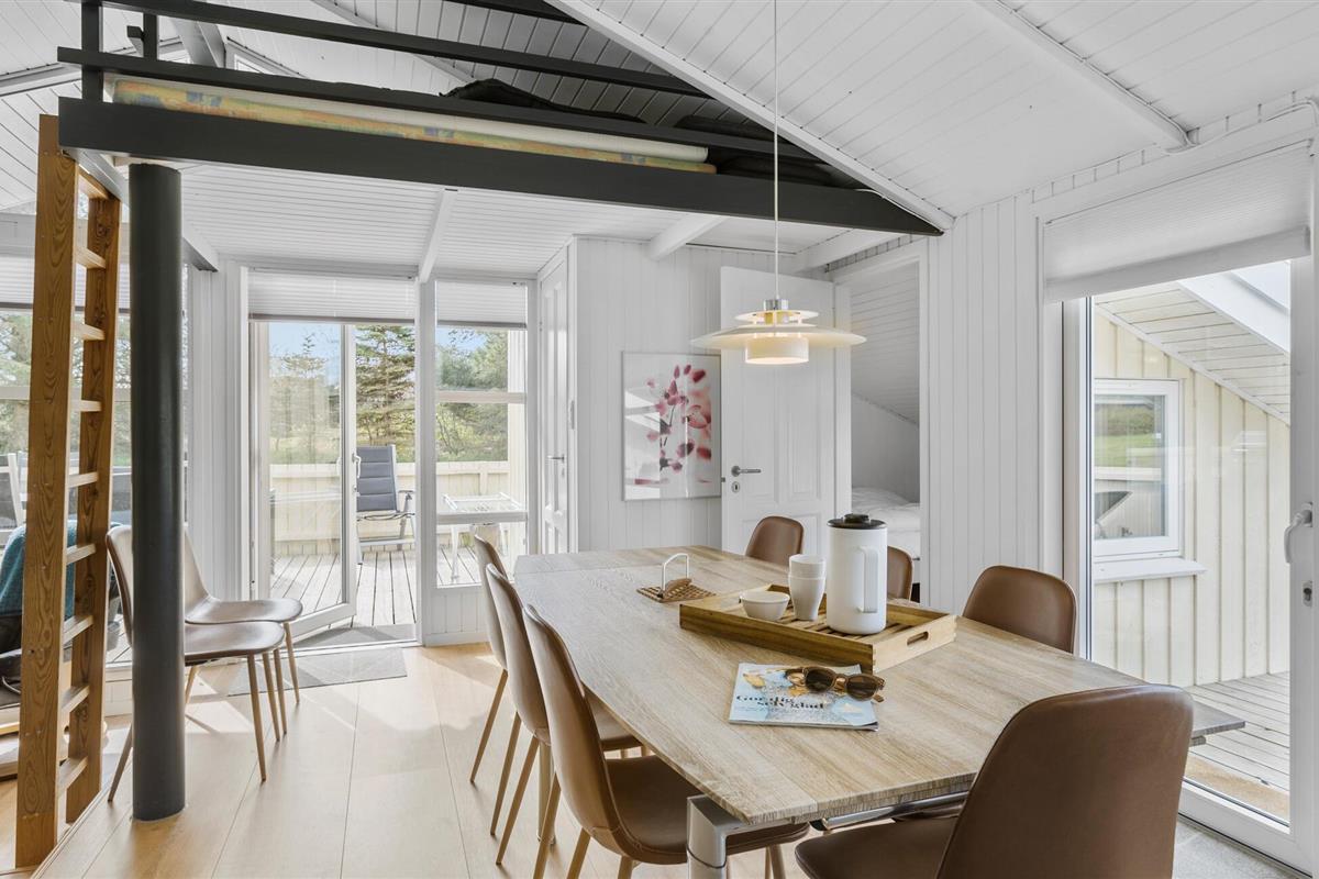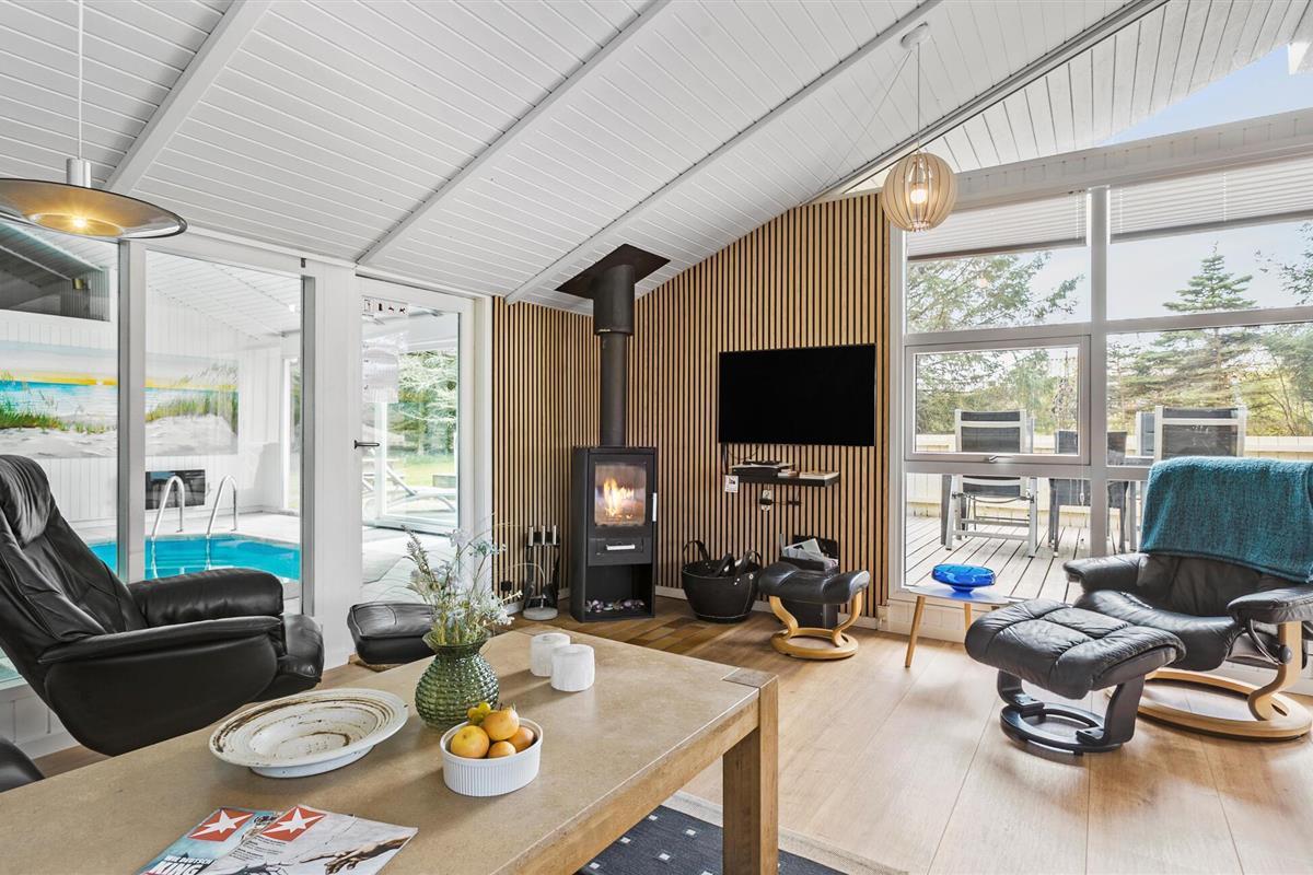 Dicht bij het strand en de stad vindt u dit prachtig ingerichte vakantiehuis op een goede locatie met zwembad en grote terrassen - open en overdekt aan drie zijden van het huis. Het huis ligt in een doodlopende straat, op een groot natuurlijk perceel en biedt de beste voorwaarden voor een perfecte vakantie met spel en sport. Door de bouwstijl lijkt het klein en gezellig. De eigenaar heeft in 2017 een snelle breedband internetverbinding en warmtepompen aangeschaft om de verbruikskosten zo laag mogelijk te houden. Als je in de keuken vakantiemaaltijden kookt, kun je ondertussen met de gasten kletsen. Door het grote raam kun je ook altijd naar de actie in het zwembad kijken. Twee slaapkamers zijn links en rechts van de woonkamer geplaatst, waardoor het huis geschikt is voor twee gezinnen. In dit gebied vindt u een van de beste stranden van de Noordzeekust. Tegelijkertijd is de natuur hier prachtig. Lønstrup is een vakantieoord waar de oorspronkelijke sfeer van een kleiner dorp goed bewaard is gebleven, maar er zijn hier ook goede winkels, cafés en restaurants. Bijzonder zijn de vele ambachtslieden en hun open werkplaatsen, bijvoorbeeld ambersnijders, glasblazers en pottenbakkers. Voor gezinnen met kinderen biedt het Noordzee Oceanarium in Hirtshals veel afwisseling. Bezoek ook zeker Skagen en Grenen.
