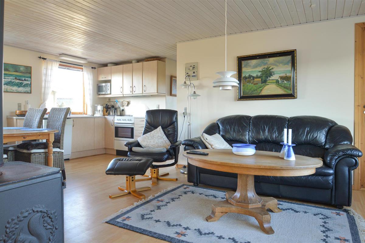 Charmant houten vakantiehuis nabij Lønstrup met zeezicht, open keuken en terras, perfect voor een ontspannen verblijf aan de Noordzee.