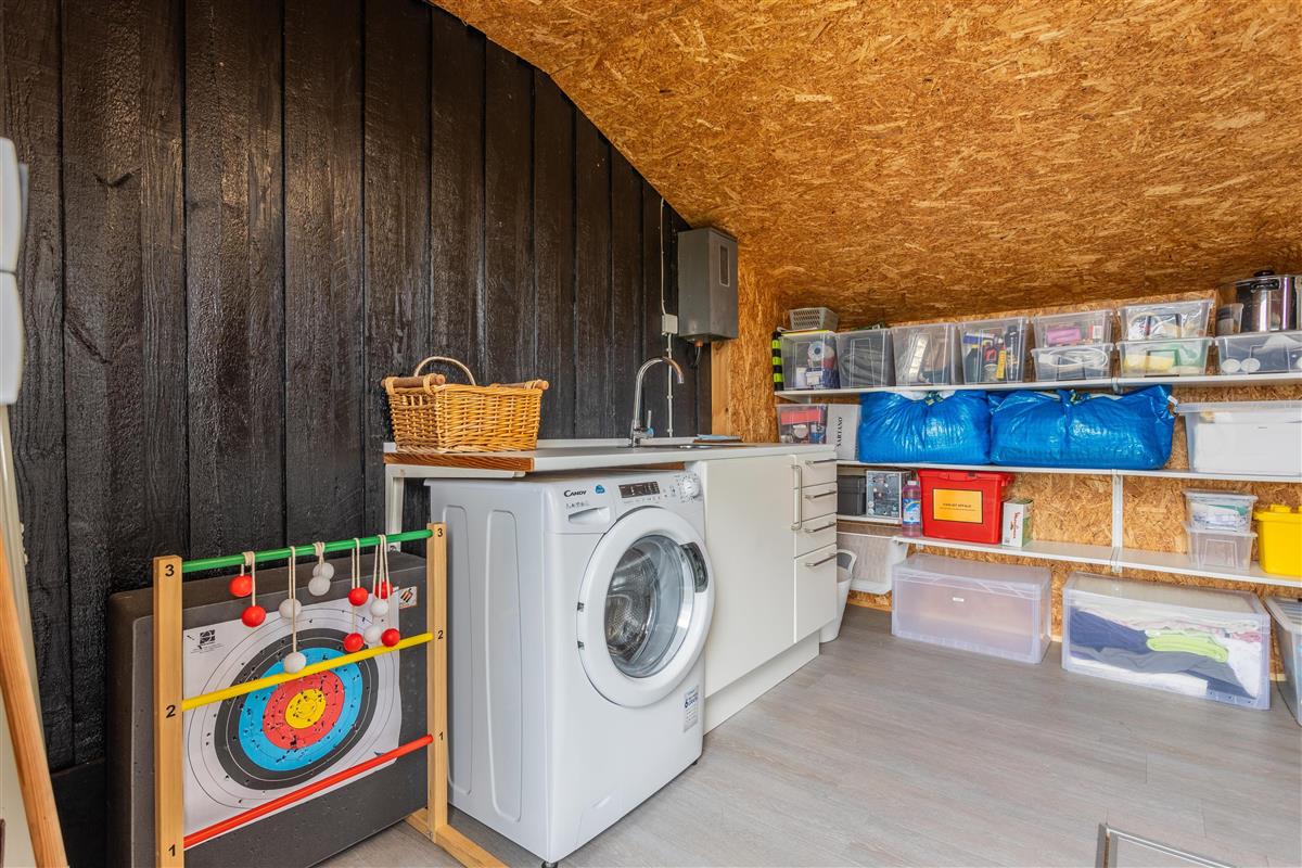 In the utility room, you will find a small hatch in the floor leading down to a practical "wine cellar"—perfect for storing beverages and vegetables.