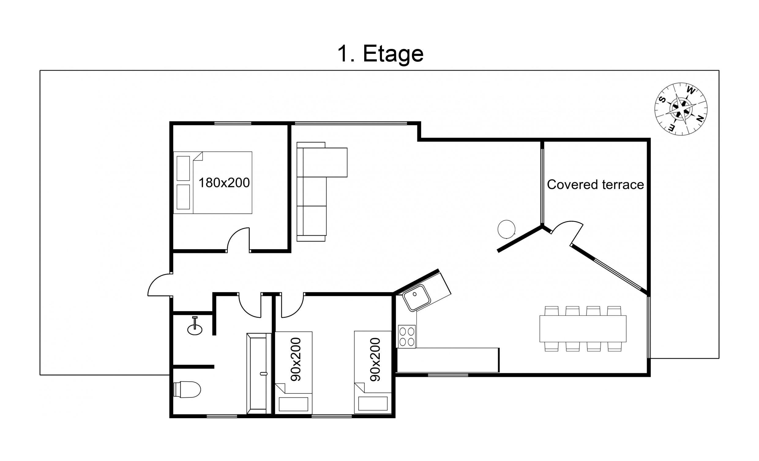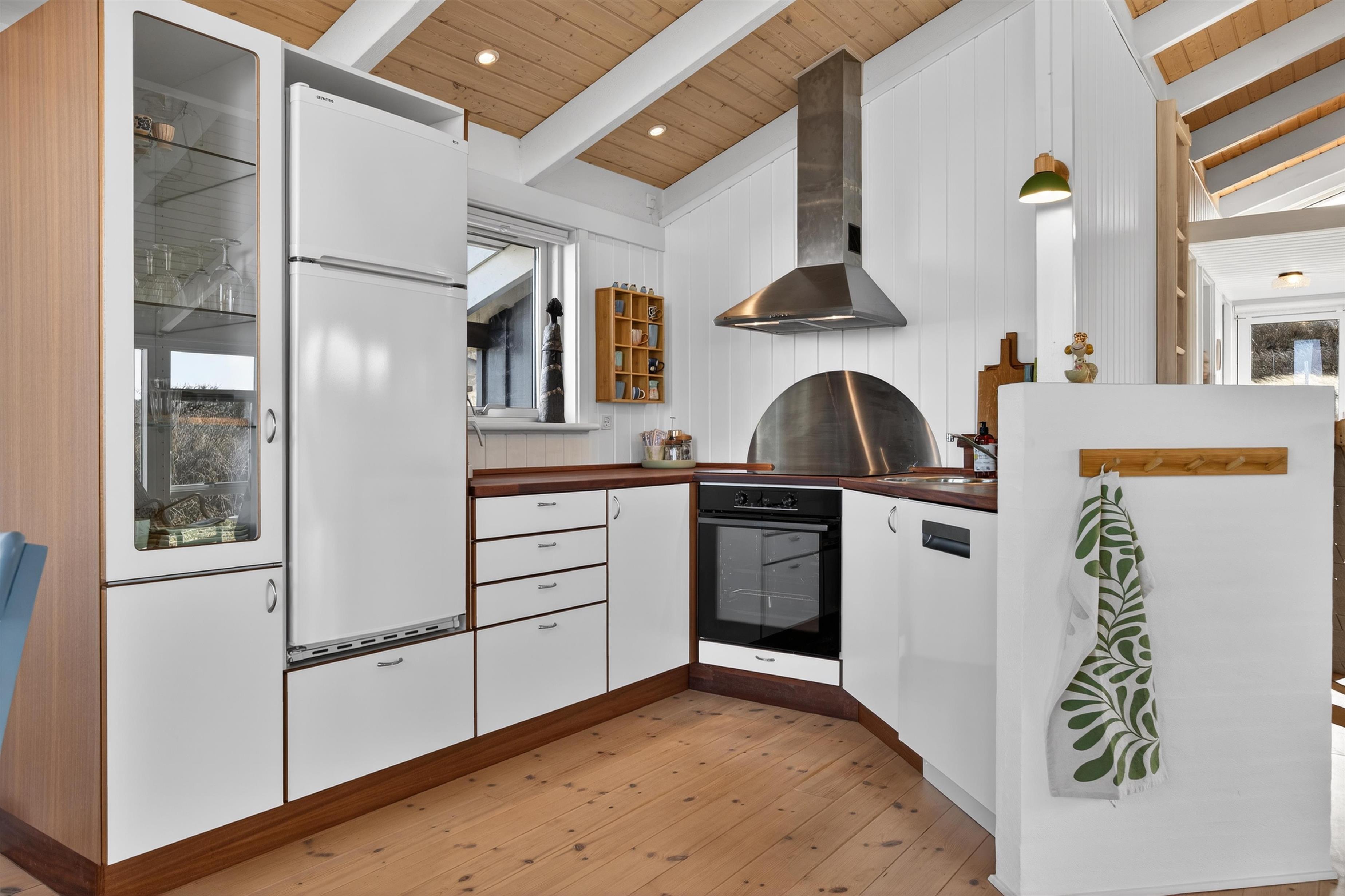 The kitchen is openly connected to the dining area and contains everything you need to prepare delicious holiday meals. On cooler days when the wind blows outside, you can light the wood-burning stove and enjoy the cosy warmth and the crackling fire after a long day at the beach.