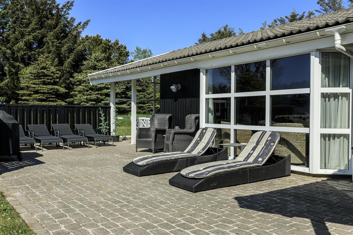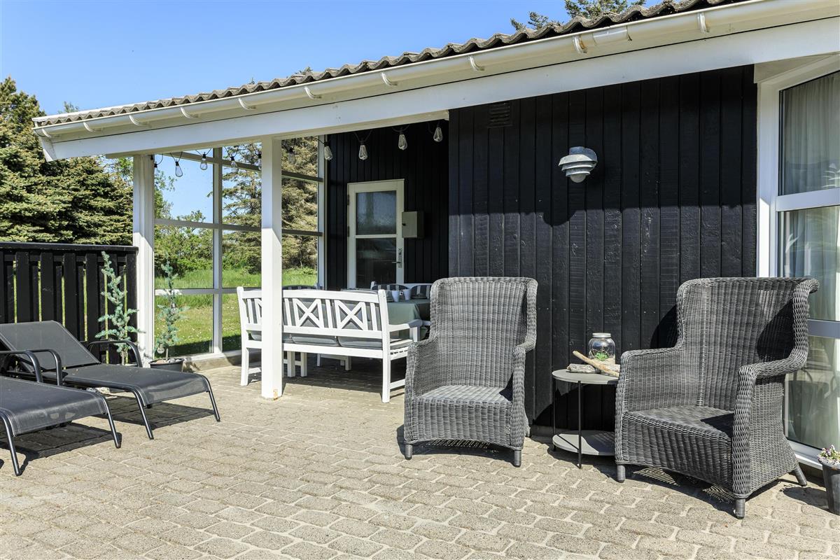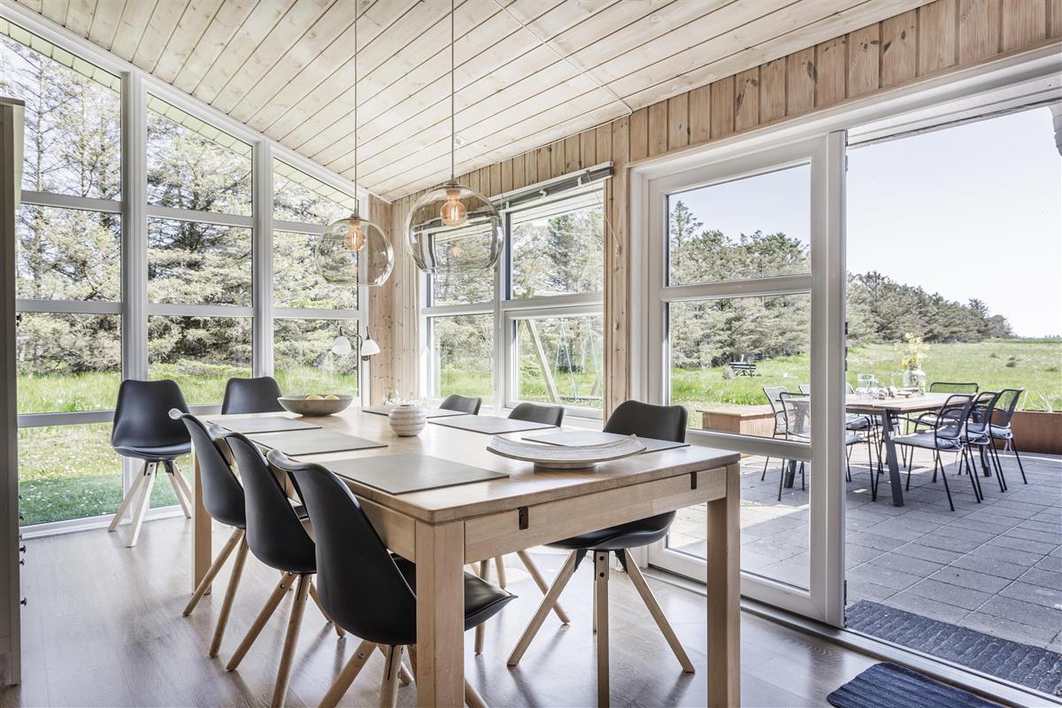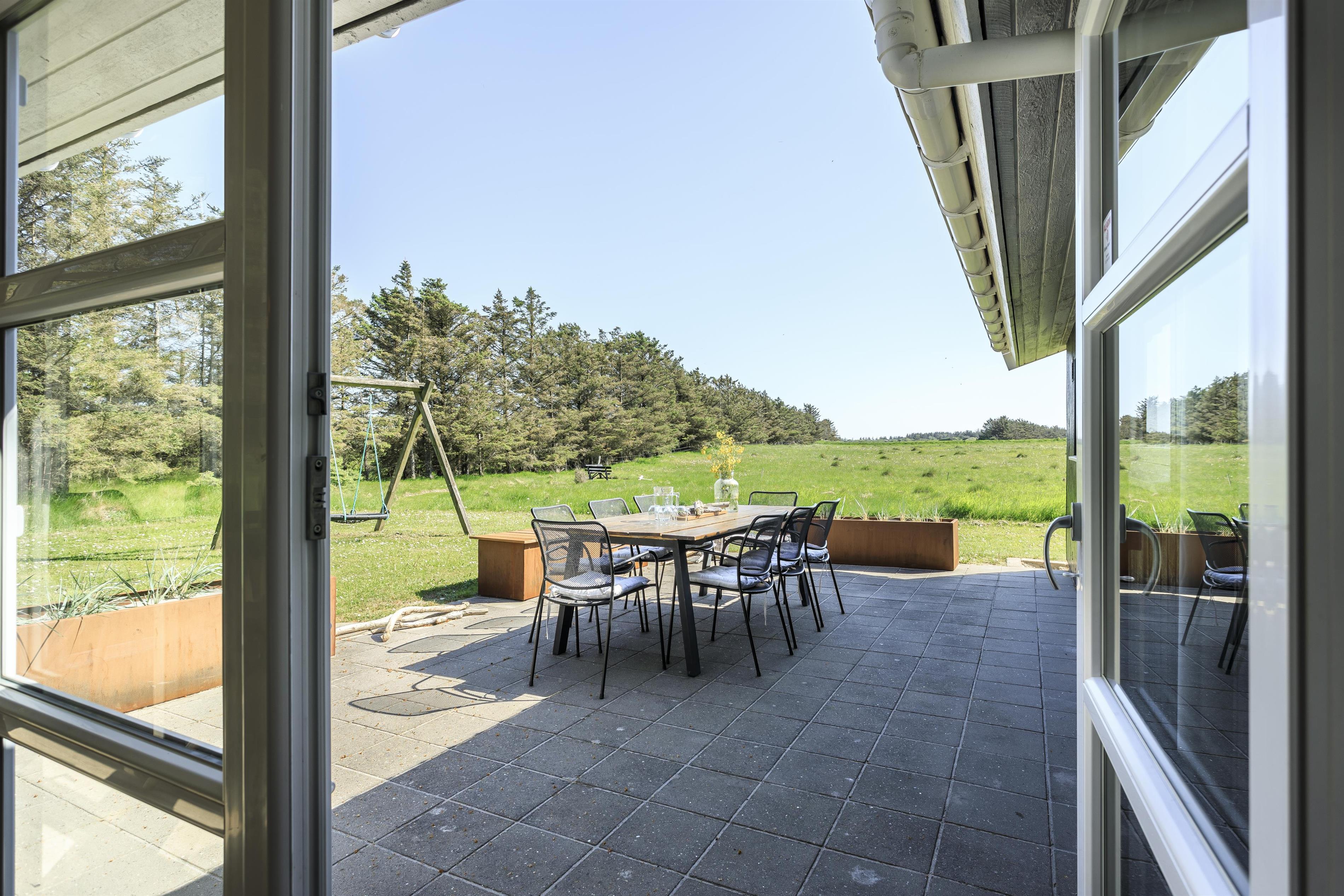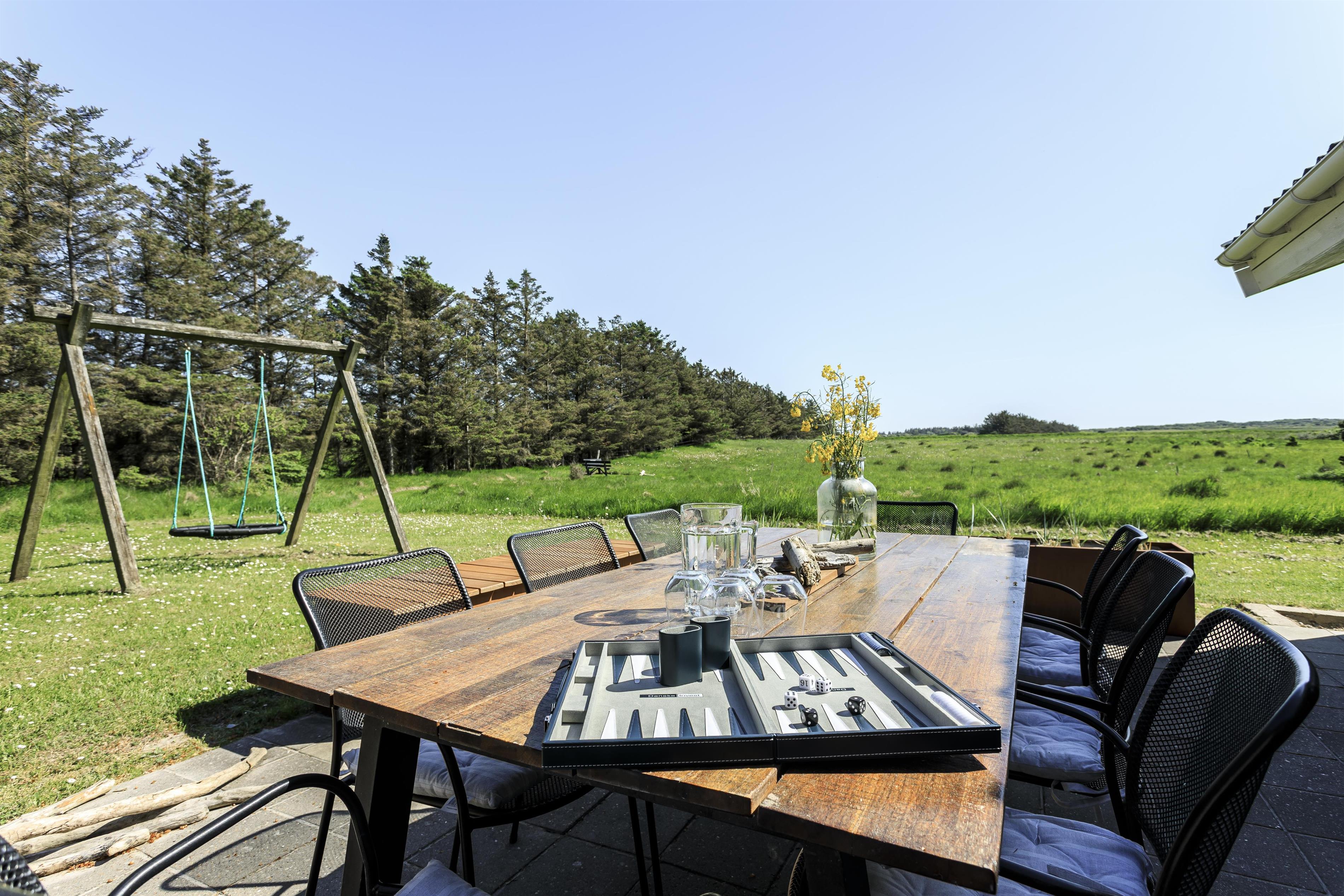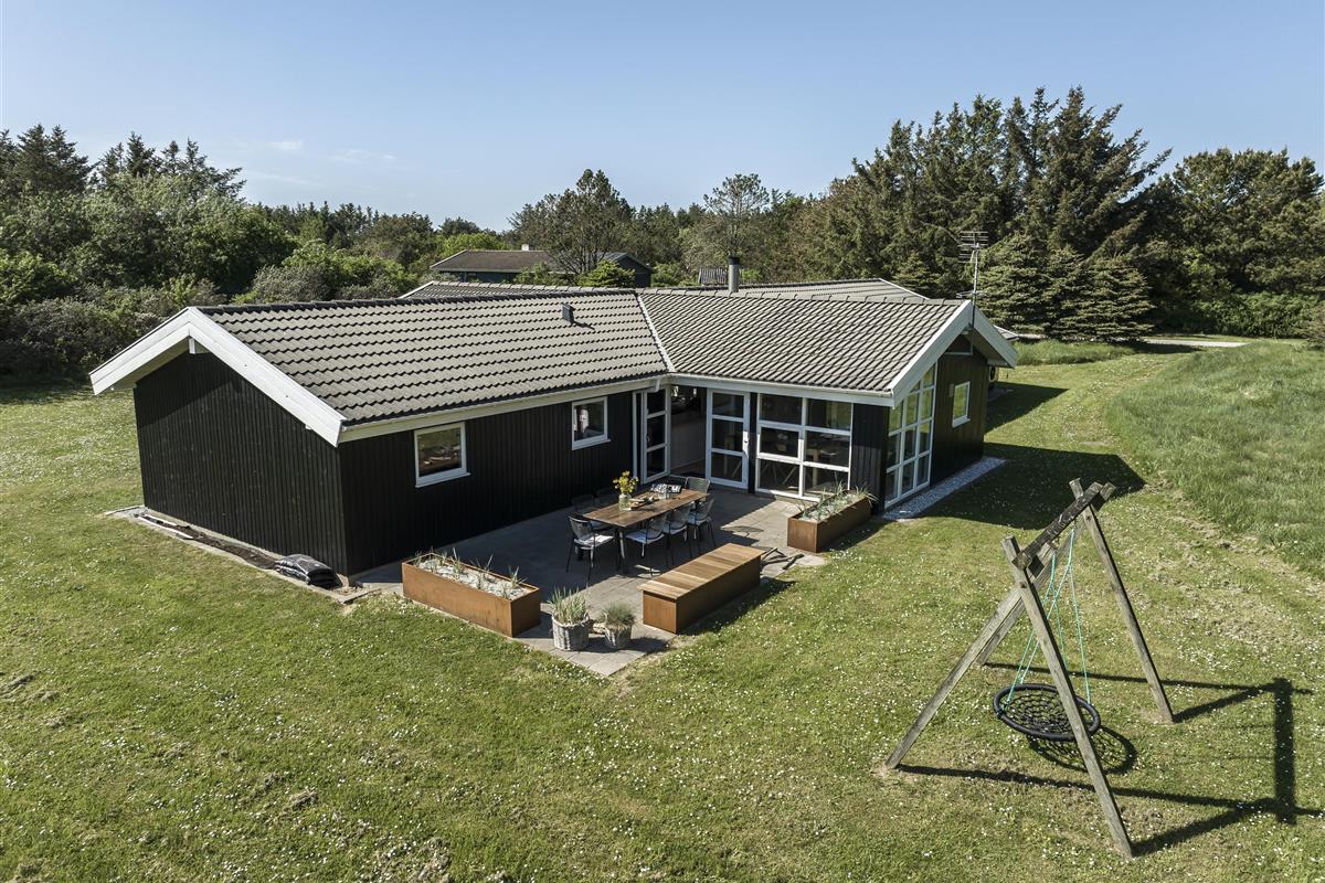 Under the covered terrace, you can enjoy your afternoon coffee while taking in the fresh West Coast air. No matter where you are, you’ll have stunning views of the surrounding landscape. The large garden is perfect for outdoor activities and ball games on the lush green lawn. At the bottom of the garden, a bench awaits, offering a fantastic view of the landscape, with the iconic Rubjerg Knude Lighthouse as a picturesque backdrop.