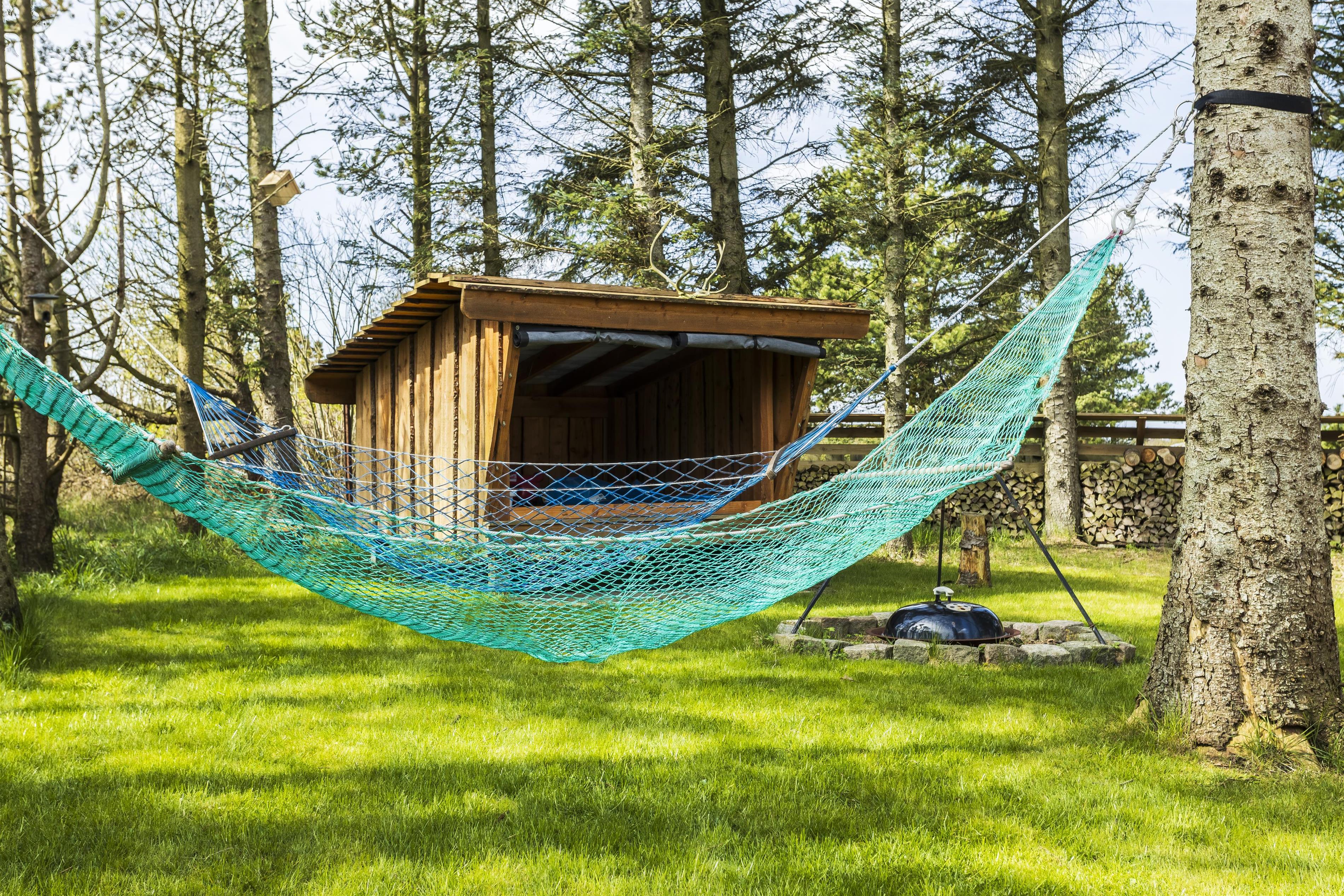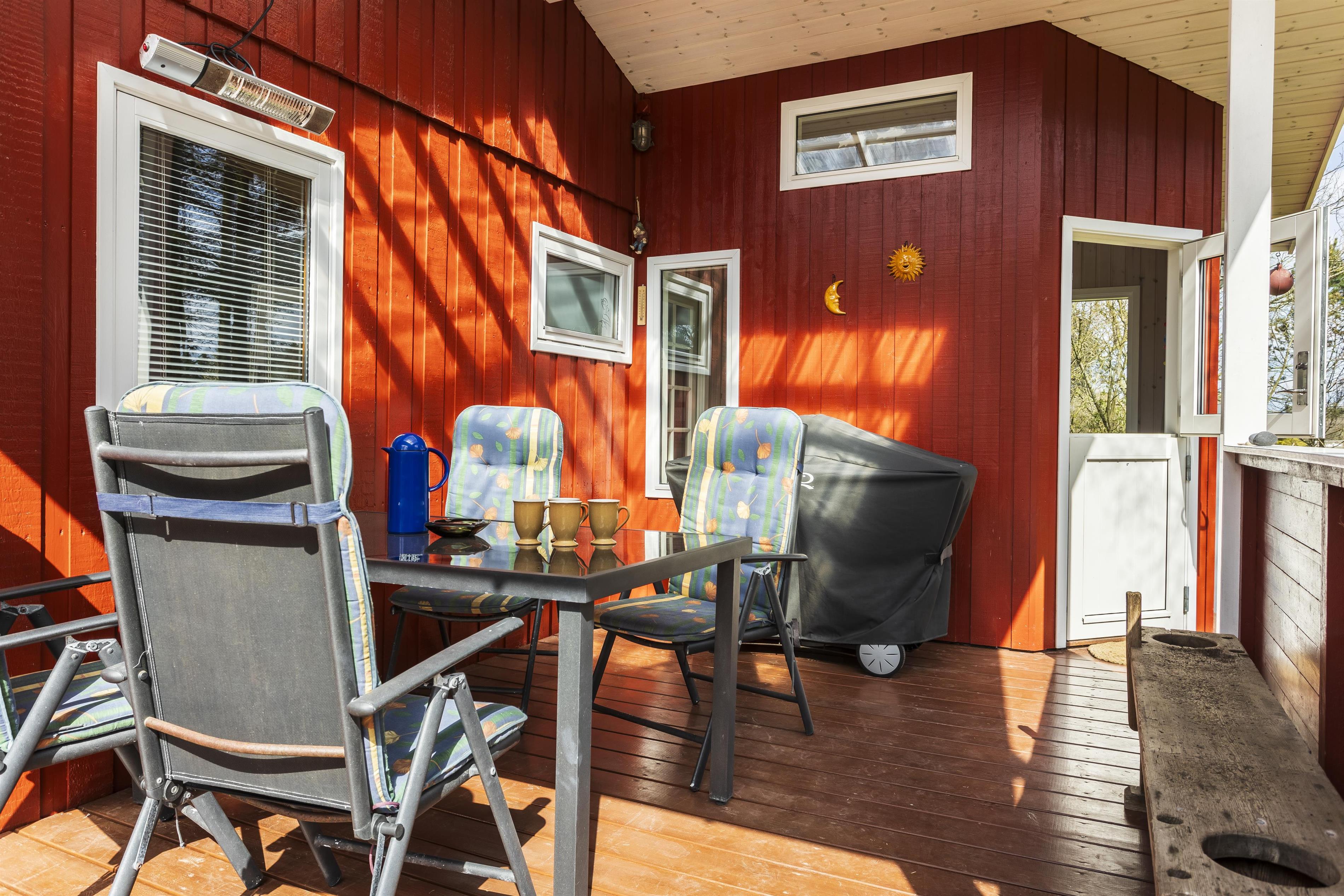 The enclosed garden provides space for both play and peace, so everyone can find their favorite spot in the picturesque surroundings. There's also a shelter, where you can enjoy a relaxing afternoon or a cool night’s sleep during the warm summer months. By the fire pit, you can gather and tell stories while roasting marshmallows or enjoying other treats.