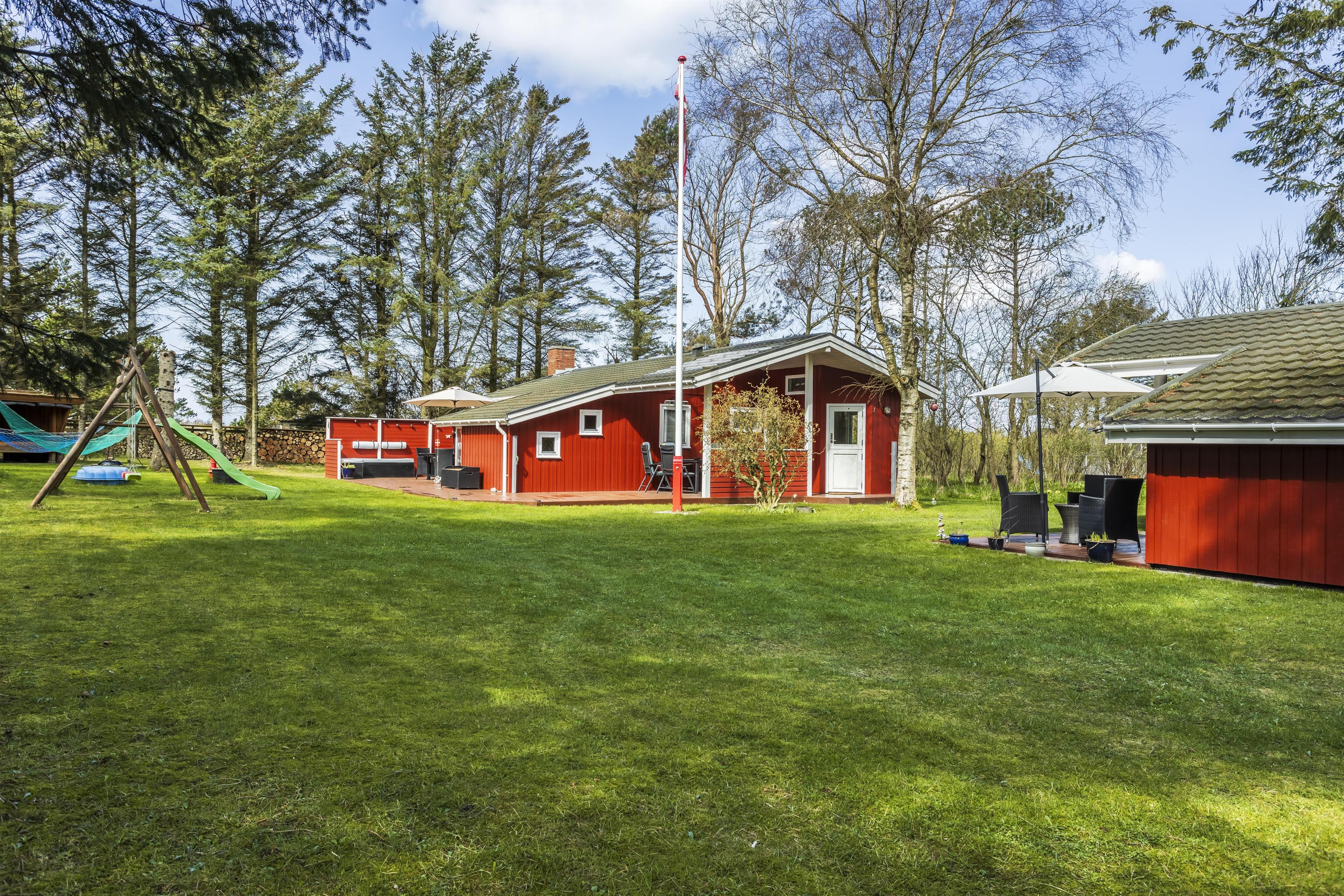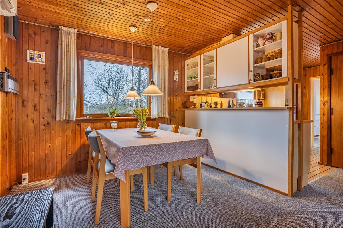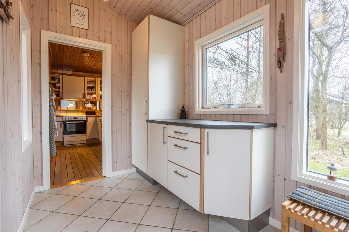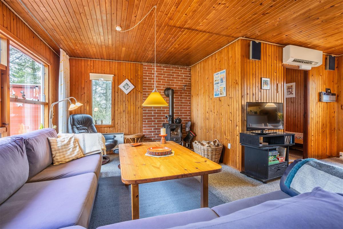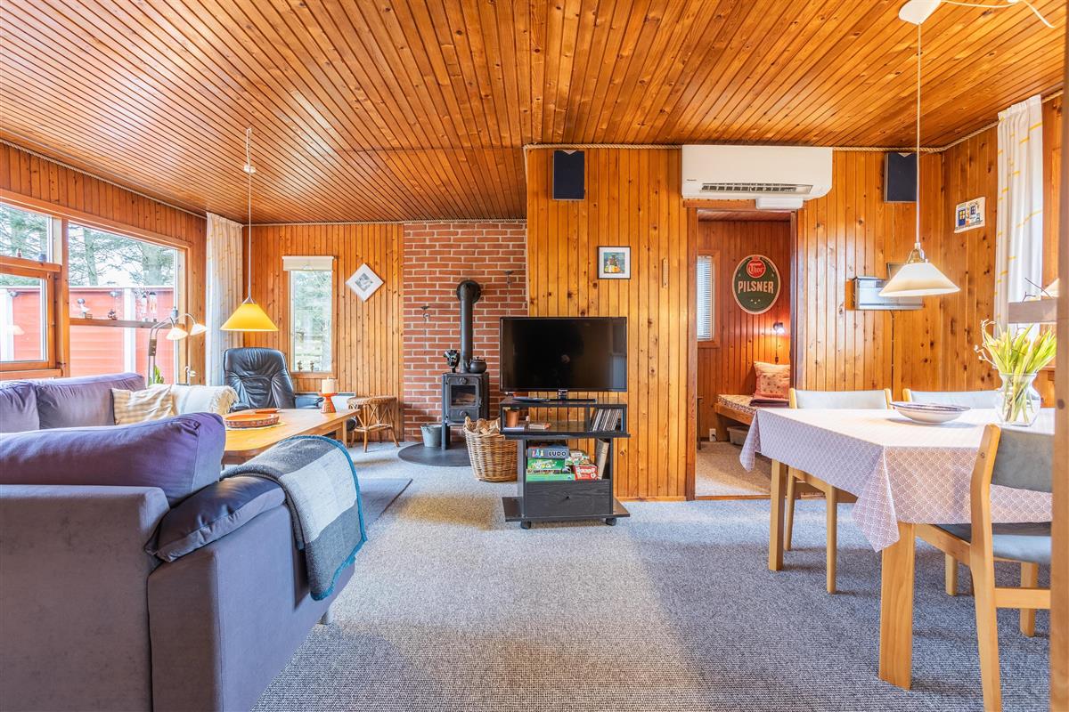 This well-maintained holiday home is functionally designed with a focus on comfort and coziness. Upon entering, you'll find a spacious utility room with plenty of space for shoes and coats before heading into the small, cozy kitchen. Here, you can gather around for cooking and enjoy the homely atmosphere while discussing the day's adventures. The living room is cozy, furnished with a large sofa that invites you to play games or unwind with family. On chilly winter evenings, the wood-burning stove creates a pleasant warmth and a special ambiance in the house. The house also includes three comfortable bedrooms and a lovely bathroom. With only 800 meters to the beach, this house is perfect for those who want a vacation close to nature. A short walk leads you to the beautiful sandy beach, where you can enjoy everything from relaxing days in the sun to refreshing walks along the water.