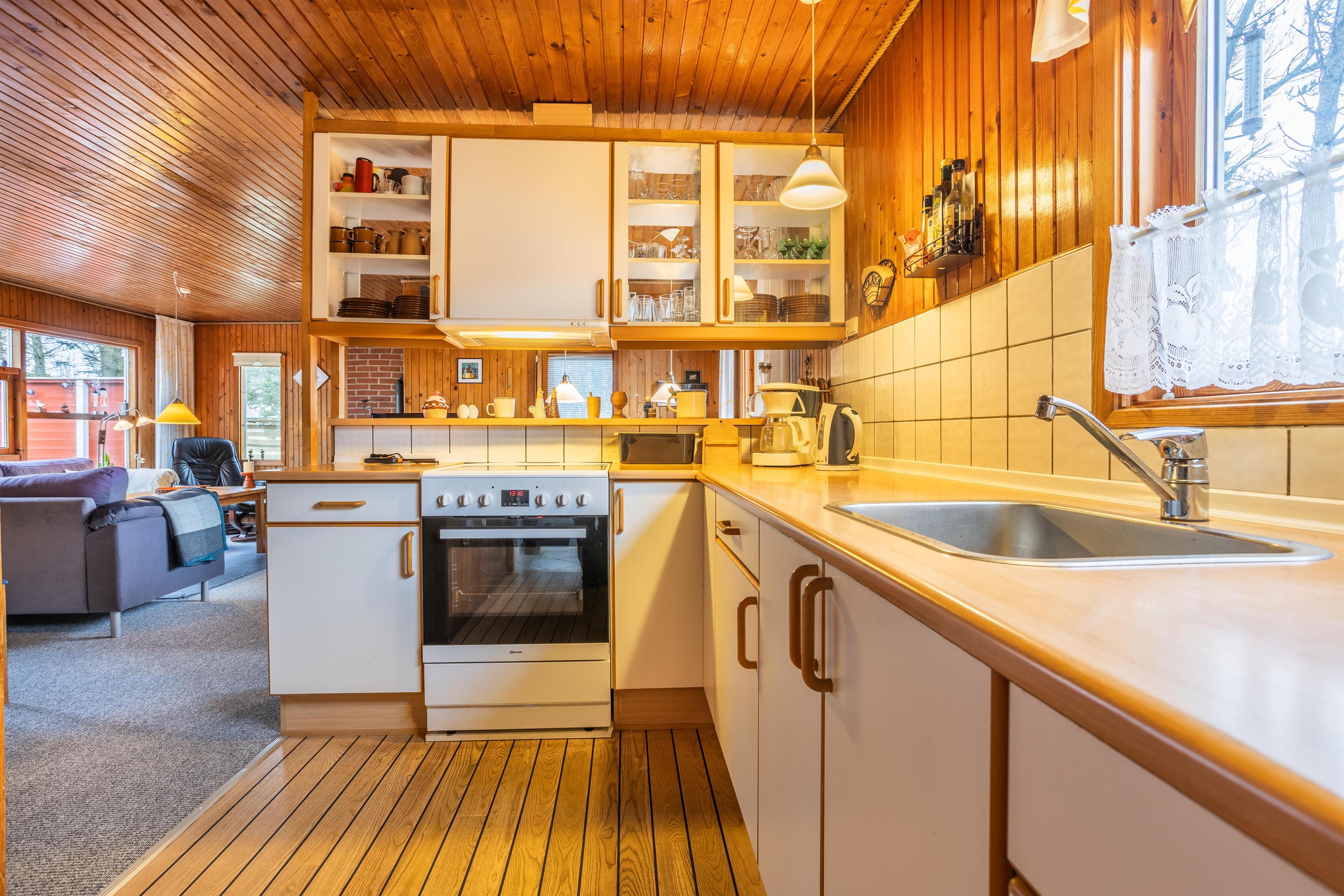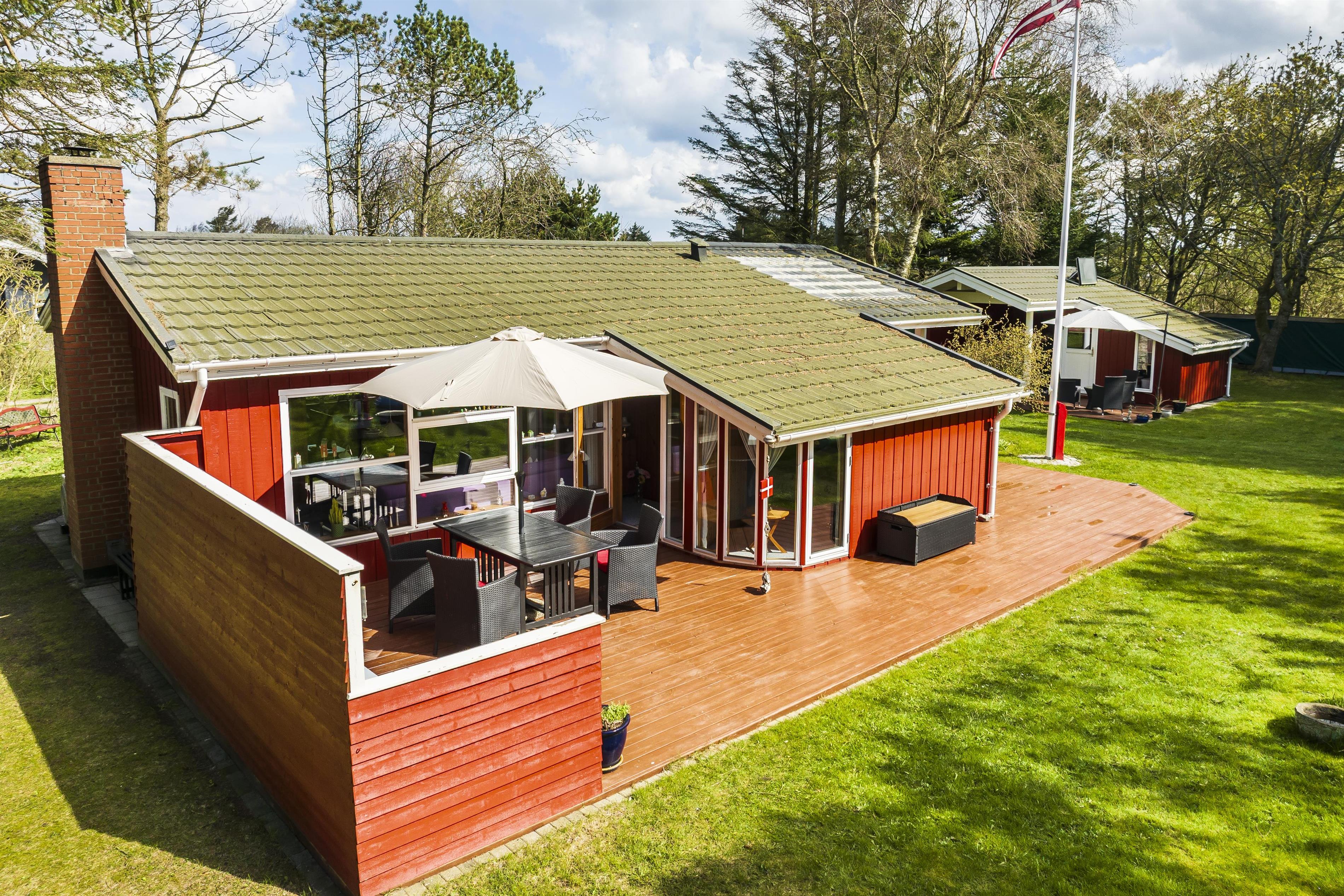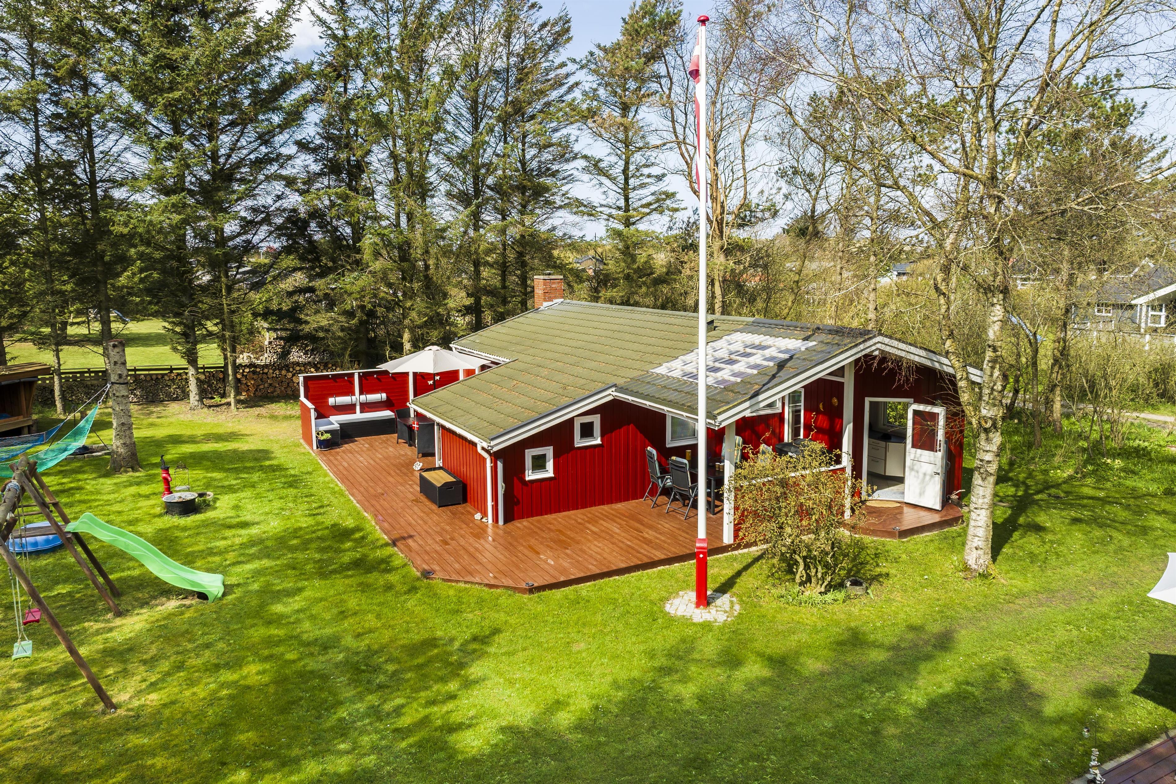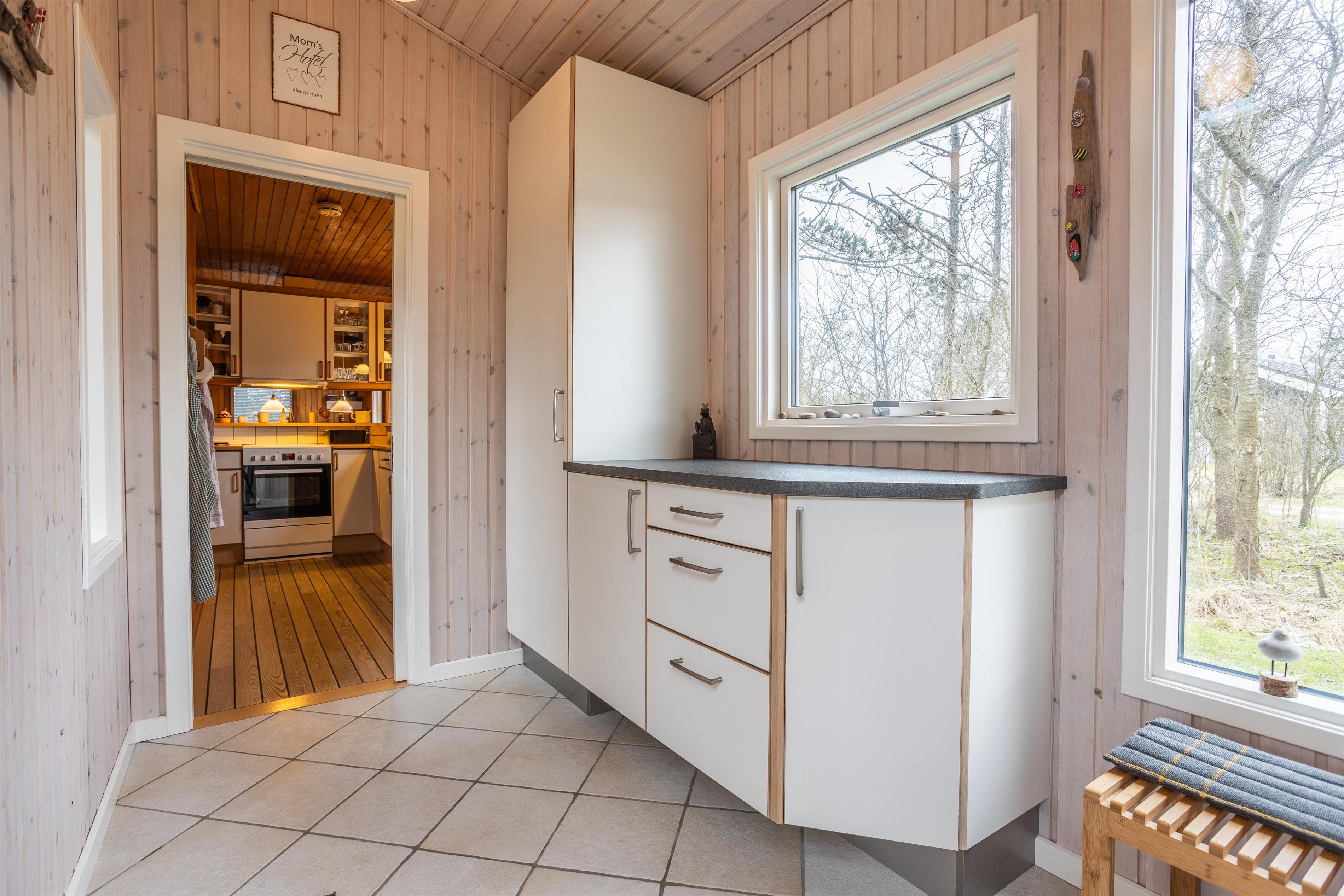 This well-maintained holiday home is functionally designed with a focus on comfort and coziness. Upon entering, you'll find a spacious utility room with plenty of space for shoes and coats before heading into the small, cozy kitchen. Here, you can gather around for cooking and enjoy the homely atmosphere while discussing the day's adventures. The living room is cozy, furnished with a large sofa that invites you to play games or unwind with family. On chilly winter evenings, the wood-burning stove creates a pleasant warmth and a special ambiance in the house. The house also includes three comfortable bedrooms and a lovely bathroom. With only 800 meters to the beach, this house is perfect for those who want a vacation close to nature. A short walk leads you to the beautiful sandy beach, where you can enjoy everything from relaxing days in the sun to refreshing walks along the water.