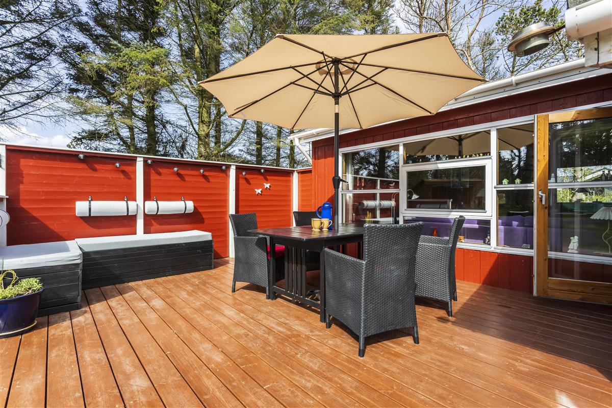 The holiday home is set on a lovely plot with several terraces, offering the opportunity to enjoy the sun from morning to evening. Here, you can prepare meals on the grill or relax with a good book while enjoying the fresh sea air. There's a covered terrace on one side of the house and an open but very private terrace on the other side.