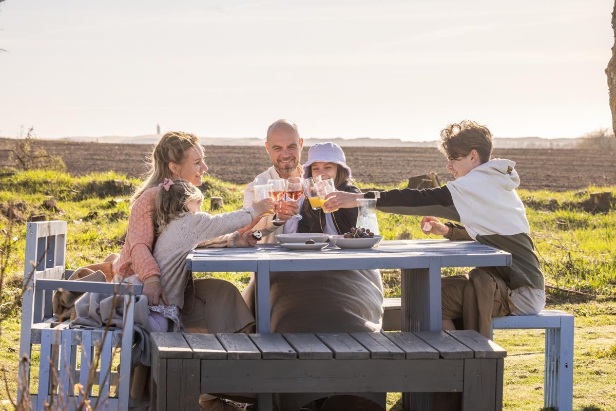 Outside at Hawbakken, there’s plenty of space with cozy corners featuring tables and benches, and a fabulous 180-degree panoramic view over the North Sea, Rubjerg Knude Lighthouse, and Lønstrup. As a guest, you have free access to numerous activities at "Sport & Spas," where you can enjoy a wide variety of indoor and outdoor activities. Read more about Sport & Spas at the end of this text.