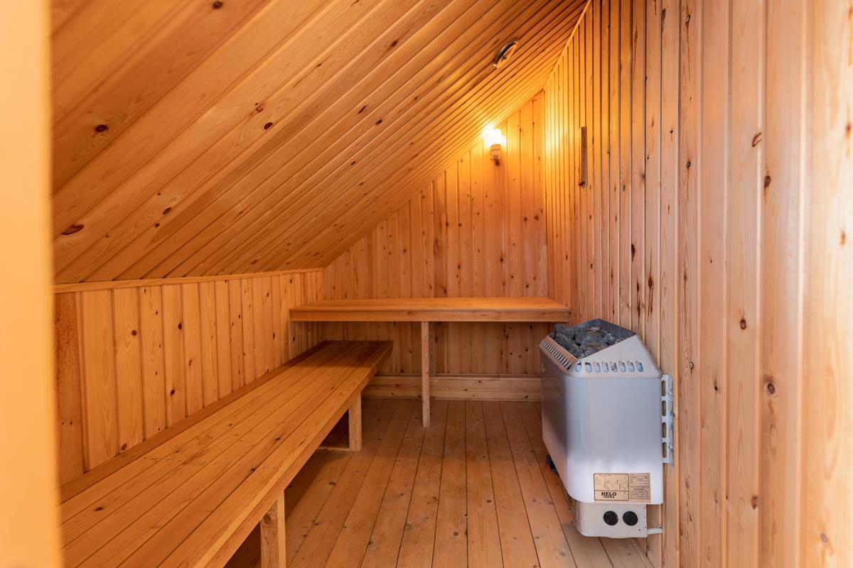 Høloftet accommodates 5 guests in 2 bedrooms with a double bed in each room and 1 single bed in the living room—all box spring beds with thick top mattresses to ensure a restful night’s sleep. Additionally, there is space for 1 extra bed in a pass-through room. For extra pampering, the apartment has a small sauna and a bathtub in the bathroom. No dogs allowed!