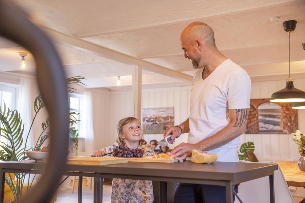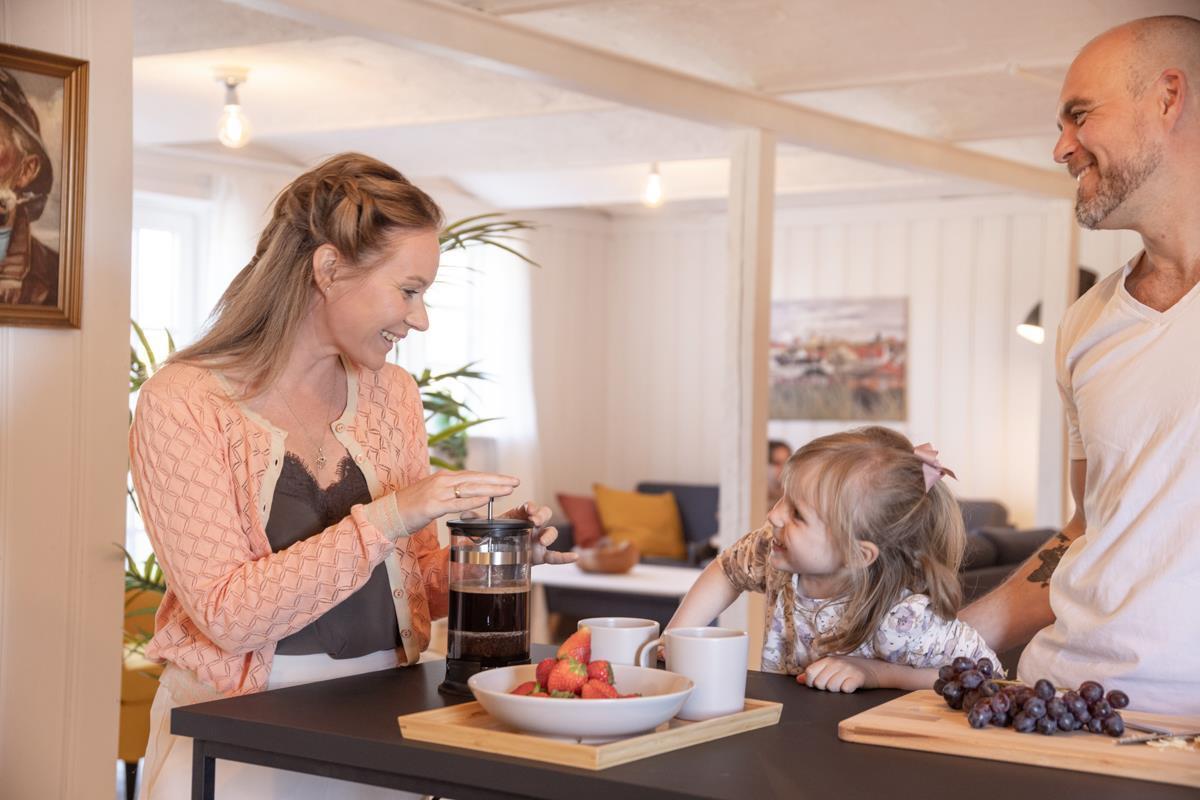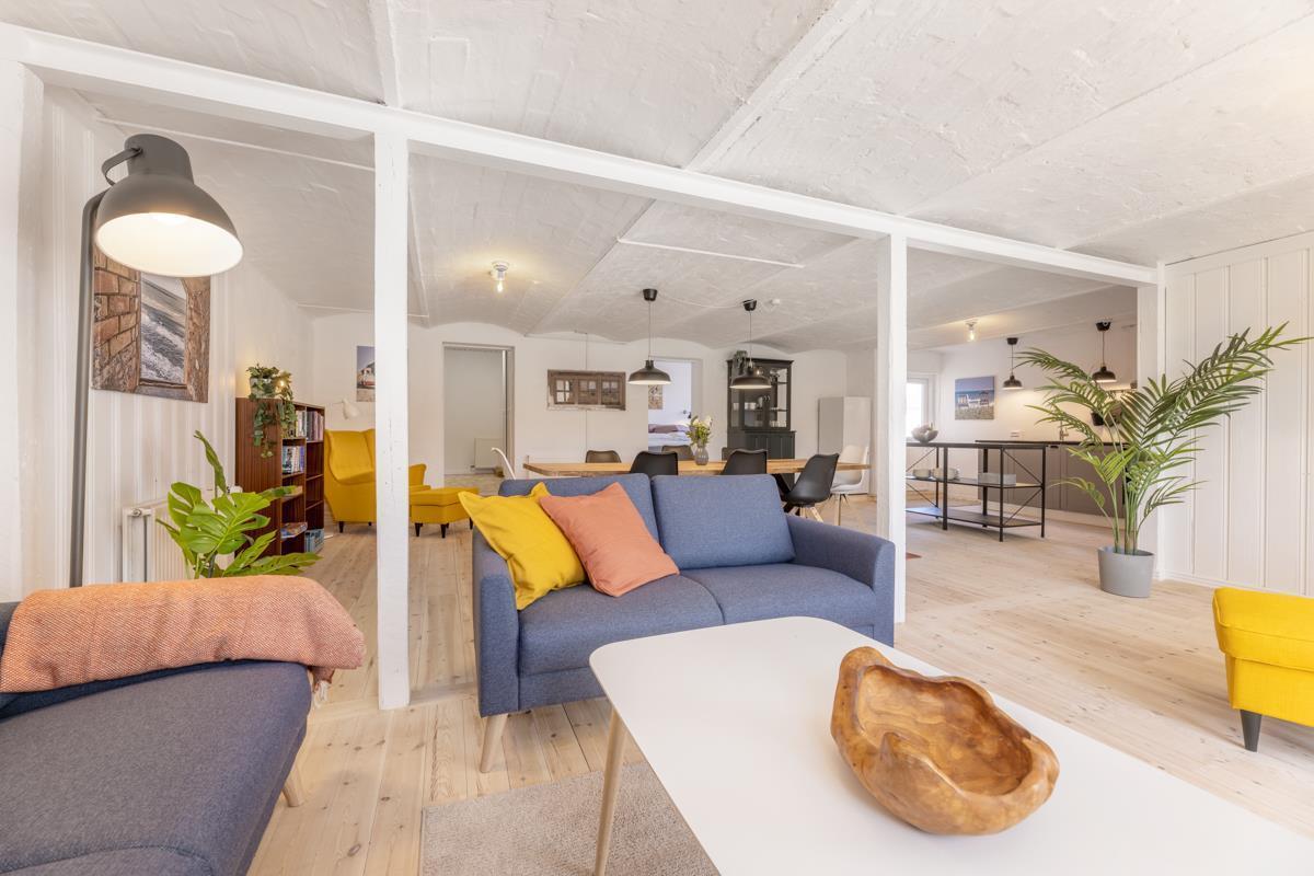 Step into Kostalden and experience an inviting atmosphere where the old, arched ceilings are preserved. In the spacious open kitchen and dining area, meals can be enjoyed at the long, handcrafted dining table, while the living room is designed to create cozy moments. Modern conveniences and unique craftsmanship add a touch of luxury to your vacation, and outside you can enjoy the wide sunset or grill on the large private terrace. The bedrooms offer an enchanting sea view – the perfect oasis on the west coast!