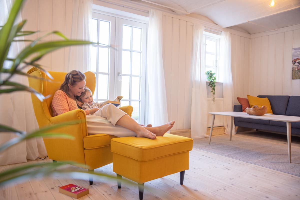Kostalden is designed to accommodate 6 guests in 2 bedrooms, each with high-quality beds and thick mattress toppers to ensure a good night's sleep. One bedroom with a double bed is located on the ground floor, while the other bedroom has a double bed and two single beds, located on the first floor, accessed by a steep staircase, which is not suitable for those with limited mobility.