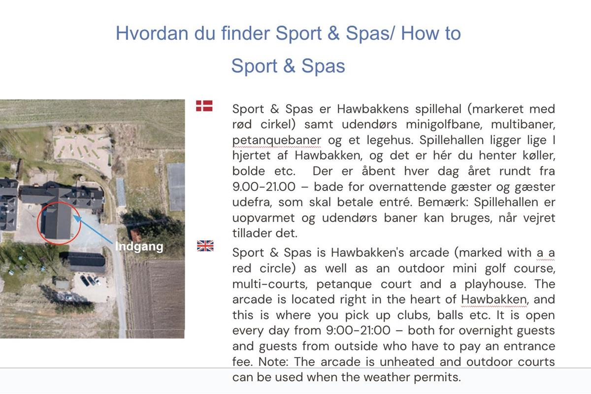 Sport & Spas is free of charge for guests staying at Hawbakken, while external visitors can buy access for 75 DKK per day. Guests are responsible for keeping the area tidy and taking care of the equipment out of consideration for others.
