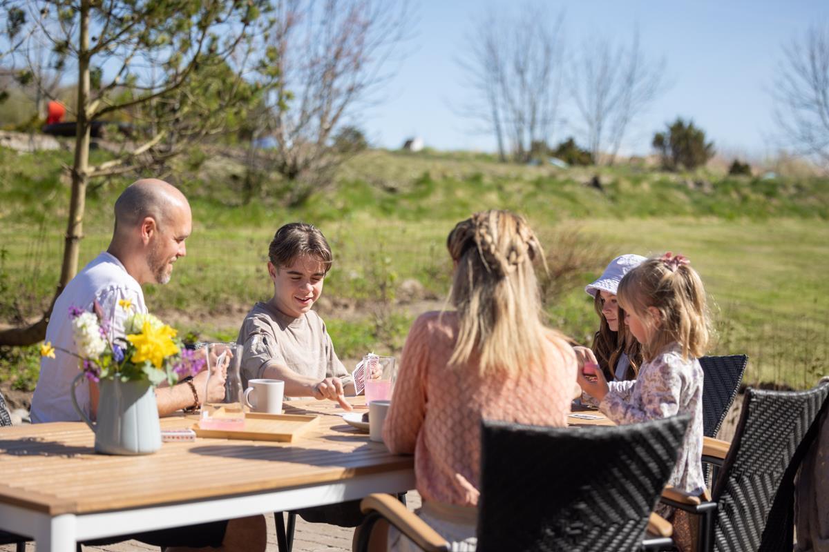 Outside at Hawbakken, there’s ample space and many cozy corners with tables and benches, as well as a fantastic 180-degree panoramic view over the North Sea, Rubjerg Knude Lighthouse, and Lønstrup. As a guest, you have free access to the many activities in the “Sport & Spas” area, where you can enjoy a variety of indoor and outdoor activities.