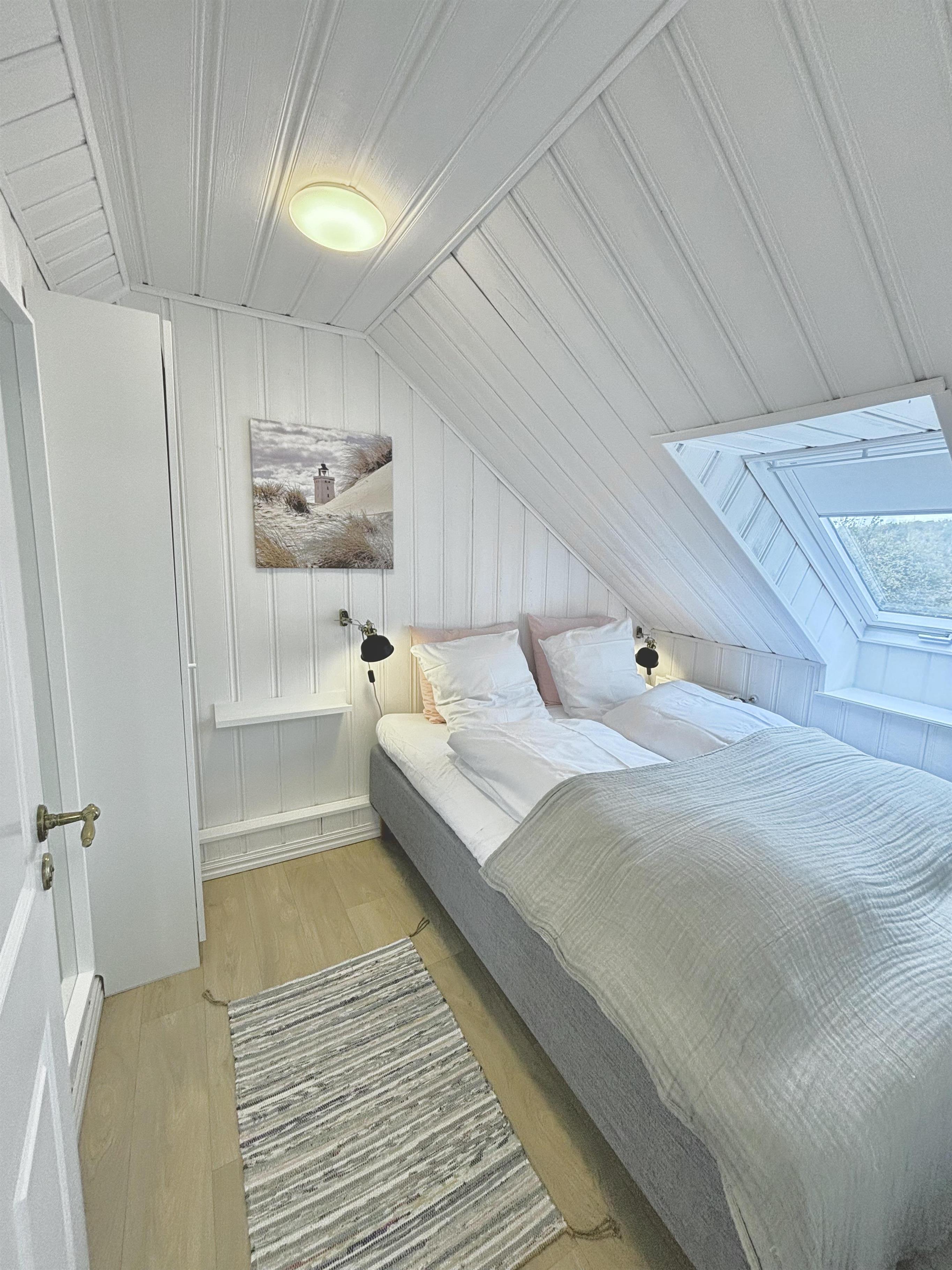 Høloftet accommodates up to 5 guests in 2 bedrooms with a double bed in each room and a single bed in the living room – all beds are box-spring mattresses with thick toppers to ensure a good night's sleep after a day of activities in the area. Additionally, there is the option of one extra bed in a walkthrough room. For those looking for added comfort, the apartment features a small sauna and a bathtub in the bathroom.