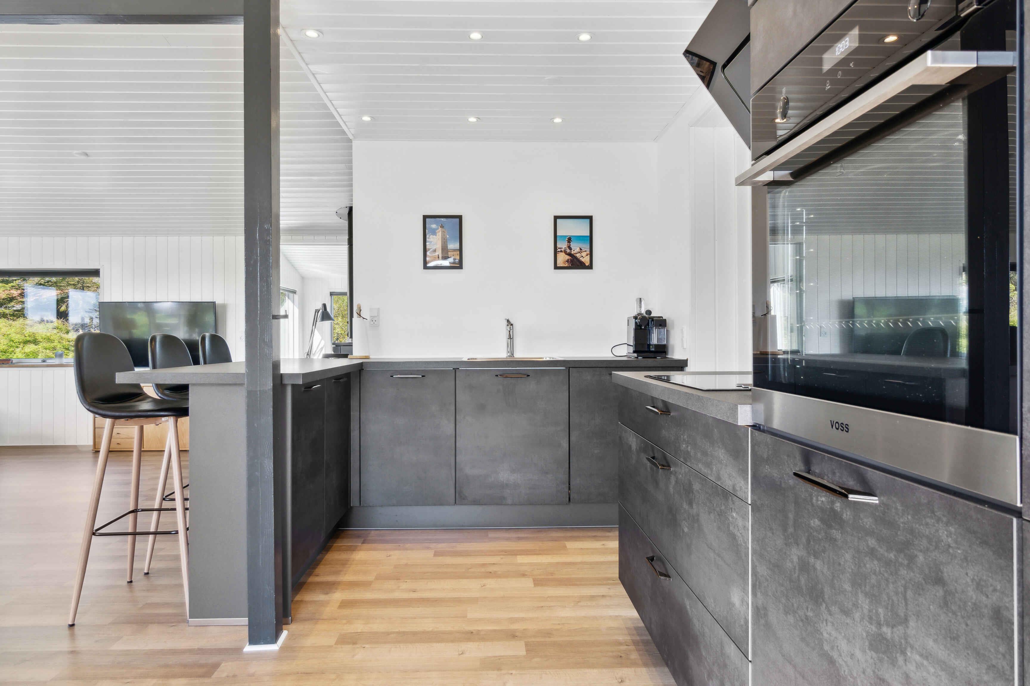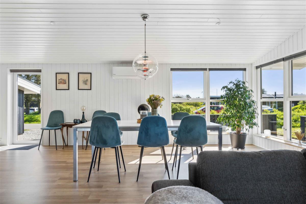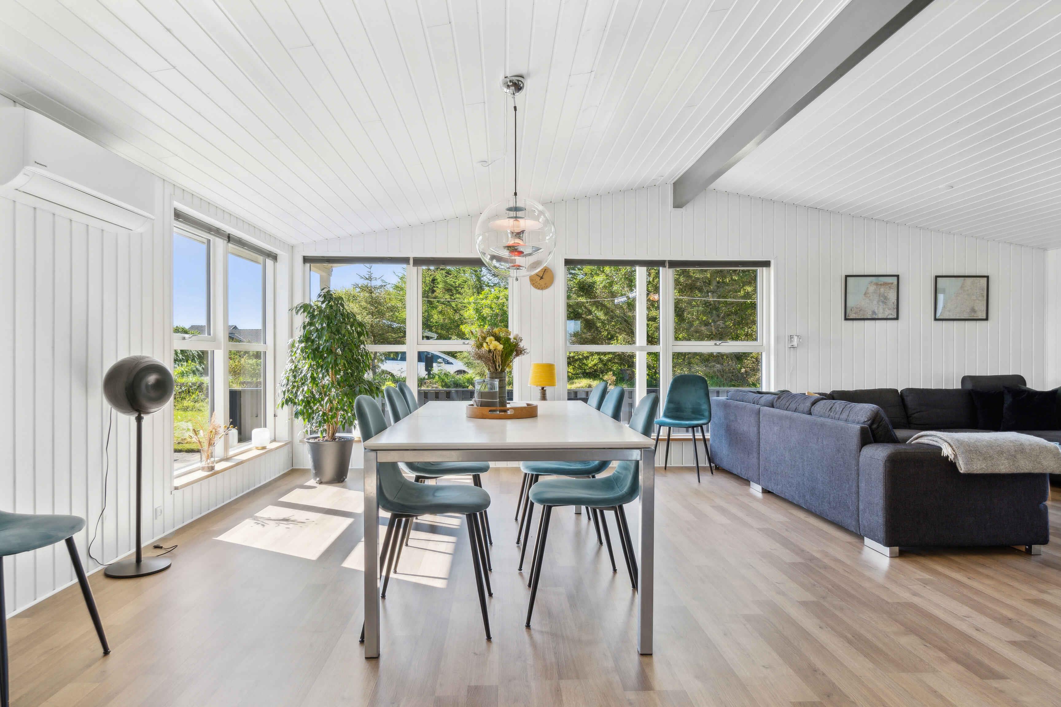 Het huis is grondig gerenoveerd en biedt uiterst comfortabele omstandigheden voor de vakantie. Hier is het licht en prachtig, en het moderne comfort gaat prachtig samen met de klassieke charme van het zomerhuis. De inrichting biedt optimale omstandigheden voor gezellig samenzijn met familie en vrienden. Het hart van het huis is de grote woonkamer, met een hoog plafond en veel lichtinval door grote raampartijen. Hier zijn zowel een bankstel, eettafel als een eetbar die de woonkamer scheidt van de mooie keuken. Daarnaast is er nog een tweede woonkamer met bank, tv en spelconsole. Het huis heeft twee slaapkamers, waarvan één met tweepersoonsbed en de andere met een eenpersoonsbed en een tweepersoonsbed. Bovendien is er een loft met 2 matrassen en goede gebruiksmogelijkheden en uitzicht op zee. Ten slotte is er een grote, mooie bijkeuken met goede wasfaciliteiten en een nette badkamer met douche. Je krijgt uitstekende voorwaarden om te genieten van het leven in de buitenlucht op de prachtige terrassen die het huis aan drie zijden volgen. Hier kun je 's ochtends koffie drinken in de eerste zonnestralen van de dag, lunchen in de middagzon en het avondeten serveren richting het westen wanneer de dag ten einde loopt. En de tijd daartussen? Die kun je prima doorbrengen met een goed boek in een ligstoel - dit huis nodigt uit om de stekker eruit te trekken en gewoon te luieren in het zomerse landschap. In het onderste deel van de tuin is een wilde tuin aangelegd met struiken en bloemen. Hier kun je door de tuin wandelen en het pad volgen door de heg. Met slechts een paar honderd meter naar het water krijg je ten volle de frisse zeelucht en het fascinerende Noordzeekust. Je kunt snel naar het mooie zandstrand lopen en een duik nemen, en je kunt ook gemakkelijk naar het gezellige stadscentrum van Lønstrup, dat het hele jaar door bruist van leven. Hier zijn gezellige galerijen, cafés en winkelmogelijkheden, en er is een sfeervolle omgeving rondom het oude reddingshuis en de pittoreske vissersboten. Ook is het kort bij Skallerup Seaside Resort, dat een restaurant en activiteiten biedt voor het hele gezin. Let op: Niet te huur voor commercieel gebruik.