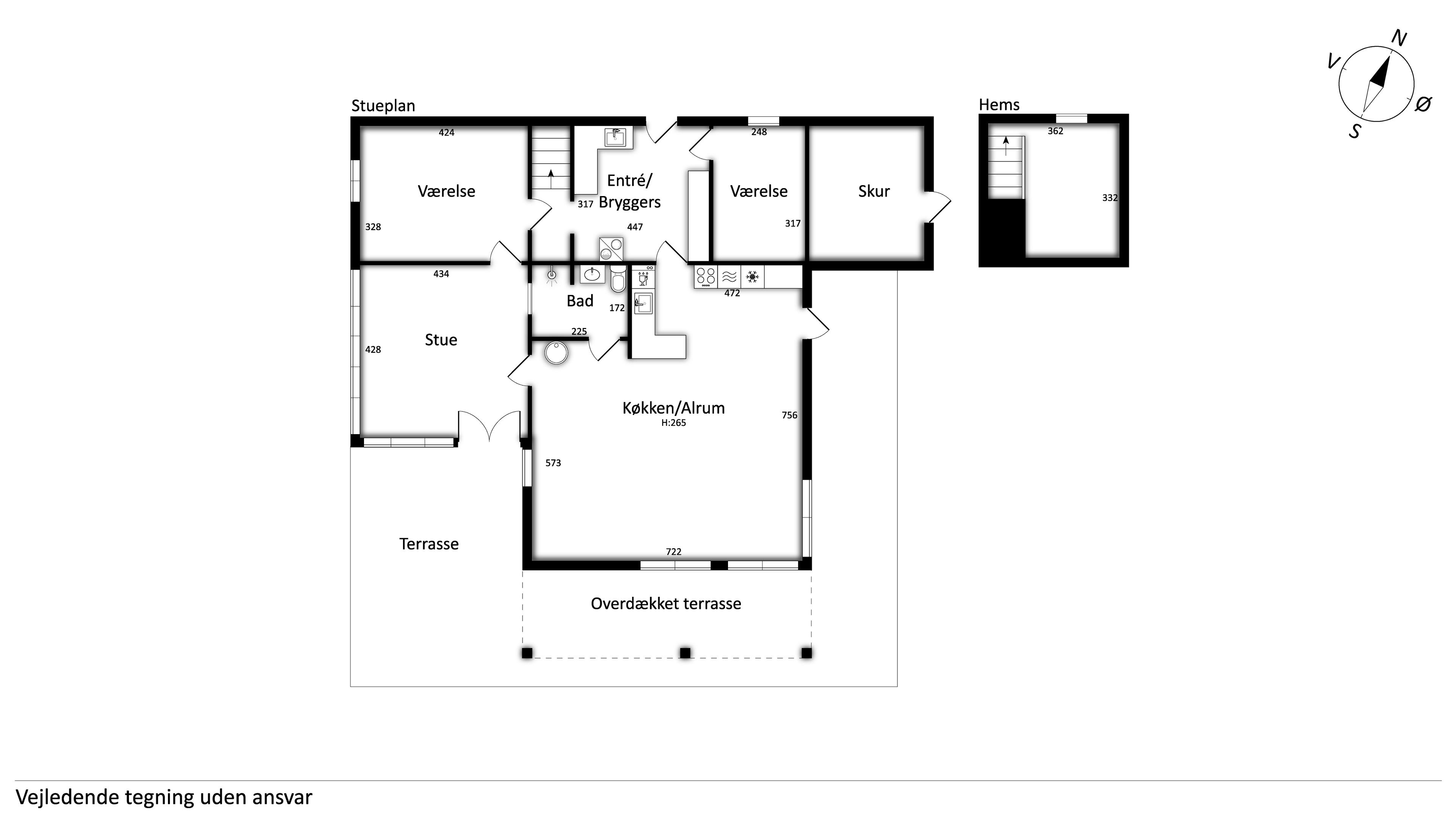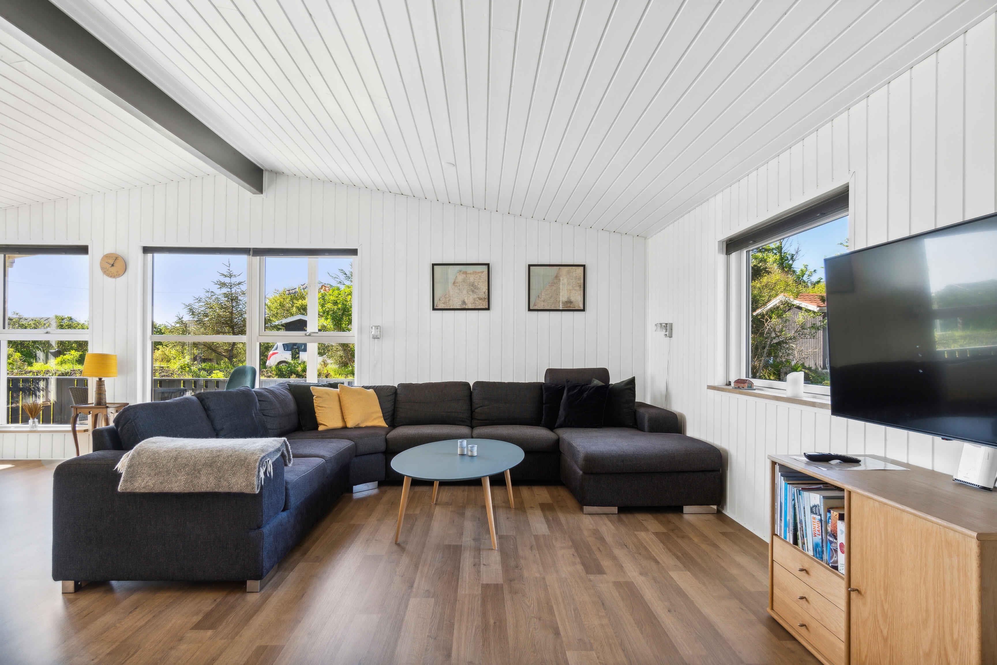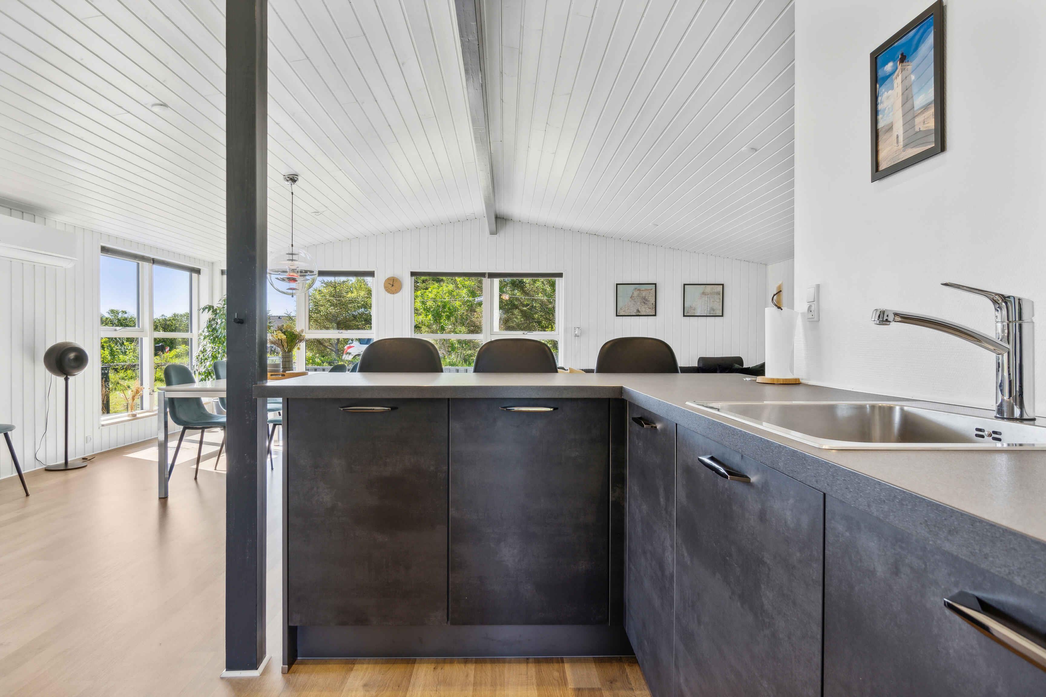 Het huis is grondig gerenoveerd en biedt uiterst comfortabele omstandigheden voor de vakantie. Hier is het licht en prachtig, en het moderne comfort gaat prachtig samen met de klassieke charme van het zomerhuis. De inrichting biedt optimale omstandigheden voor gezellig samenzijn met familie en vrienden. Het hart van het huis is de grote woonkamer, met een hoog plafond en veel lichtinval door grote raampartijen. Hier zijn zowel een bankstel, eettafel als een eetbar die de woonkamer scheidt van de mooie keuken. Daarnaast is er nog een tweede woonkamer met bank, tv en spelconsole. Het huis heeft twee slaapkamers, waarvan één met tweepersoonsbed en de andere met een eenpersoonsbed en een tweepersoonsbed. Bovendien is er een loft met 2 matrassen en goede gebruiksmogelijkheden en uitzicht op zee. Ten slotte is er een grote, mooie bijkeuken met goede wasfaciliteiten en een nette badkamer met douche. Je krijgt uitstekende voorwaarden om te genieten van het leven in de buitenlucht op de prachtige terrassen die het huis aan drie zijden volgen. Hier kun je 's ochtends koffie drinken in de eerste zonnestralen van de dag, lunchen in de middagzon en het avondeten serveren richting het westen wanneer de dag ten einde loopt. En de tijd daartussen? Die kun je prima doorbrengen met een goed boek in een ligstoel - dit huis nodigt uit om de stekker eruit te trekken en gewoon te luieren in het zomerse landschap. In het onderste deel van de tuin is een wilde tuin aangelegd met struiken en bloemen. Hier kun je door de tuin wandelen en het pad volgen door de heg. Met slechts een paar honderd meter naar het water krijg je ten volle de frisse zeelucht en het fascinerende Noordzeekust. Je kunt snel naar het mooie zandstrand lopen en een duik nemen, en je kunt ook gemakkelijk naar het gezellige stadscentrum van Lønstrup, dat het hele jaar door bruist van leven. Hier zijn gezellige galerijen, cafés en winkelmogelijkheden, en er is een sfeervolle omgeving rondom het oude reddingshuis en de pittoreske vissersboten. Ook is het kort bij Skallerup Seaside Resort, dat een restaurant en activiteiten biedt voor het hele gezin. Let op: Niet te huur voor commercieel gebruik.