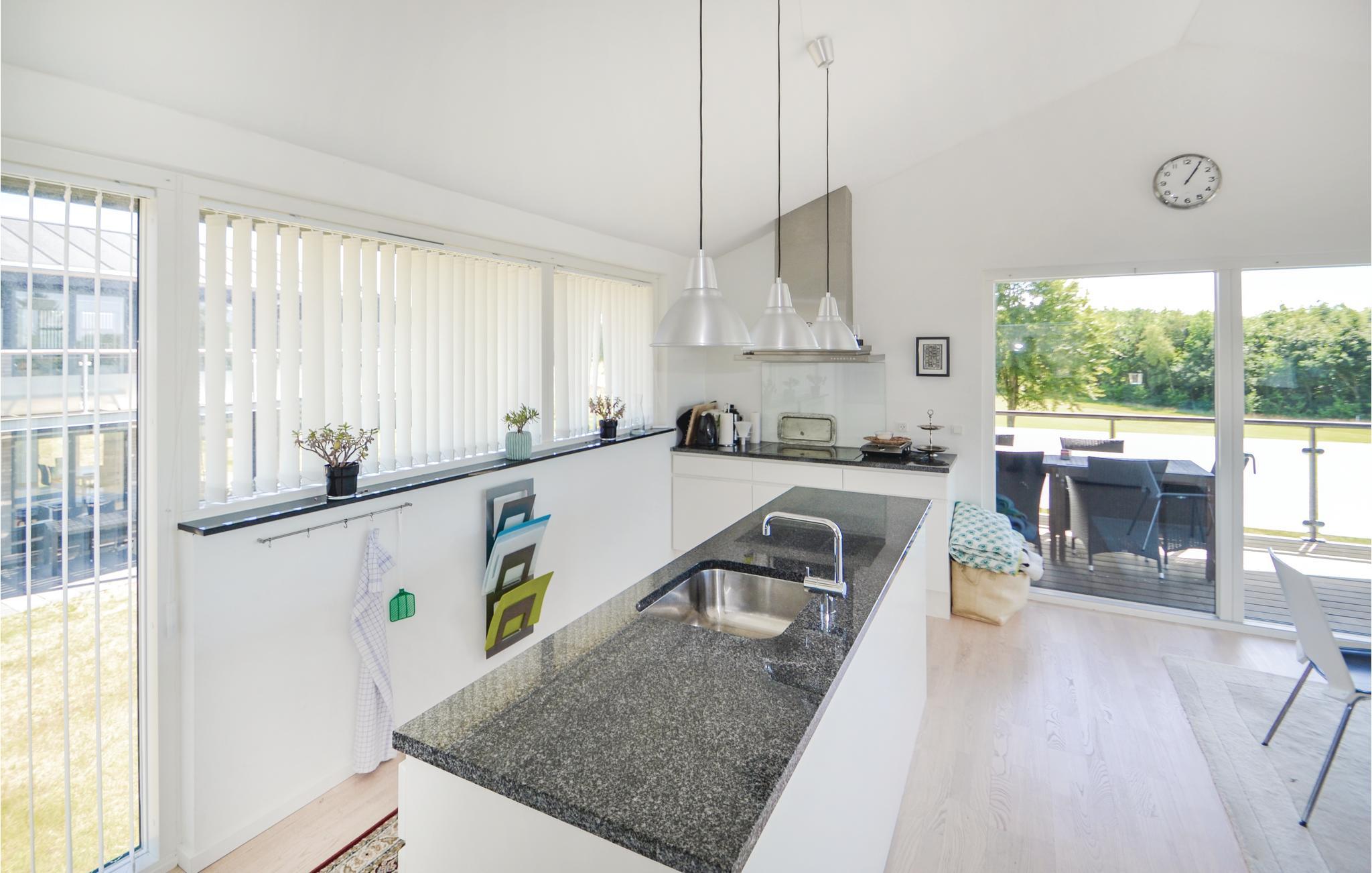Gelegen in het Lübker Golf Resort midden in Djursland, is dit bijzonder mooie vakantiehuis verdeeld over twee verdiepingen. Op de begane grond bevinden zich twee slaapkamers en de mooie badkamer. Op de eerste verdieping vindt u de sfeervolle woonkeuken met grote ramen en uitgang naar de terrassen met een prachtig uitzicht. Het huis is ongelooflijk goed onderhouden en vanaf het balkon kunt u naar de golfers kijken als u zelf niet aan het spelen bent.