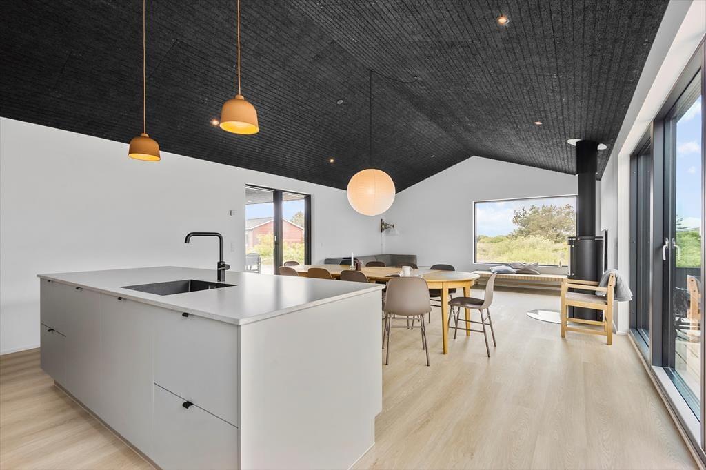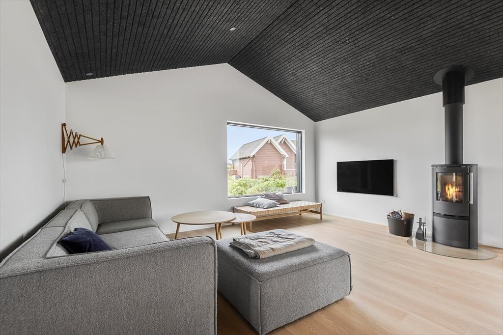 Das 135 m² große Ferienhaus strahlt eine schöne Atmosphäre aus, mit schönen, milden Farbtönen, großen Fenstern und Akustikdecken – und dann liegt es ganz bei dir und deinen Lieben, ob ihr euch in der ruhigen Umgebung vollkommen entspannt oder die Räume mit Lachen und Spielen ausfüllt. Die gut ausgestattete Küche ist in den Wohnbereich integriert, der sowohl über einen Brennofen als auch über einen Flachbildfernseher in der Nähe der Sofaecke verfügt. Es gibt zwei Badezimmer und wenn es Zeit zum Schlafen ist, stehen dir vier Schlafzimmer zur Auswahl. Darüber hinaus ist eines der Zimmer mit einer zusätzlichen Bettnische ausgestattet, sodass insgesamt Schlafplätze für 10 Personen vorhanden sind.