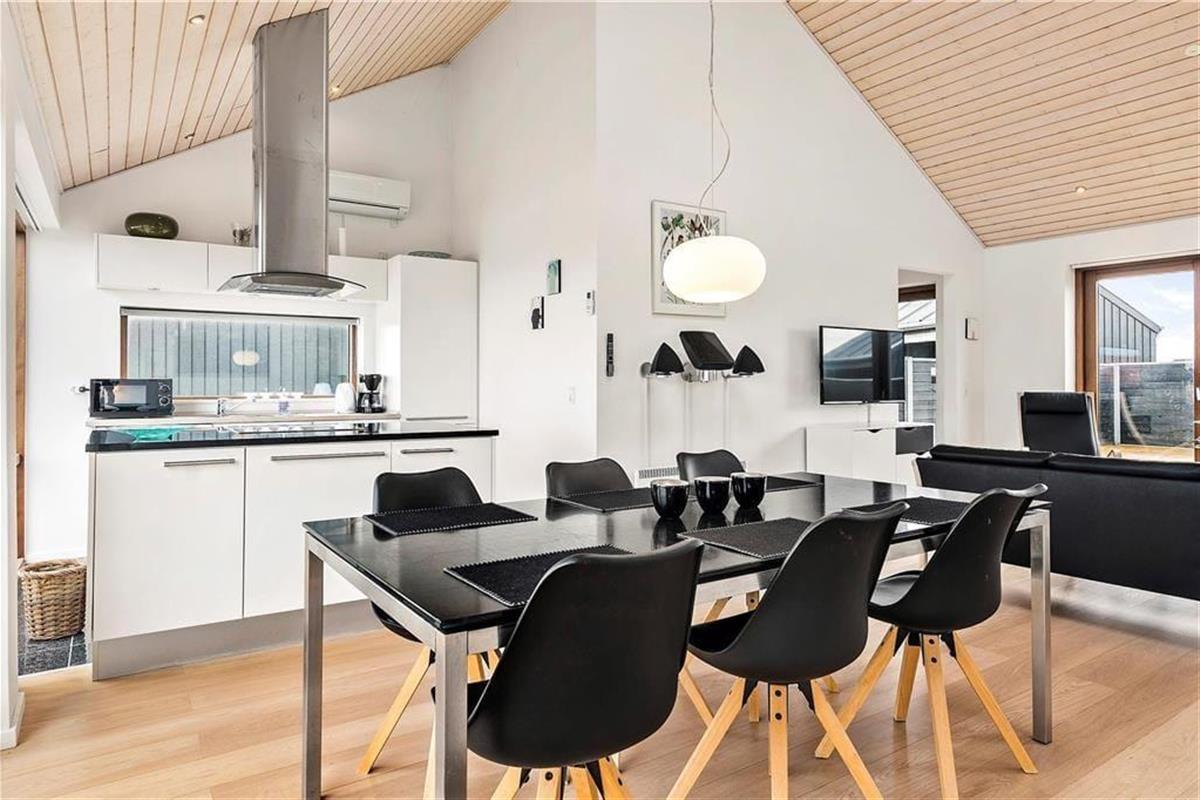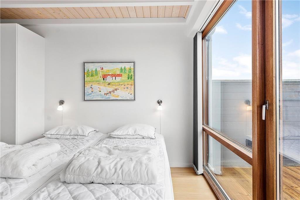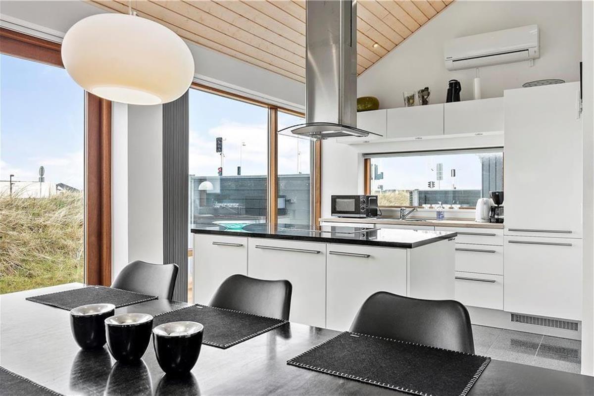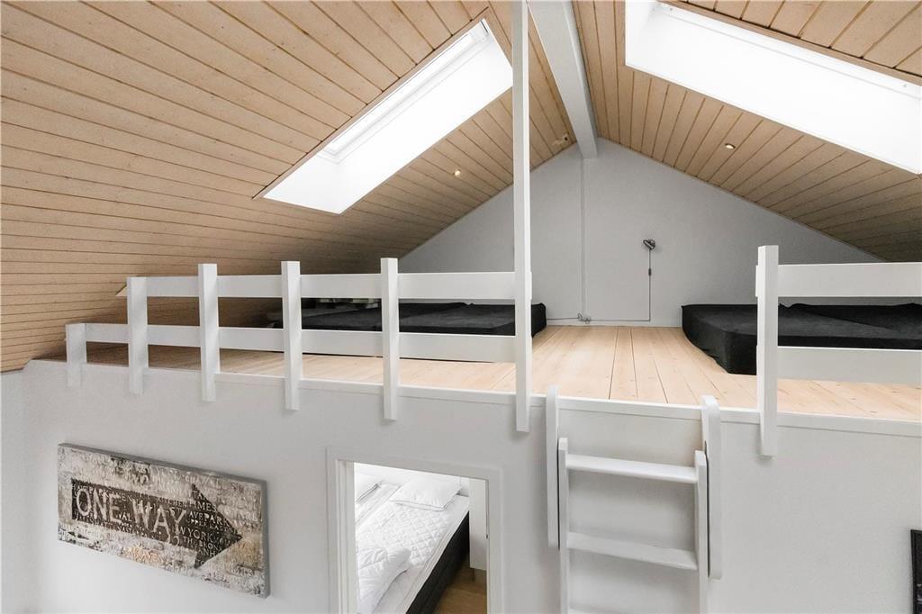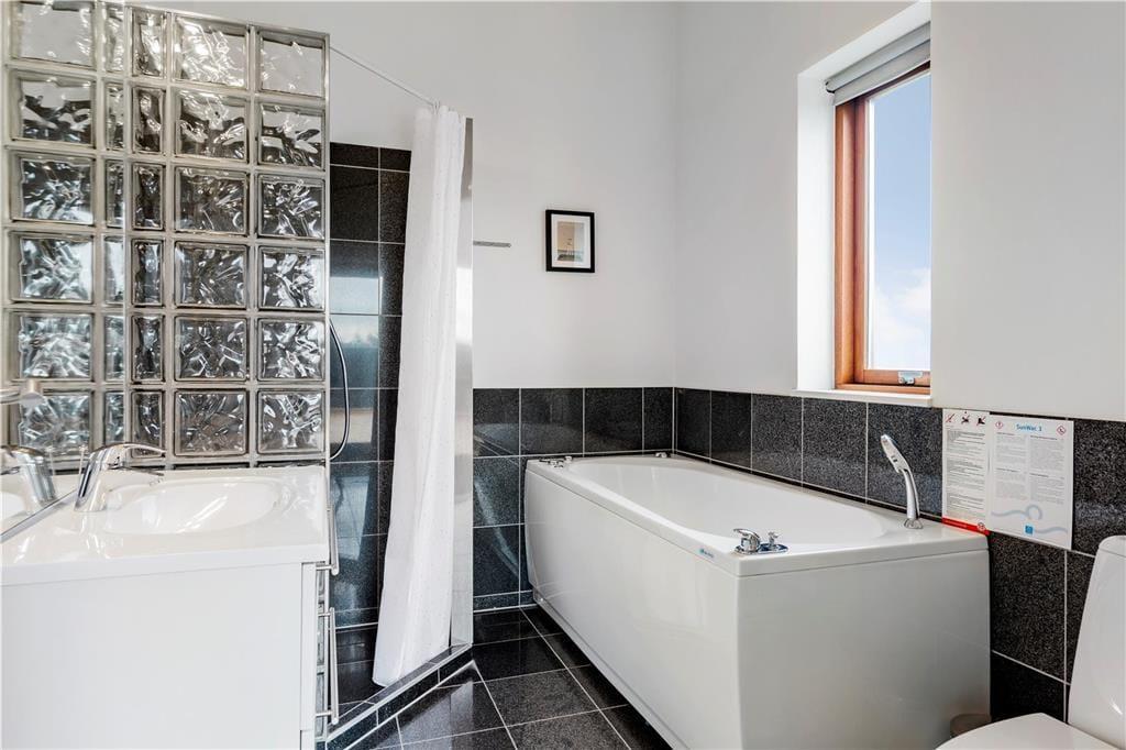 Tolle Architektur, komfortables Interieur und schönster Lichteinfall spielen zusammen und machen deinen Urlaub hier in diesem Ferienhaus aus dem Jahr 2008 zu einem reinen Vergnügen. Dass es sich hier um ein Qualitätshaus handelt, kannst du in jedem Raum sehen – auch im Badezimmer, das mit Fußbodenheizung und Whirlpool ausgestattet ist. Im Wohnbereich lassen die großen Fensterpartien jede Menge Sonnenlicht herein und die hohen Decken bis unters Dach tragen das ihre zur leichten und luftigen Atmosphäre bei. Hier erwartet dich auch ein modernes Smart-TV. Die stilvolle und gut sortierte Küche, die mit dem Wohnbereich verbunden ist, sorgt dafür, dass die Essenszubereitung schnell zu einem täglichen Gemeinschaftsevent wird. Zusätzlich verfügt die Küche über eine Wärmepumpe mit Kühlfunktion. Und wenn Kinder mit dabei sind, werden sie den Zwischenboden des Wohnbereichs schnell zu ihrem Lieblingsort erklären. Dieser ergänzt zudem die zwei Schlafzimmer des Ferienhauses. Hinzu kommt noch ein Doppelbett im Nebengebäude.