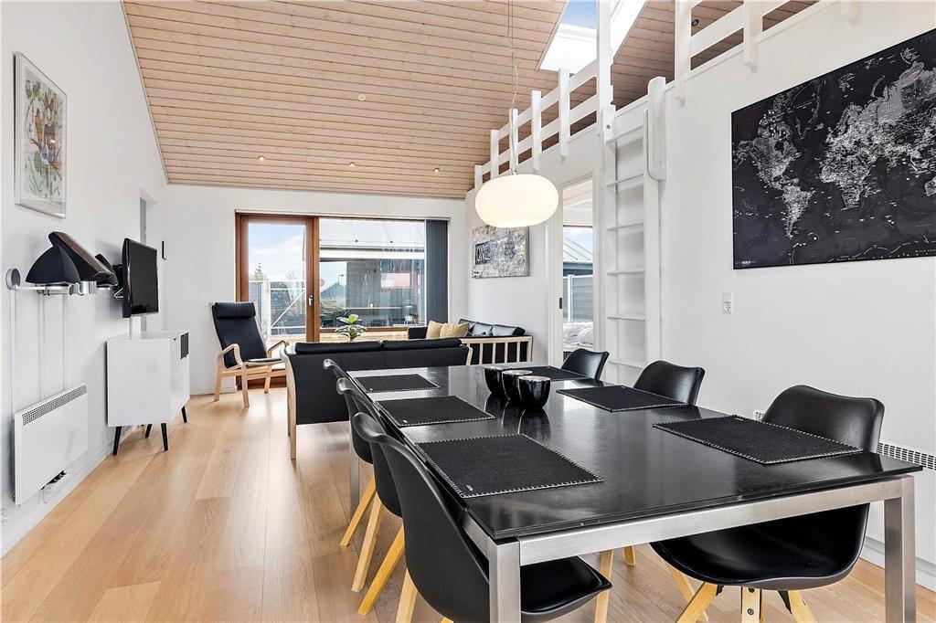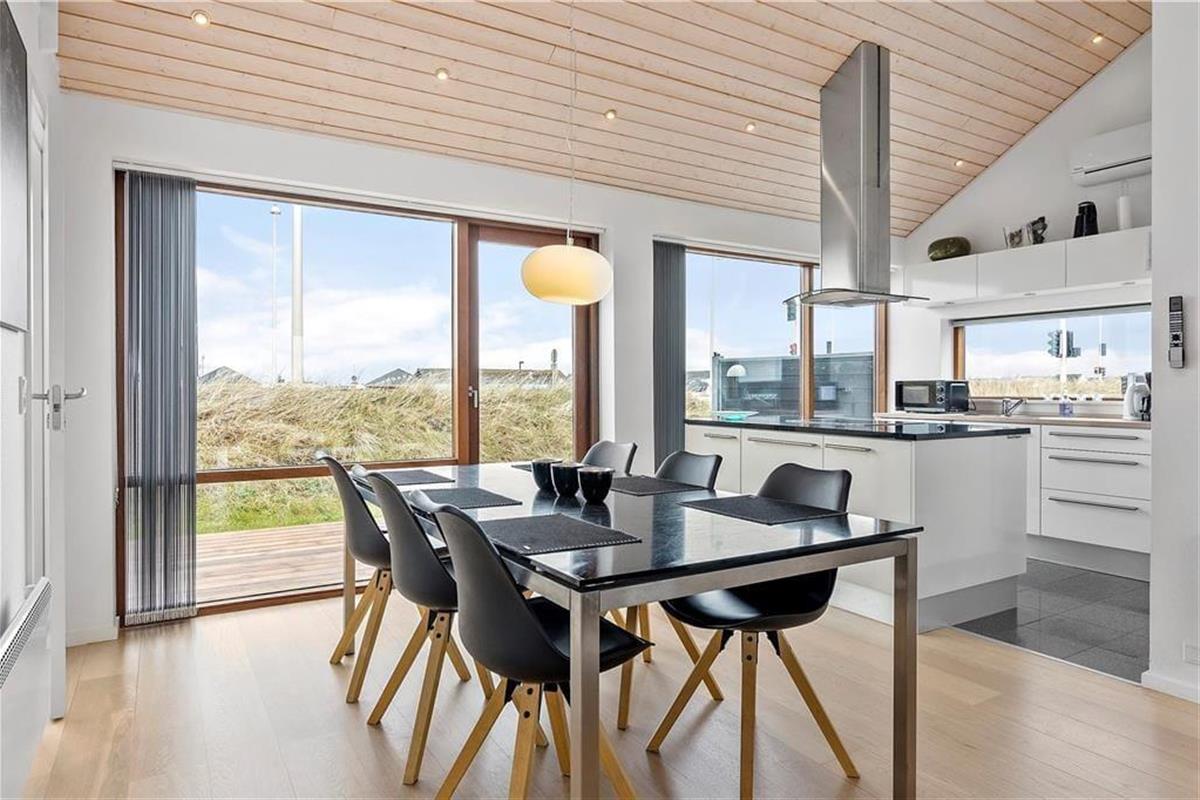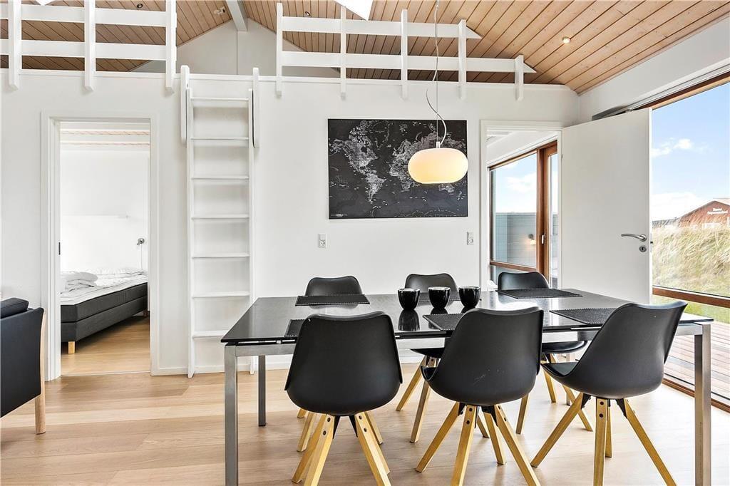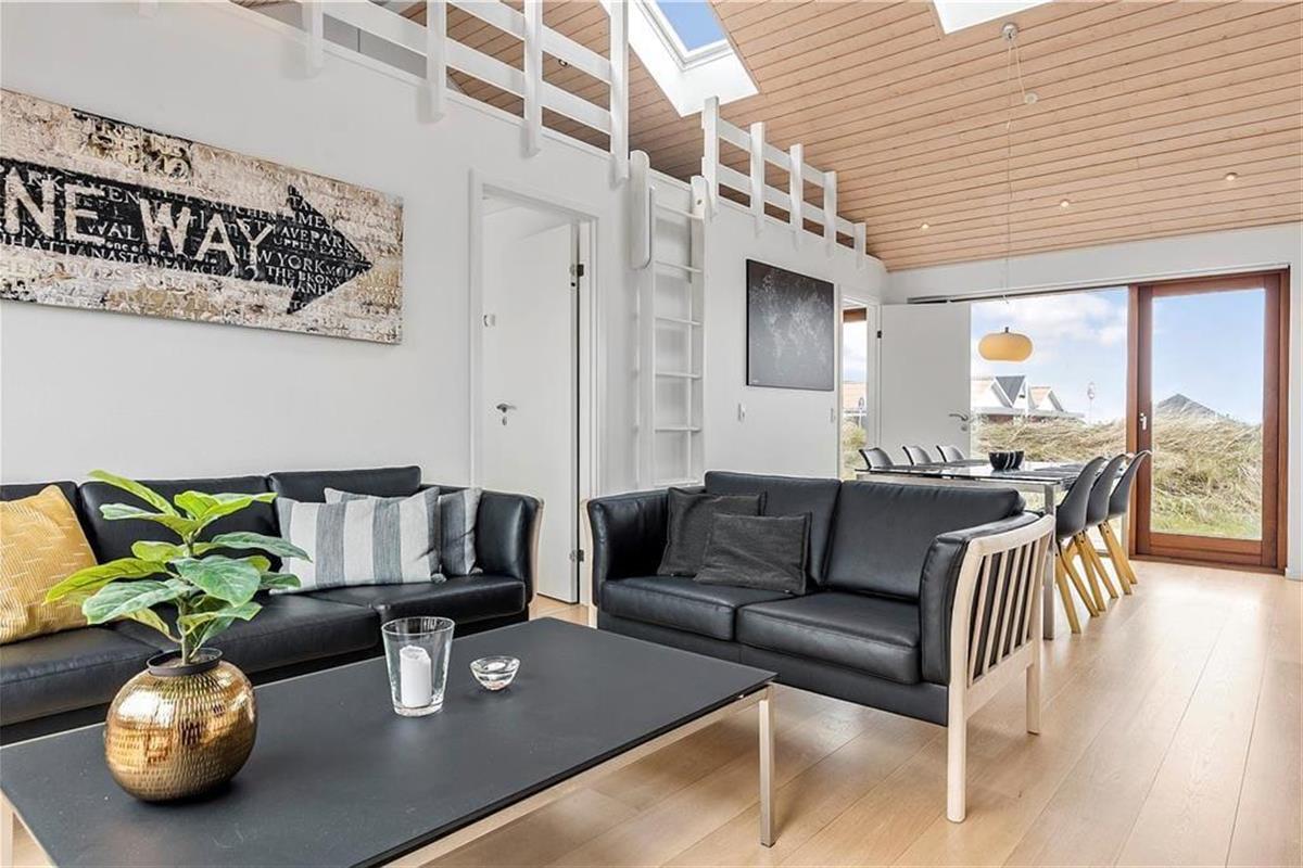 Tolle Architektur, komfortables Interieur und schönster Lichteinfall spielen zusammen und machen deinen Urlaub hier in diesem Ferienhaus aus dem Jahr 2008 zu einem reinen Vergnügen. Dass es sich hier um ein Qualitätshaus handelt, kannst du in jedem Raum sehen – auch im Badezimmer, das mit Fußbodenheizung und Whirlpool ausgestattet ist. Im Wohnbereich lassen die großen Fensterpartien jede Menge Sonnenlicht herein und die hohen Decken bis unters Dach tragen das ihre zur leichten und luftigen Atmosphäre bei. Hier erwartet dich auch ein modernes Smart-TV. Die stilvolle und gut sortierte Küche, die mit dem Wohnbereich verbunden ist, sorgt dafür, dass die Essenszubereitung schnell zu einem täglichen Gemeinschaftsevent wird. Zusätzlich verfügt die Küche über eine Wärmepumpe mit Kühlfunktion. Und wenn Kinder mit dabei sind, werden sie den Zwischenboden des Wohnbereichs schnell zu ihrem Lieblingsort erklären. Dieser ergänzt zudem die zwei Schlafzimmer des Ferienhauses. Hinzu kommt noch ein Doppelbett im Nebengebäude.