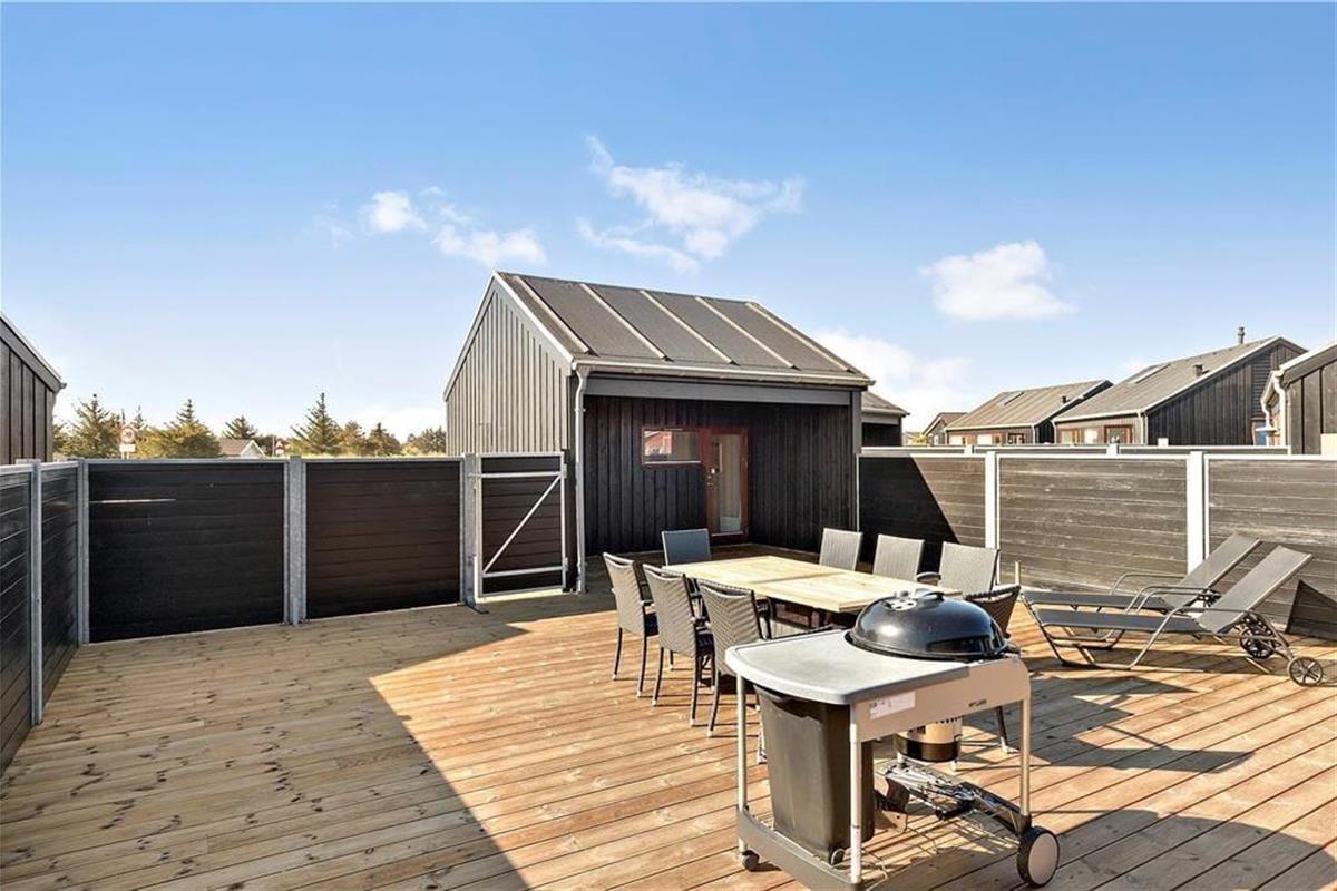 Auf beiden Seiten des Ferienhauses sind Terrassen angelegt, von denen die nach Süden gewandte mit Sicherheit dein Lieblingsort werden wird – nicht nur aufgrund ihrer Ausrichtung, sondern weil sie komplett abgeschirmt zwischen Haus, Nebengebäude und den Holzzäunen einen herrlichen Sonnenhof bildet. Hier kannst du deinen Urlaub ganz ungestört genießen, während du grillst oder es dir in den Gartenmöbeln bequem machst.