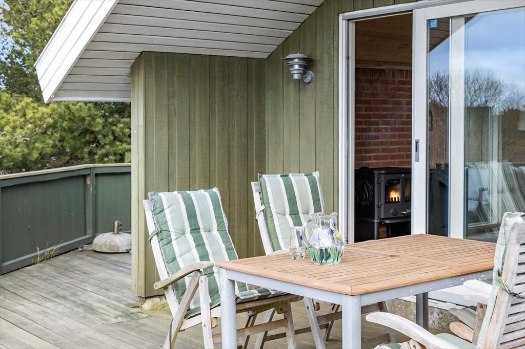 Der Terrassenbereich des Ferienhauses ist in mehrere schöne Bereiche unterteilt, sodass es kein Problem ist, das richtige Sonnenplätzchen oder einen schattigen Aufenthaltsort zu finden, um das Leben im Freien zu genießen. Der nach Osten gewandte Teil der Terrasse bietet die schönste Aussicht auf die beeindruckende Landschaft, und von hier aus führt eine Treppe hinunter zu einer Grünfläche, wo du Gras unter den Füßen spüren und die Badetücher zum Trocknen aufhängen kannst – und mit den Kindern oder Hunden spielen kannst. Das Haus ist mit einem Grill ausgestattet, sodass du abends die Luft mit dem Duft von frisch zubereiteten Maiskolben und anderen Leckereien füllen kannst.