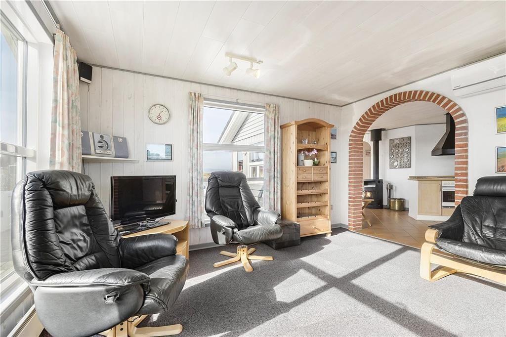 Selbst im Inneren des Hauses kannst du die wunderbare Aussicht auf die ansprechende Umgebung und den hohen Himmel in vollen Zügen genießen. Das Herzstück des Hauses bildet der harmonisch und offen kombinierte Küchen-, Wohn- und Essbereich. Freu dich auf weiche Polstermöbel, einen romantisch knisternden Kamin und einen hellen Esstisch, um den ihr euch versammeln und köstliche Mahlzeiten und lange Gespräche genießen werdet.