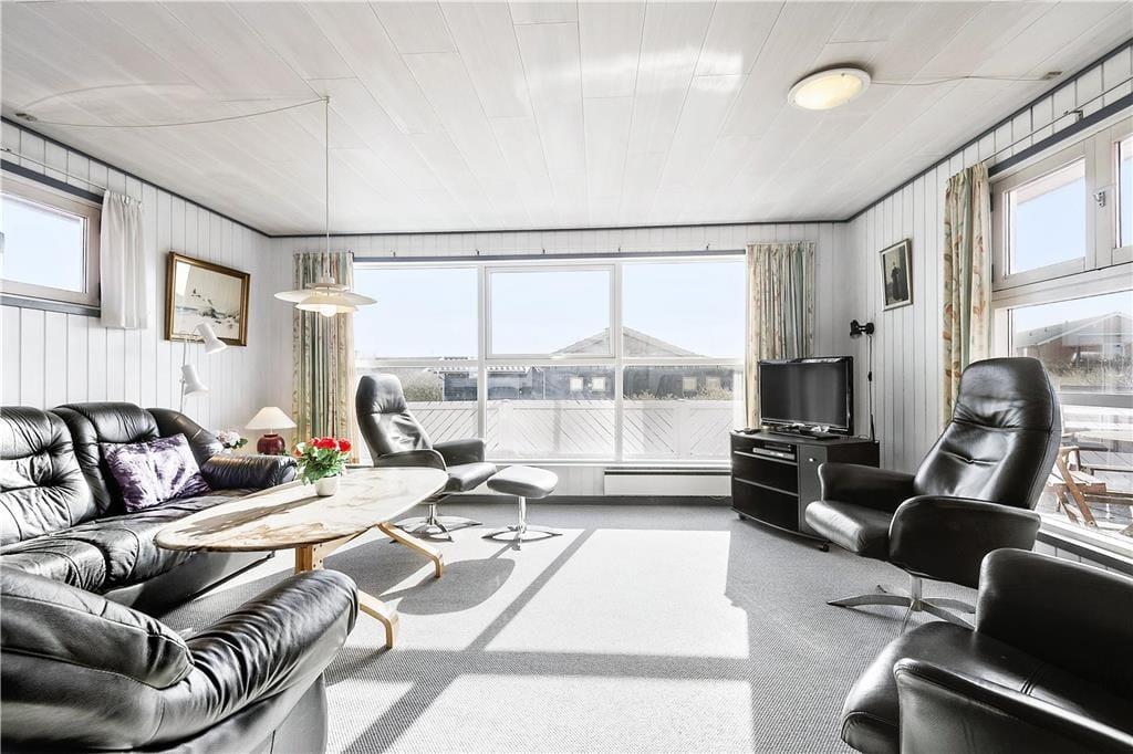 Bereits jetzt kannst du dich auf deinen Urlaub in diesem gemütlichen Ferienhaus in der Nähe des Lakolk Strands freuen. Das Haus empfängt dich mit einer schönen Ausstattung, die unter anderem einen Whirlpool, eine Sauna, eine gute Sonnenterrasse sowie eine Tischtennisplatte im Aktivitätsraum umfasst.
