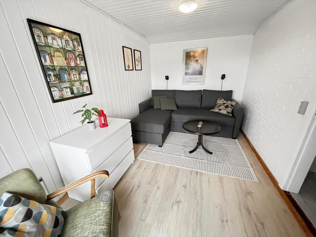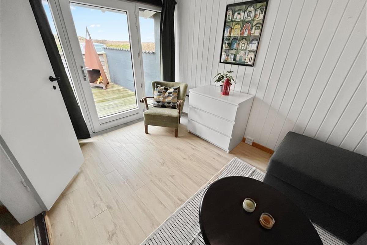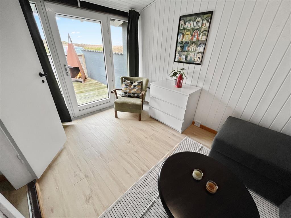 Die tolle Lage mitten in der Natur macht dieses Haus zum perfekten Ort, um abzuschalten und frische Luft zu tanken. Es ist gleichzeitig der ideale Rahmen für gemeinsame Zeit mit Familie und Freunden. Der Wohnbereich mit seiner durchdachten Raumaufteilung schafft dafür eine gemütliche Atmosphäre. Das Haus bietet Platz für 4 Feriengäste: Es verfügt über 2 Schlafzimmer und einen weiteren Raum mit einem Schlafsofa. Dazu kommen ein modernes Badezimmer, eine Sauna und ein einladendes Wohnzimmer mit integrierter Küche aus dem Jahr 2023. Der Kaminofen und die Wärmepumpe sorgen dafür, dass du dich hier das ganze Jahr über wohlfühlen kannst. Nach langen Spaziergängen am Strand wartet die Sauna darauf, dir Entspannung zu schenken.